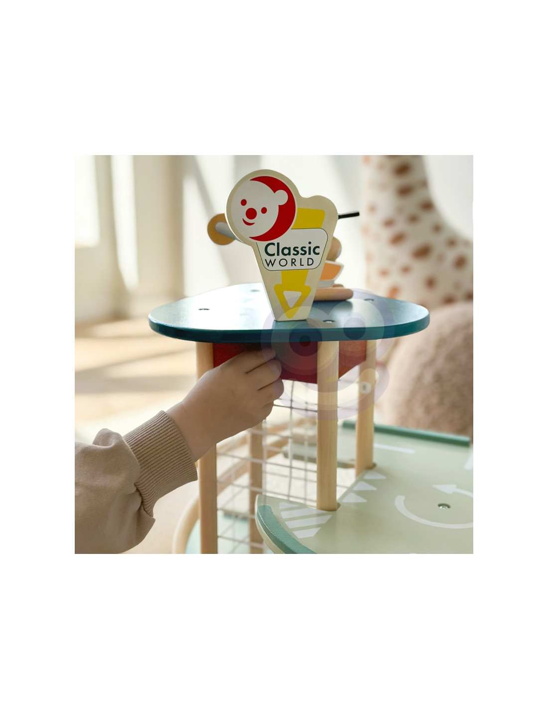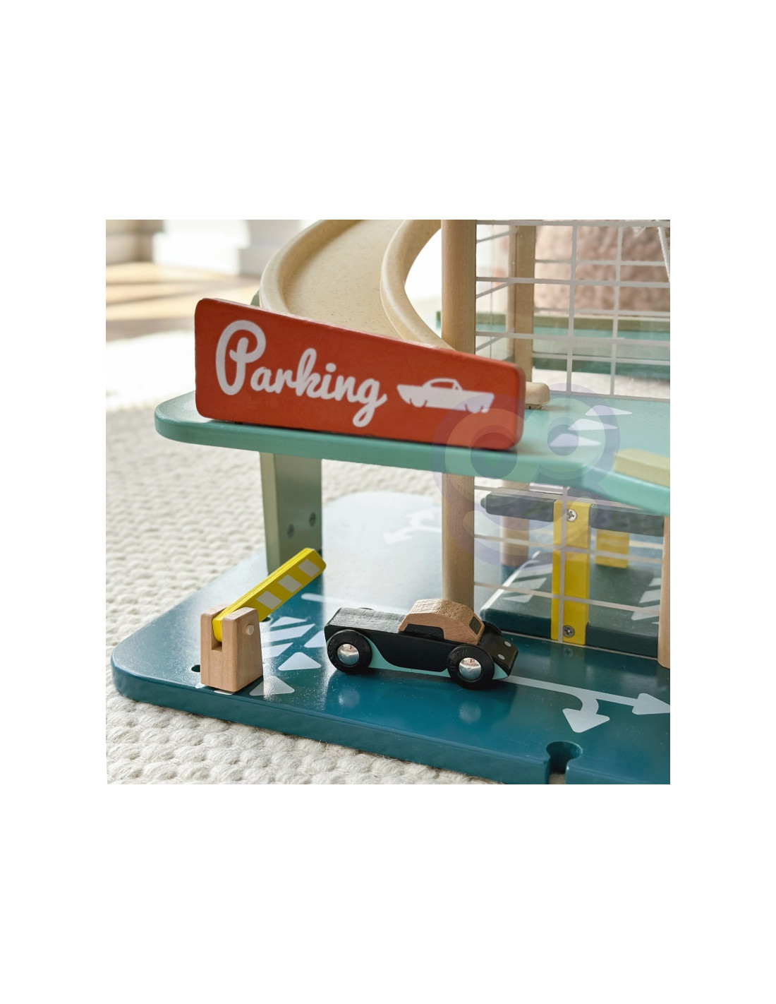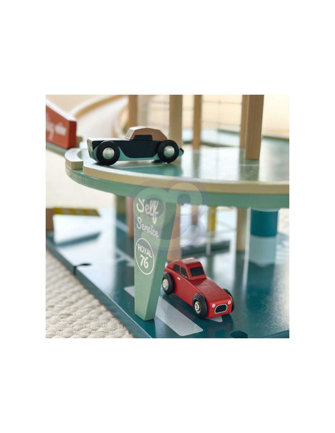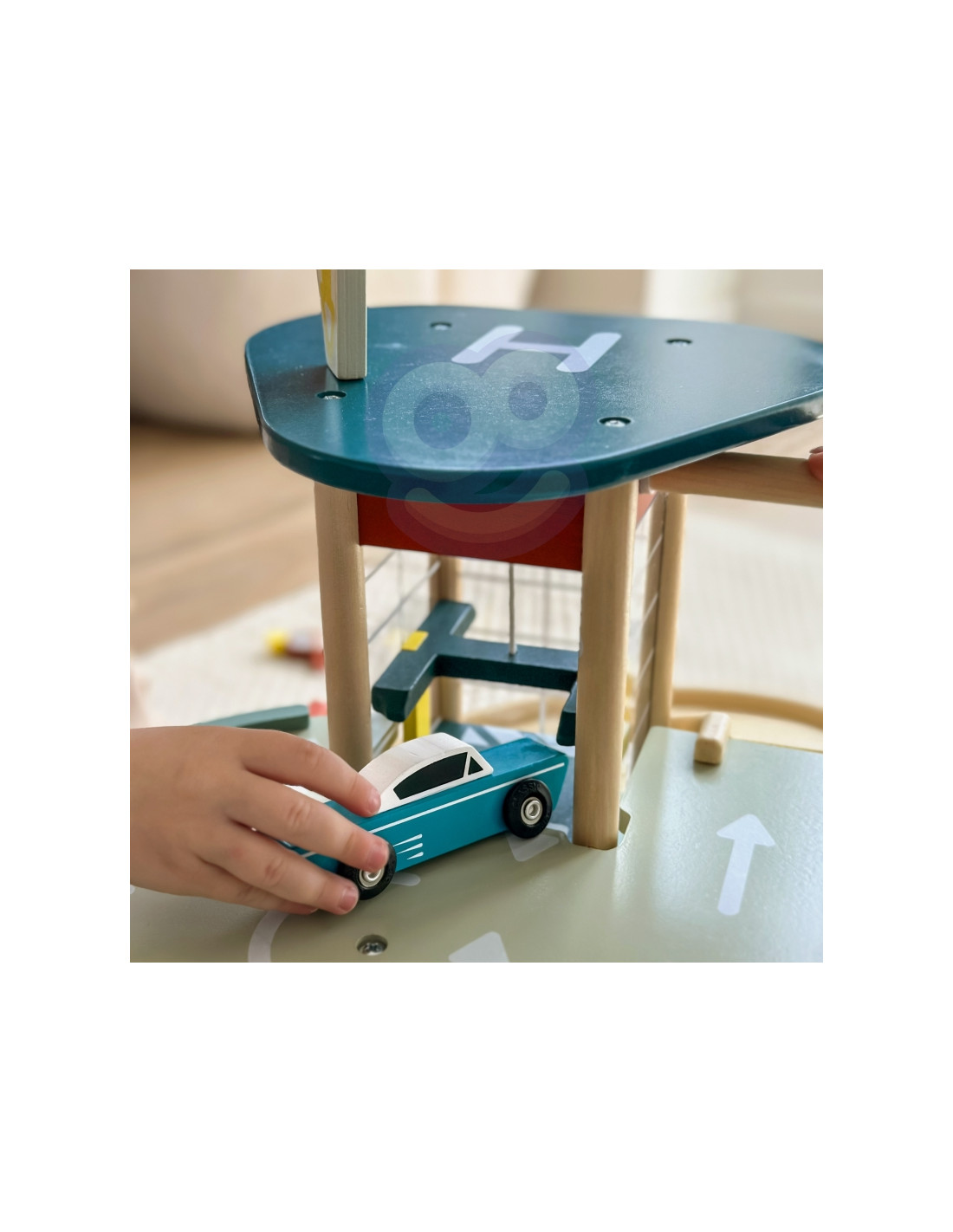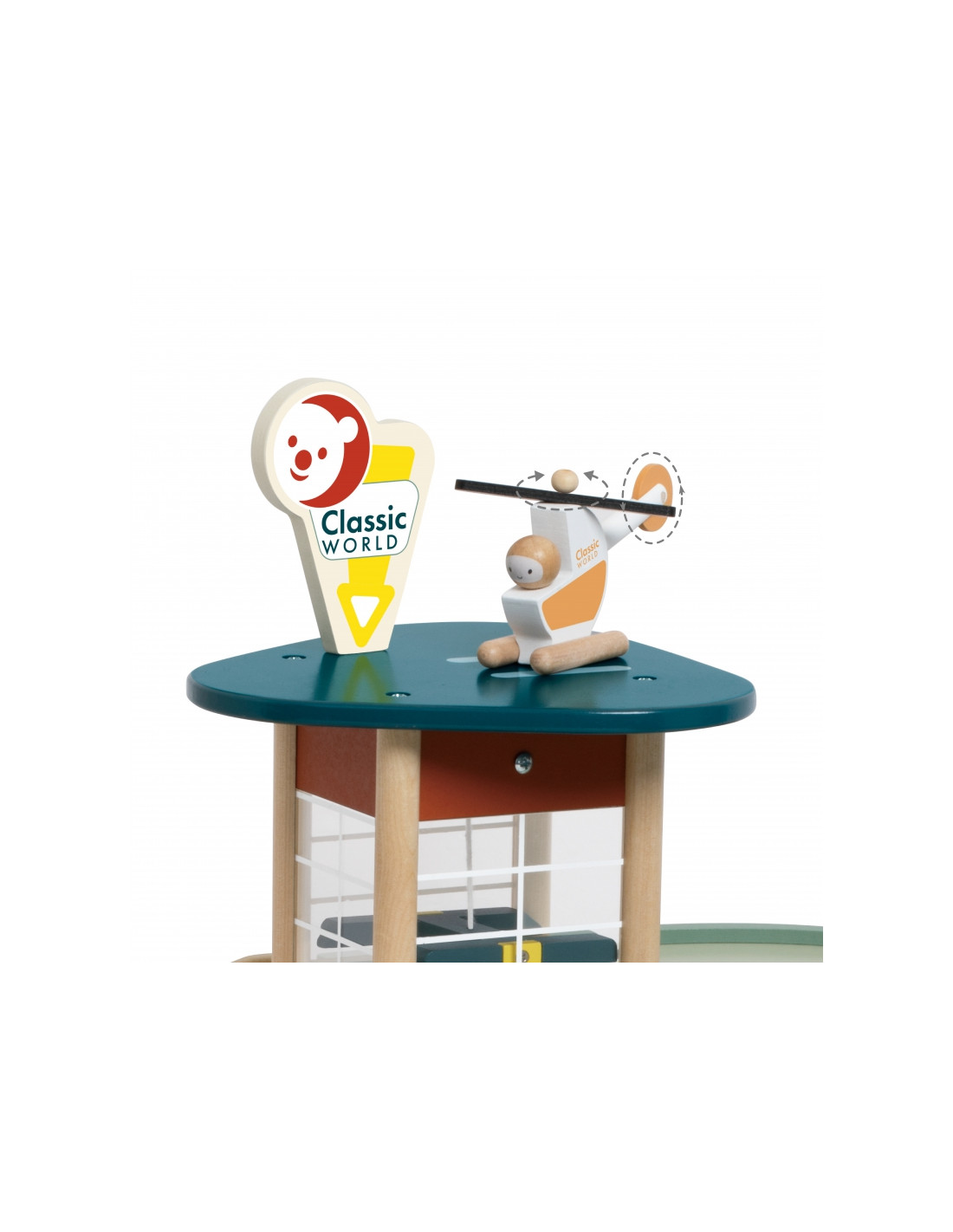 Inspired by the 1950s, this CLASSIC WORLD garage evokes the golden age of cars ! It features stylish cars, a car wash, a fuel pump, and bioplastic ramps for access to the parking lot. An elevator serves all three levels and is topped with a platform that houses a helicopter . The base is equipped with connectors for creating a track. This toy develops fine motor skills and language skills. Playing with other children also helps develop social skills. The wood is FSC-certified, and the ramps are made of bioplastic.