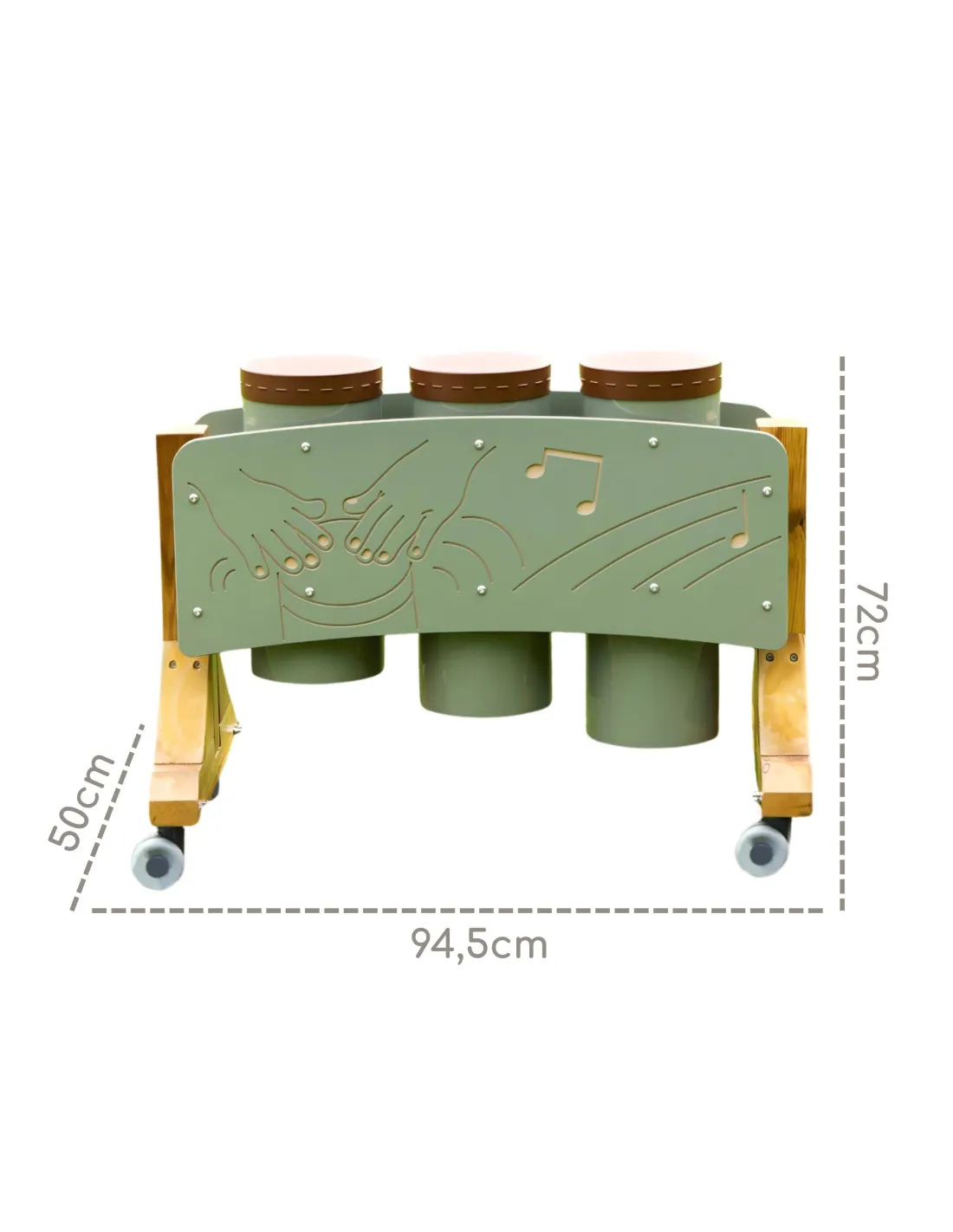 Bring exotic rhythms straight to your playground or garden music corner! This impressive set of three Conga drums from Masterkidz is an invitation to a world of sound, where children can create unique melodies together by striking their professionally tuned drumheads with their hands. Thanks to its durable HDPE construction , the instrument is completely resistant to rain, snow, and sun, allowing for carefree, year-round outdoor play . It's ideal for both free improvisation for three children at a time and organized rhythm classes, where the drums set the pace for the entire group. Discover the little virtuoso in your child and let them develop their passion for music in the most natural, joyful way possible – no electronics, just pure rhythm!