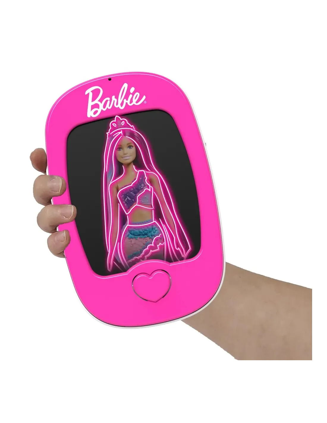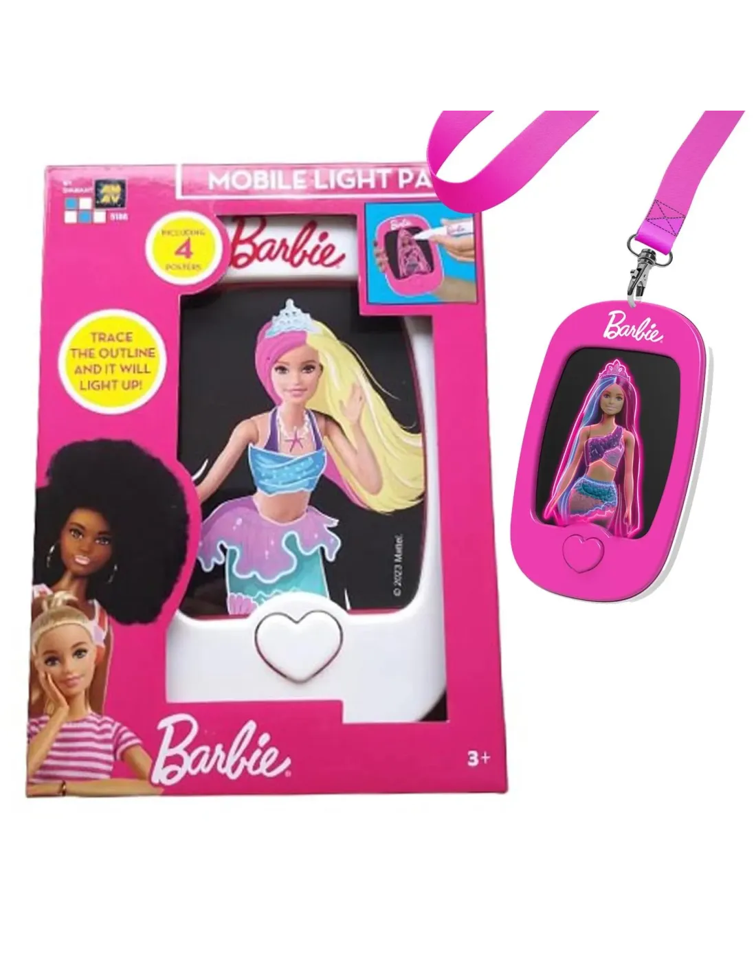 Introducing the Barbie Mobile Light Pad - Illuminated Tablet Pad with Barbie 5186, a delightful creativity tool for children aged 3 years and above. This interactive pad comes equipped with three vibrant markers, four design templates, and a convenient lanyard, ensuring endless hours of imaginative fun. The dimensions of the product measure 22 x 3 x 13 cm, making it compact and portable for creativity wherever inspiration strikes.