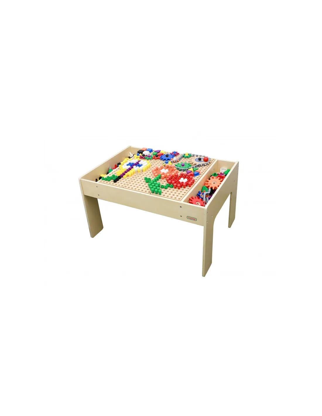 The Masterkidz STEM Educational Table + Accessories allows for creative play and exploration of the world of science. The 63 x 63 cm panel has holes into which you can create beautiful patterns by inserting colorful and geometric pegs, screws, and gears .