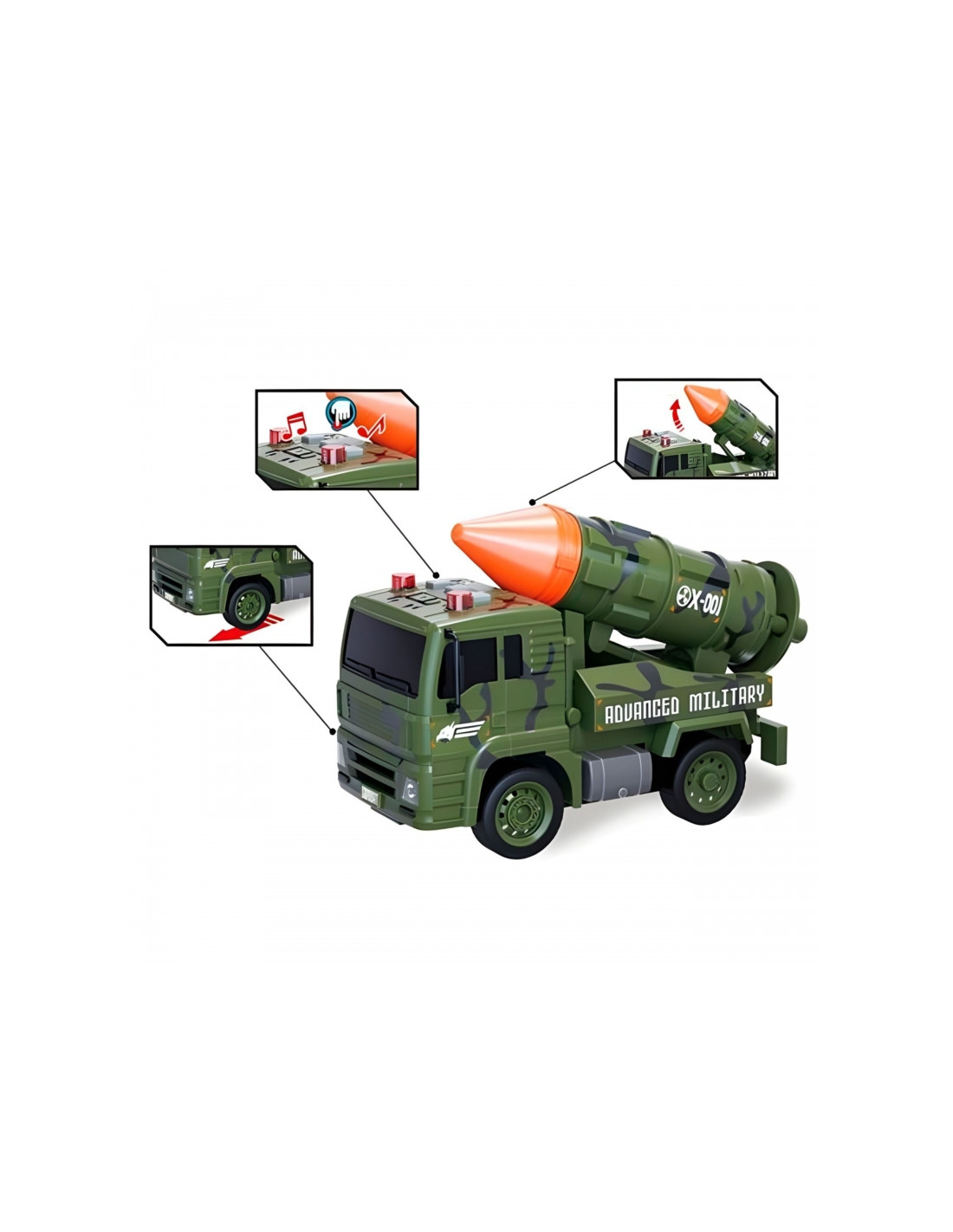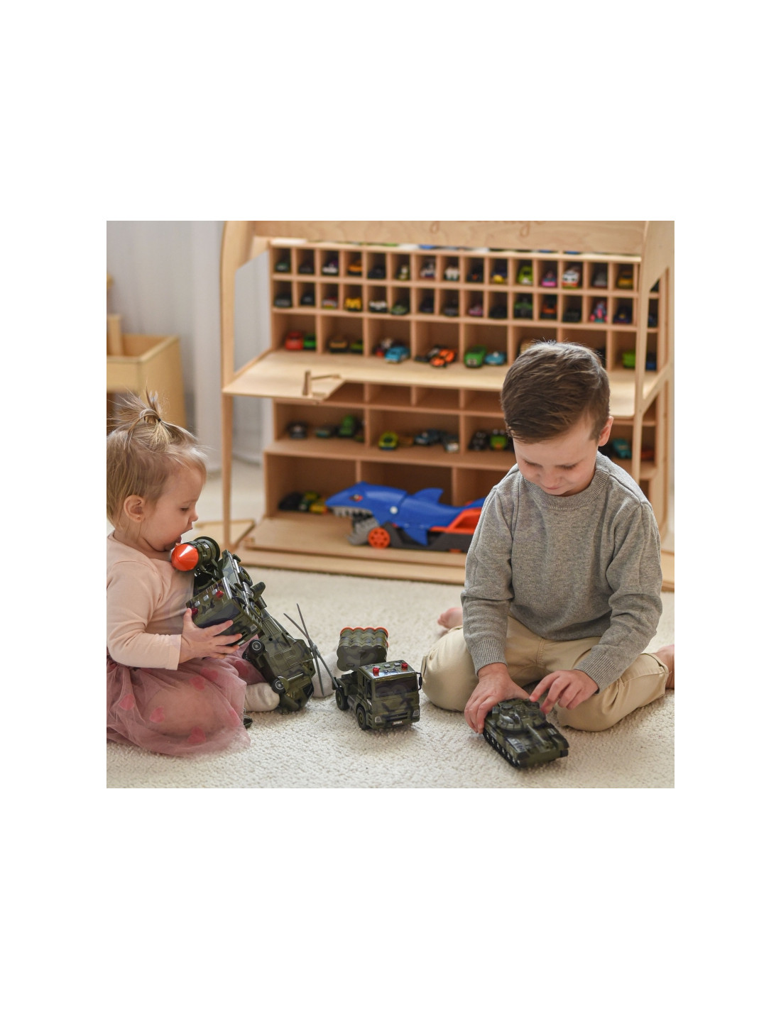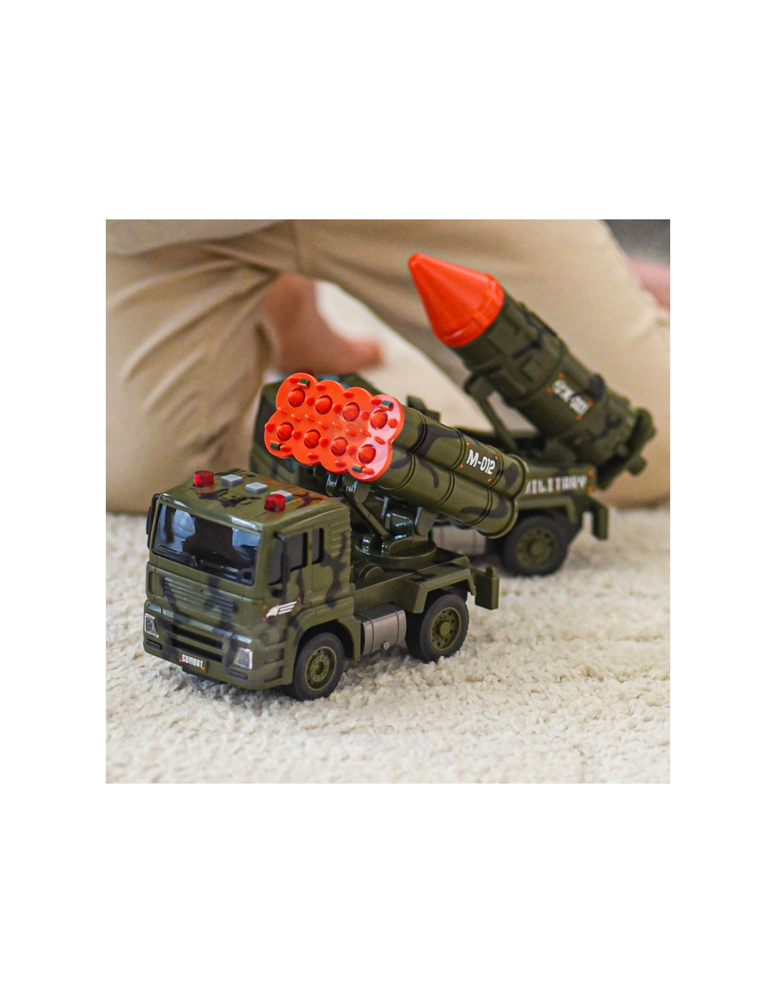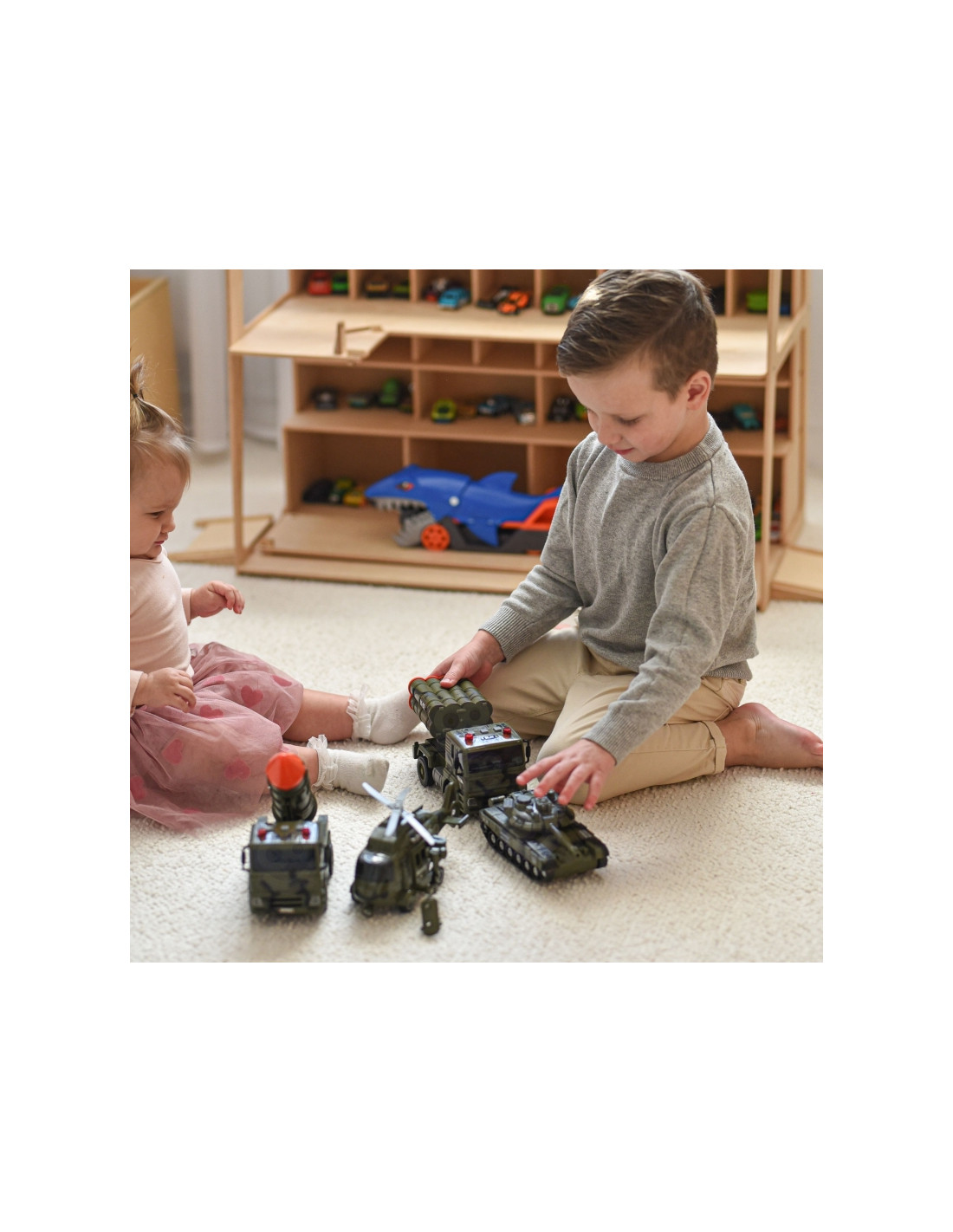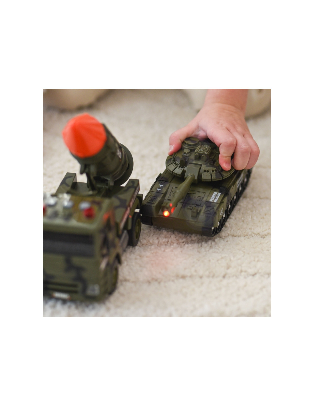 The complete military vehicle set from Woopie is the perfect choice for any young military and action fan! This high-quality , 4-piece set includes realistic models of vehicles, such as a tank , a helicopter , and two powerful trucks with rocket launchers . The trucks are equipped with light and sound effects , making play incredibly dynamic and engaging. The helicopter features moving propellers and a rescue hook , inspiring role-playing rescue missions. The set develops imagination and creativity and is perfect for group play. Suitable for children aged 3 and up .