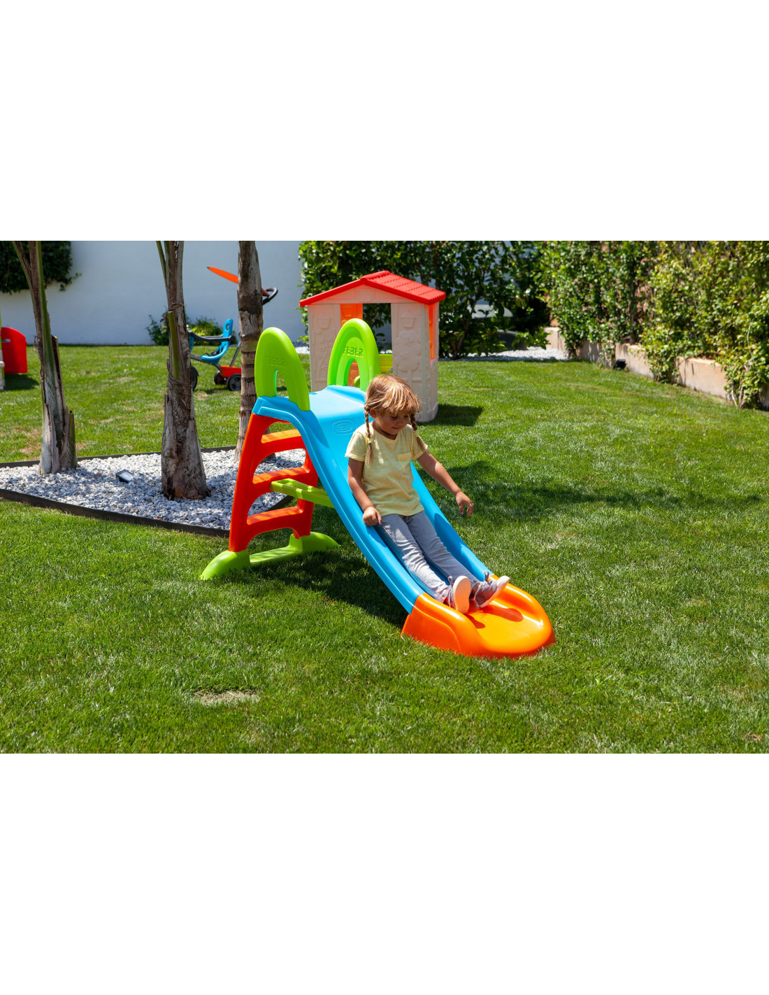 The Plus Slide from the renowned FEBER brand is a fantastic option for hot summer days for the little ones. Simply connect a garden hose to the top of the slide to provide children with cooling and fun play in the garden. The sturdy construction, equipped with non-slip steps , guarantees maximum safety during joyful descents. The toy is made of durable materials, coated with a special UV protection coating . This means its bright and intense colors won't fade in the sun and are resistant to sudden temperature changes. The slide is exceptionally stable, durable, and very easy to assemble.