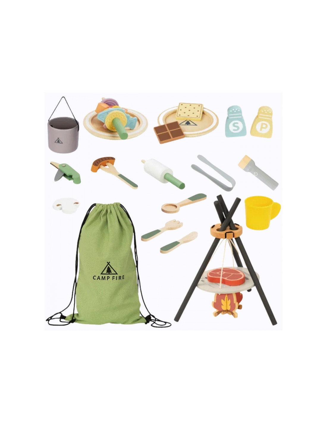 TOOKY TOY žaislinis stovyklavimo rinkinys su laužaviete ir priedais