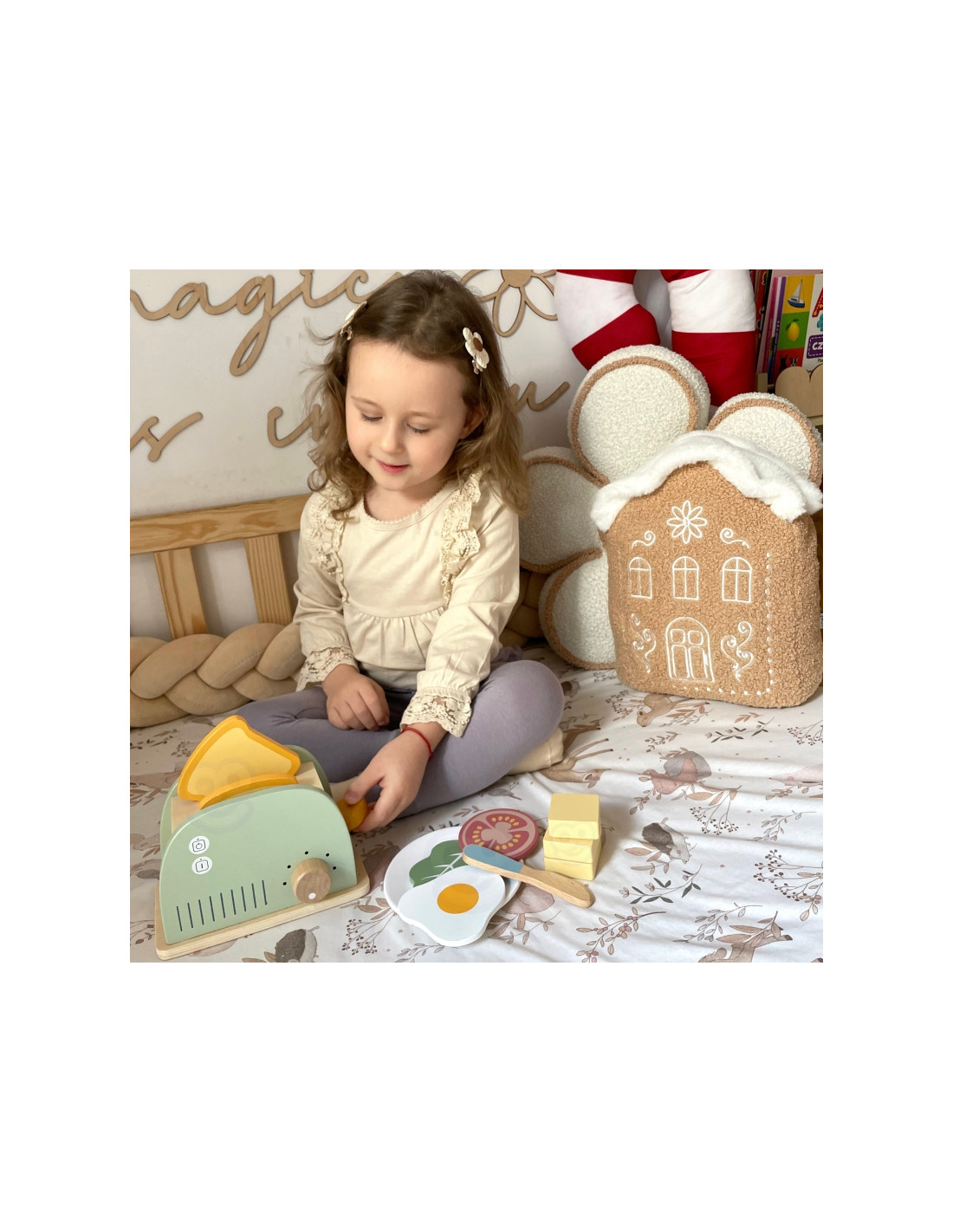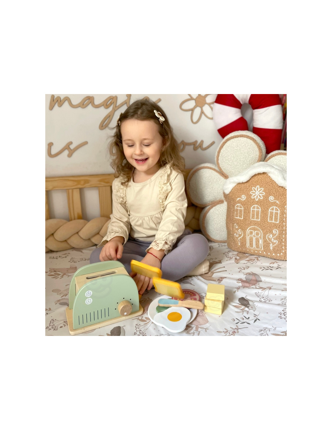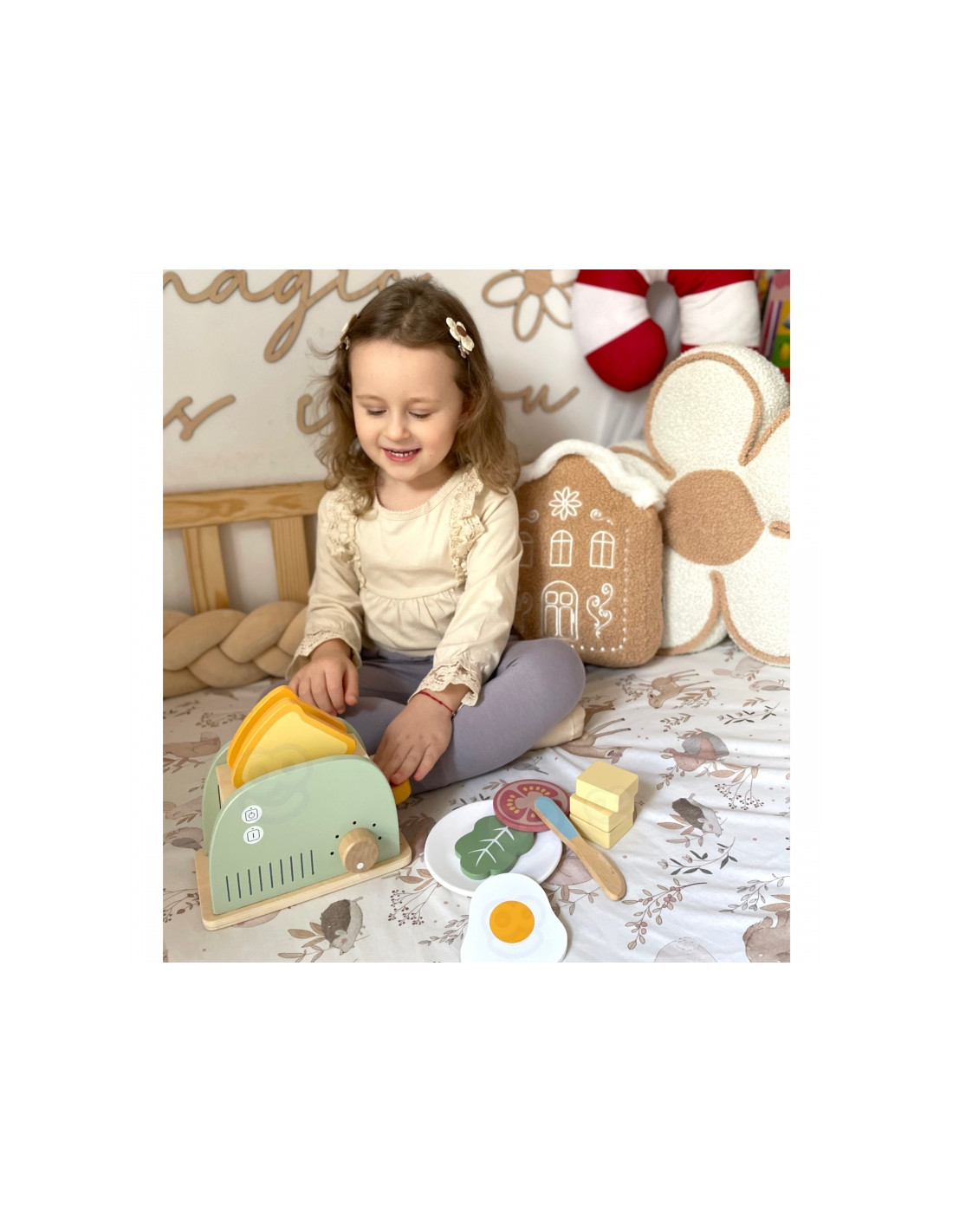 - - Imagination and creativity – creating your own combinations of toast and breakfast sets develops fantasy and the ability to create play scenarios.