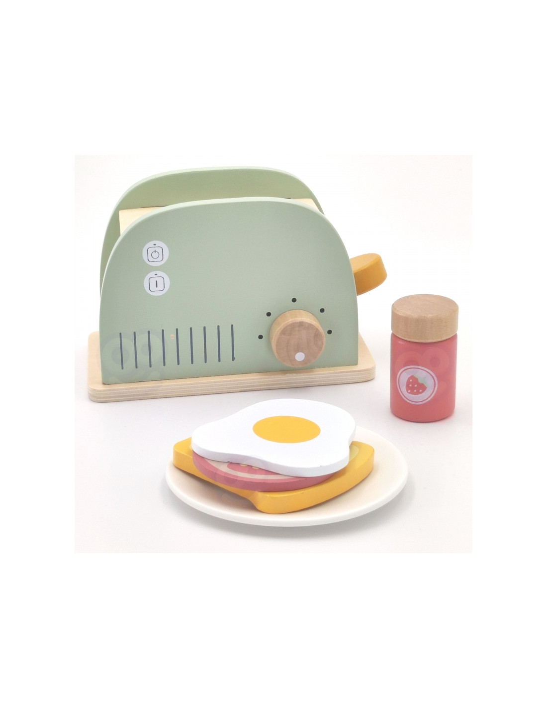 This wooden breakfast set with a toaster is a perfect choice for children who love playing house, cooking, and imitating adults. Inspired by everyday kitchen activities, this set allows you to prepare delicious toast, a fried egg, or a sandwich with toppings. This toy allows your child to become a little chef and creatively develop their social skills and imagination. Crafted from safe, smoothly finished wood and painted with non-toxic pastel paints, the toy is not only beautiful but also durable and long-lasting. The set is perfect for independent play or cooking with a parent or sibling. It's a great gift idea that teaches through play and develops everyday skills in your child.