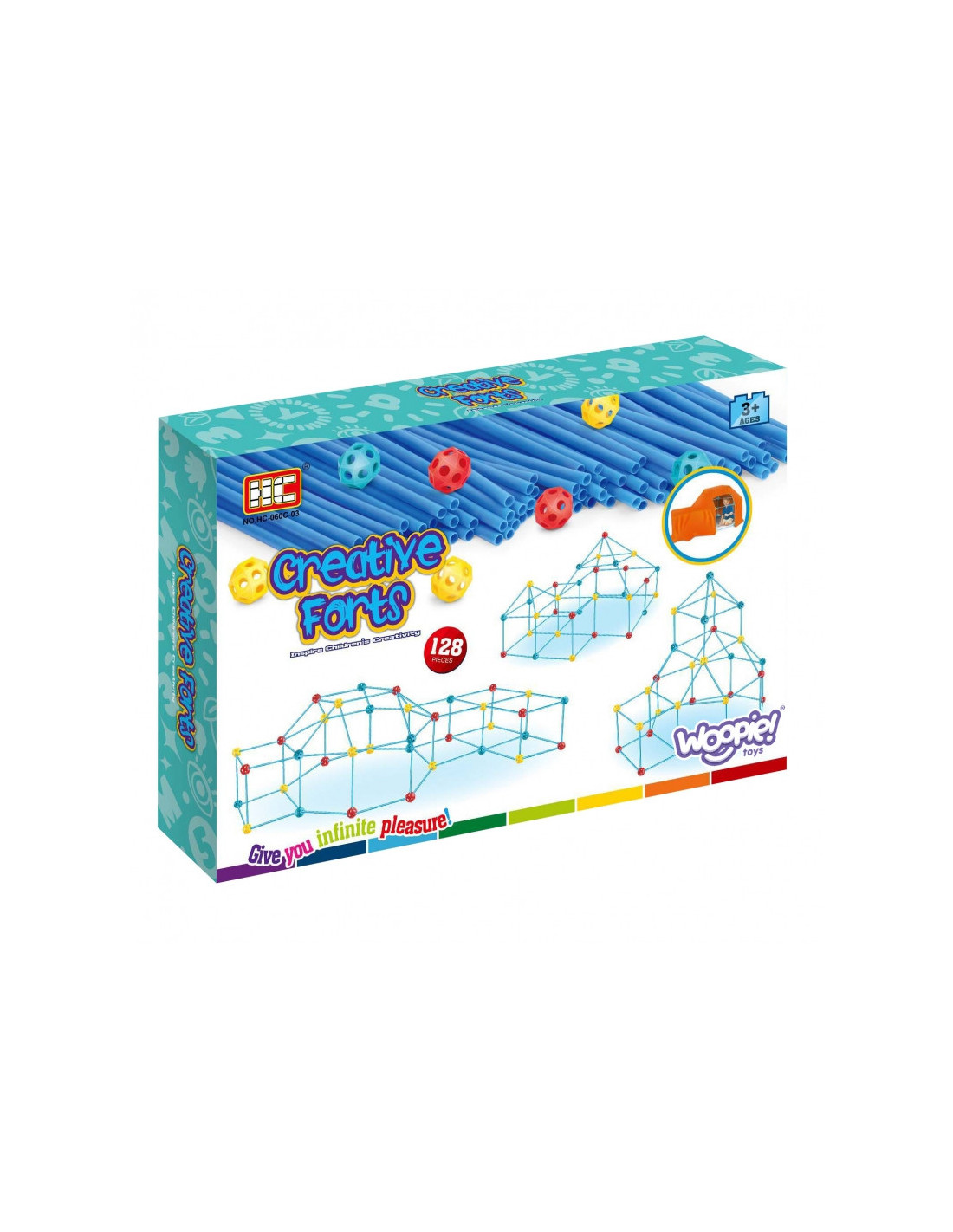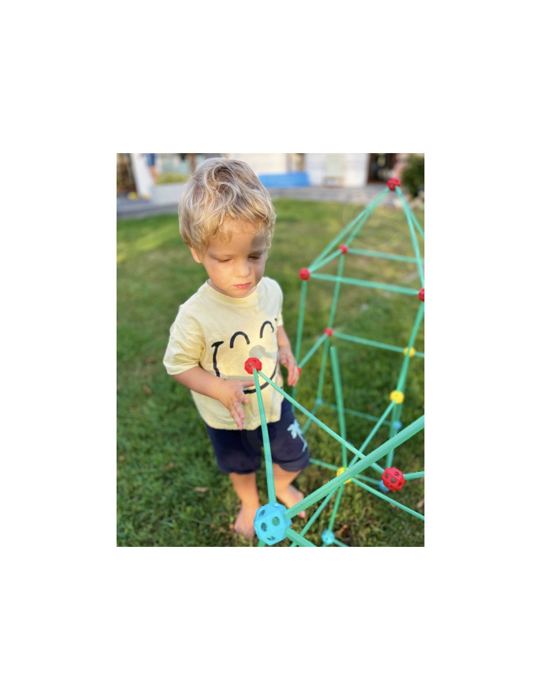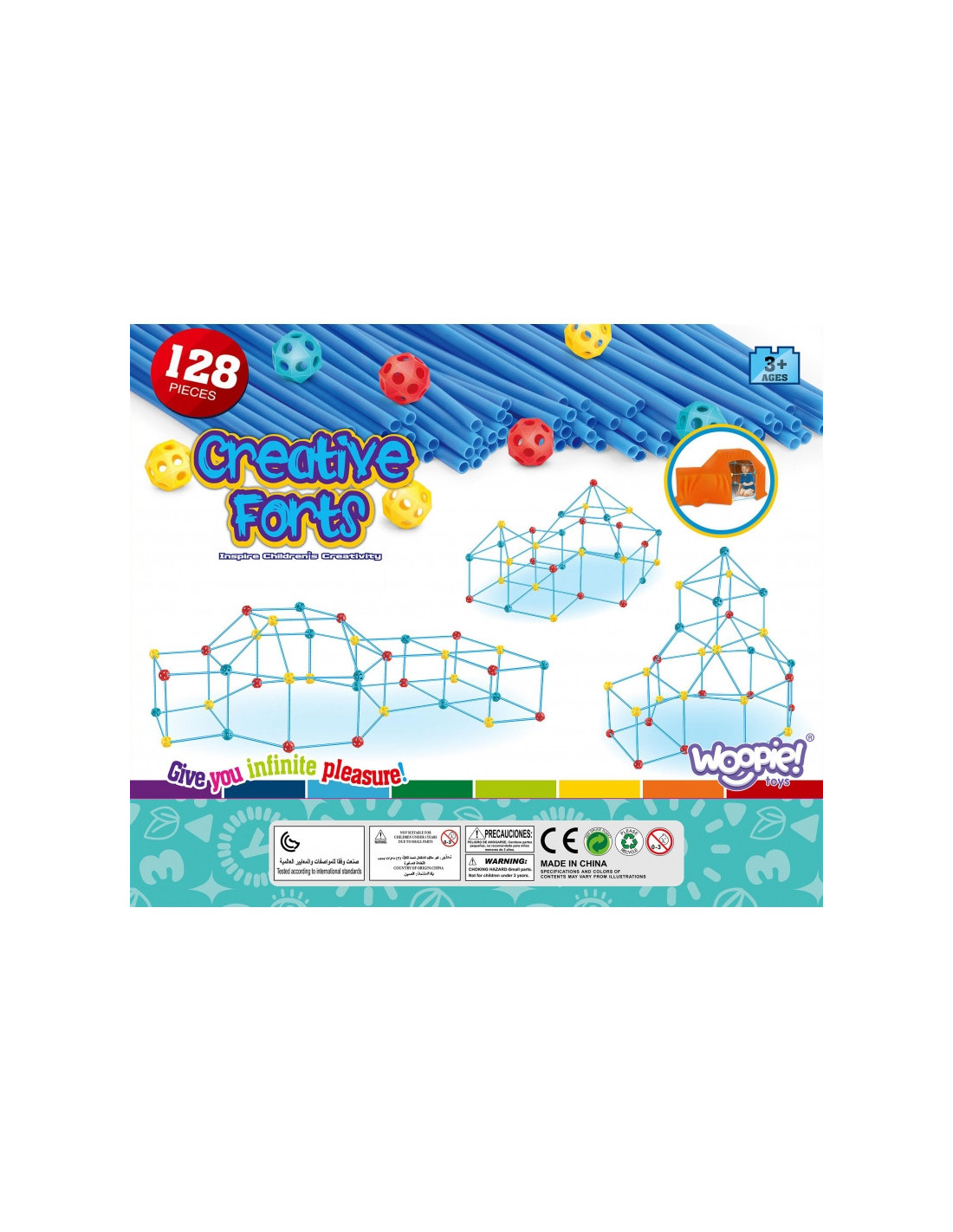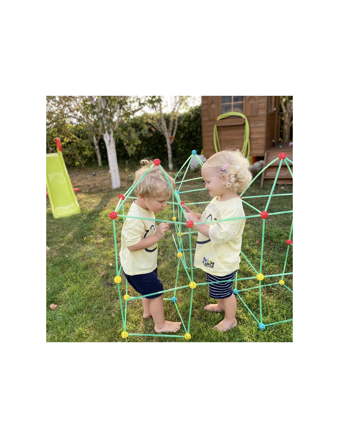 The WOOPIE Construction Set will awaken the great builder in your child! The set contains 128 pieces, including tubes, connectors, and fabric for covering the structure. The pieces can be connected to form a three-dimensional structure , like a tent, covered with fabric. The set allows for creative play both indoors and outdoors .