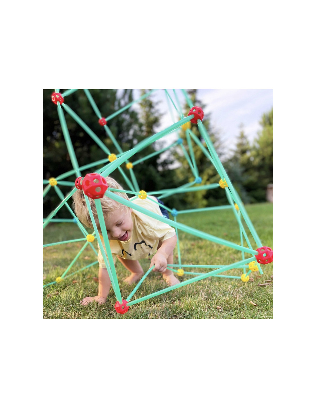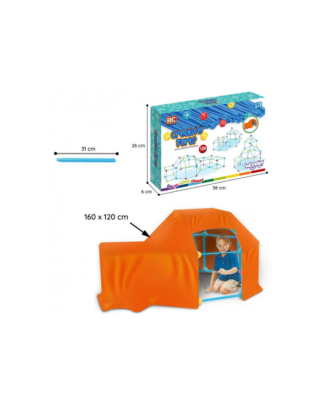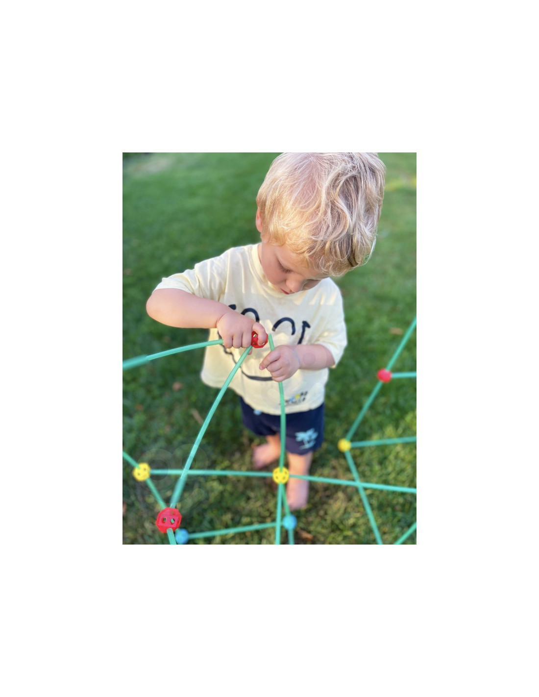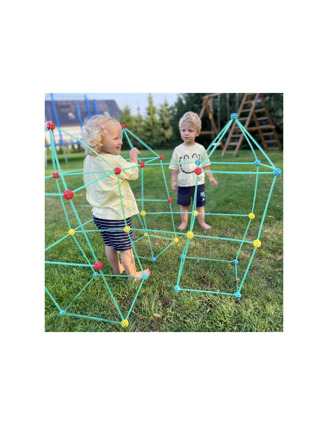 The WOOPIE Construction Set will awaken the great builder in your child! The set contains 128 pieces, including tubes, connectors, and fabric for covering the structure. The pieces can be connected to form a three-dimensional structure , like a tent, covered with fabric. The set allows for creative play both indoors and outdoors .