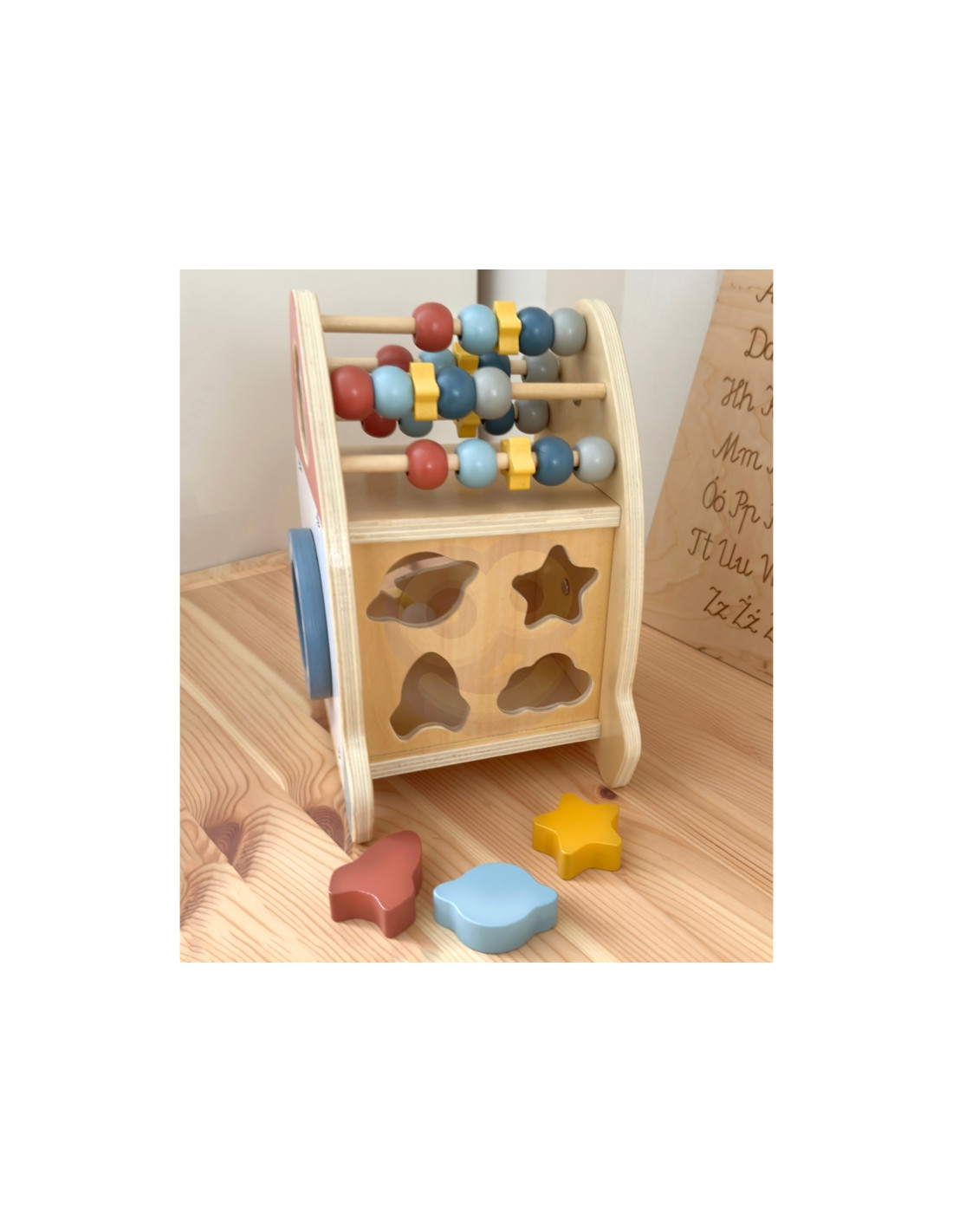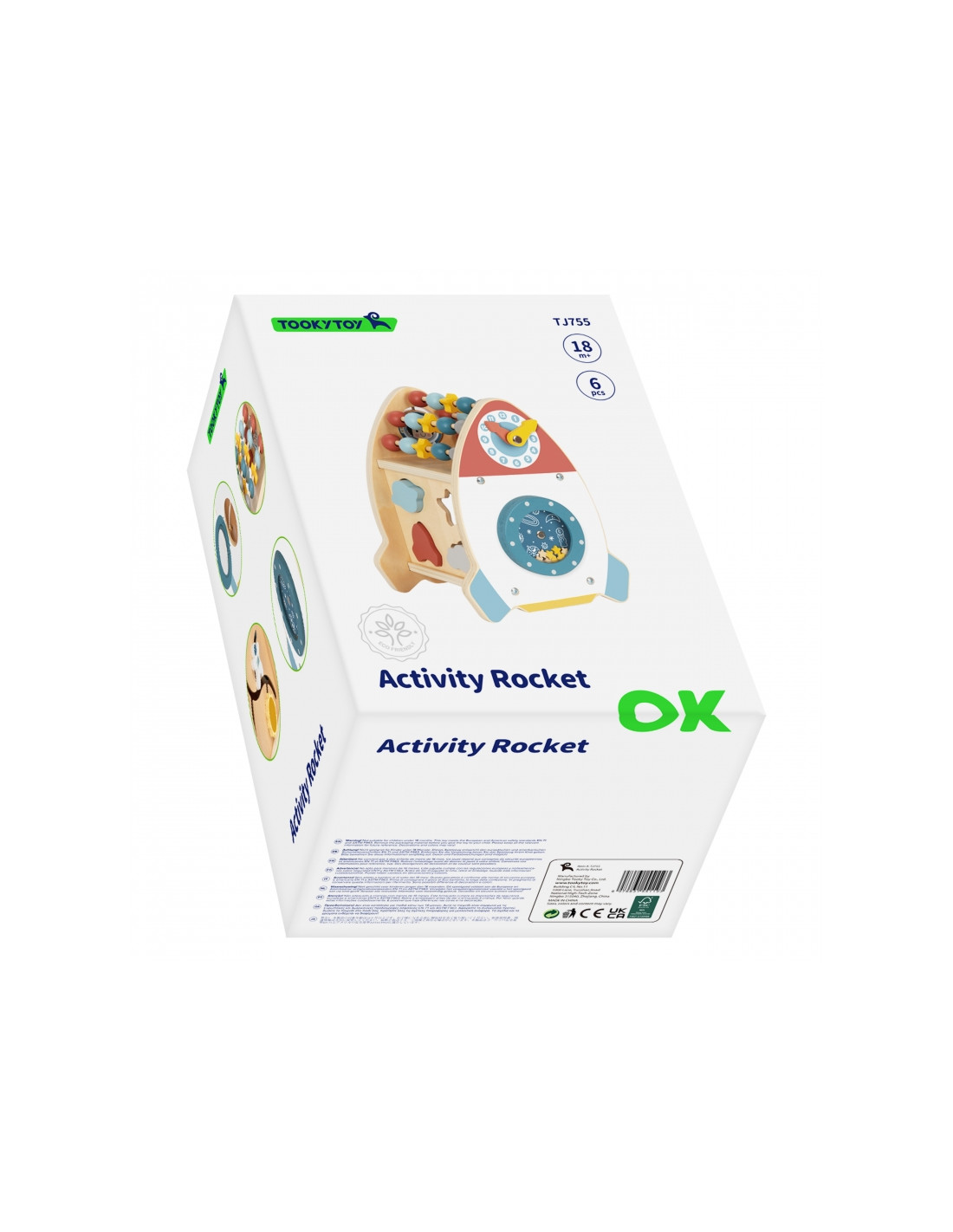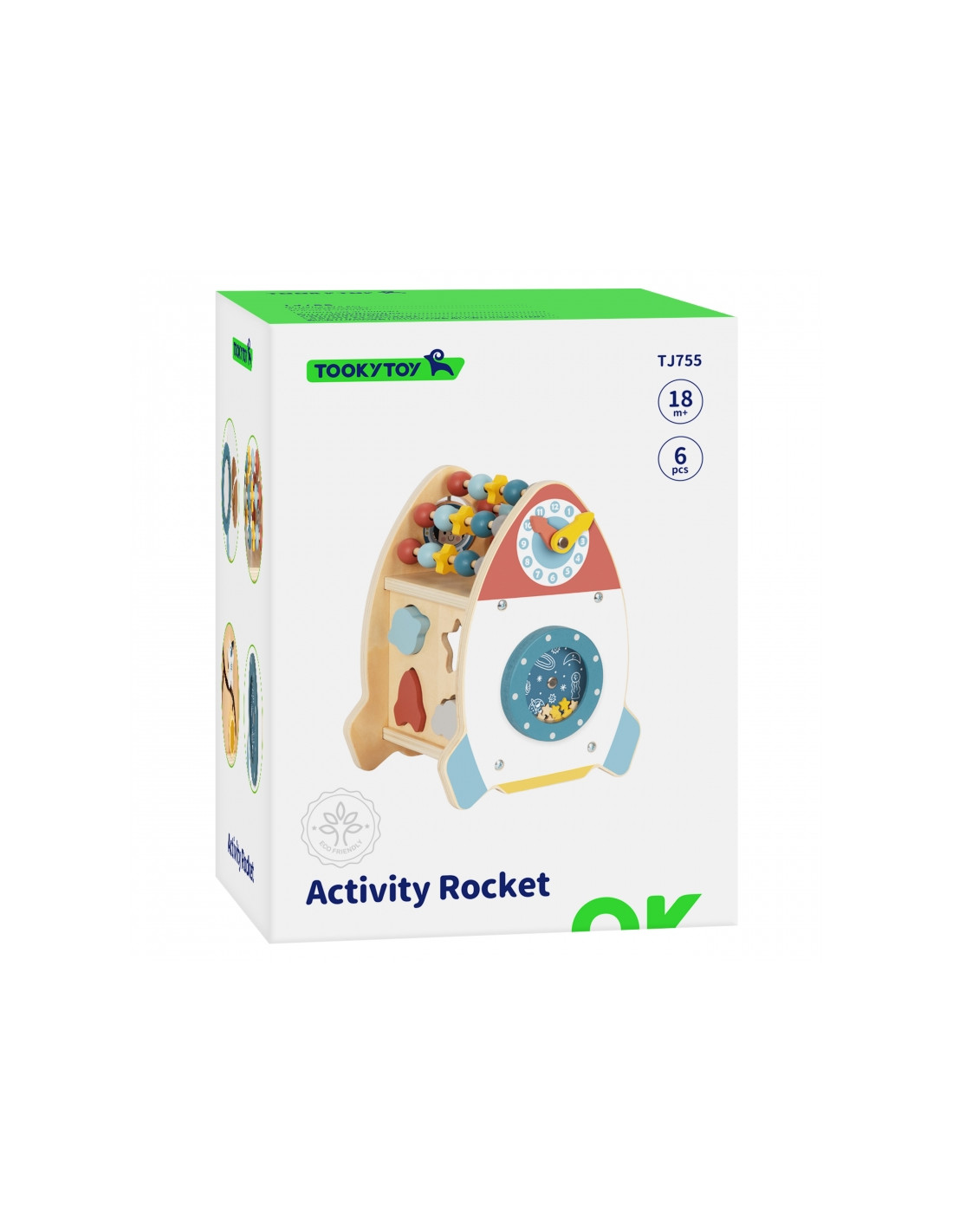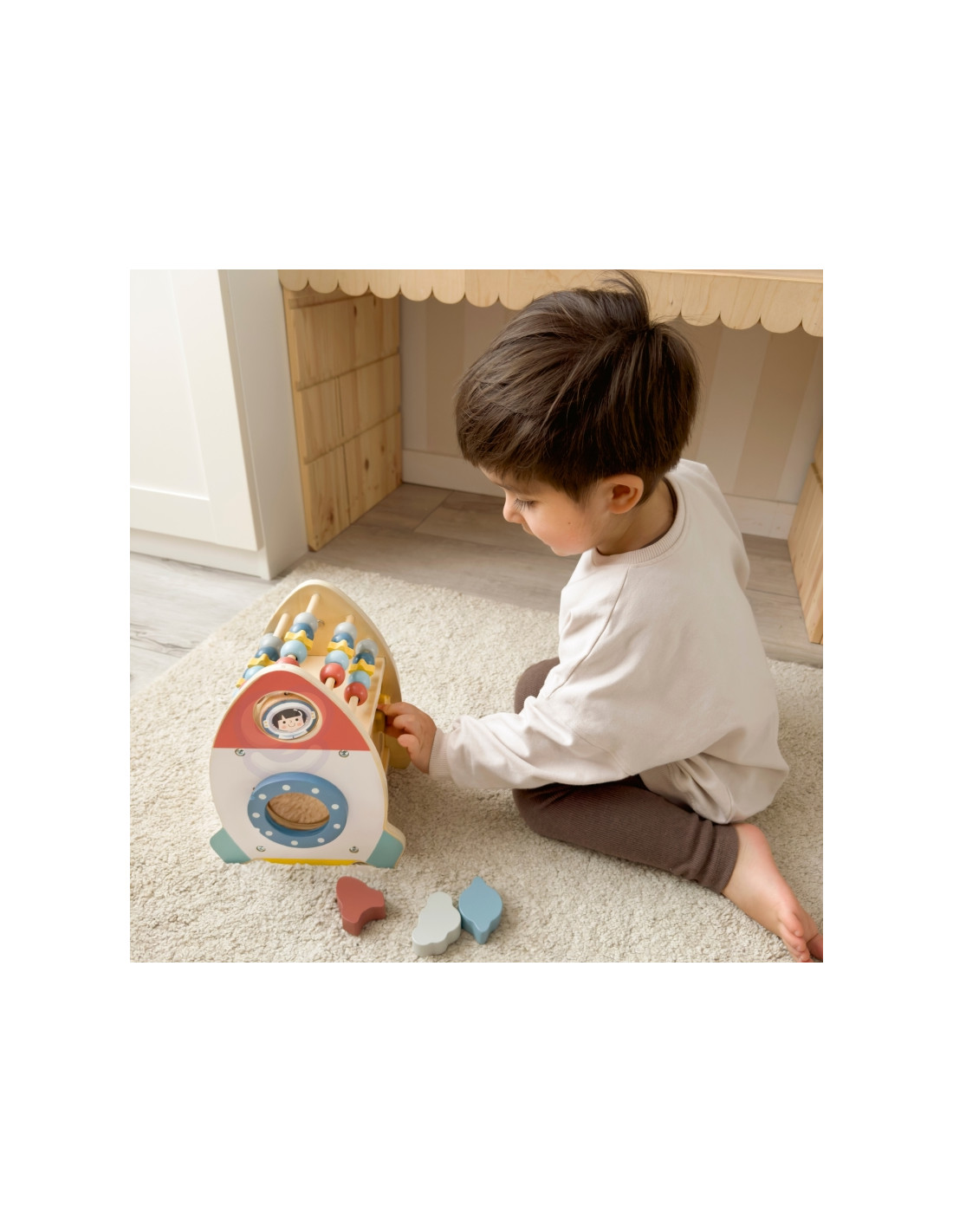 The Space Activity Rocket from Tooky Toy is a unique toy that invites little ones to discover the mysteries of space through engaging play . Its charming shape and soft colors are designed for children aged 18 months and up, combining aesthetics with safety . With six different active functions, such as moving beads, navigating a maze, rotating a galaxy, and sorting shapes, children can develop their motor skills, practice coordination, and spark their imagination.