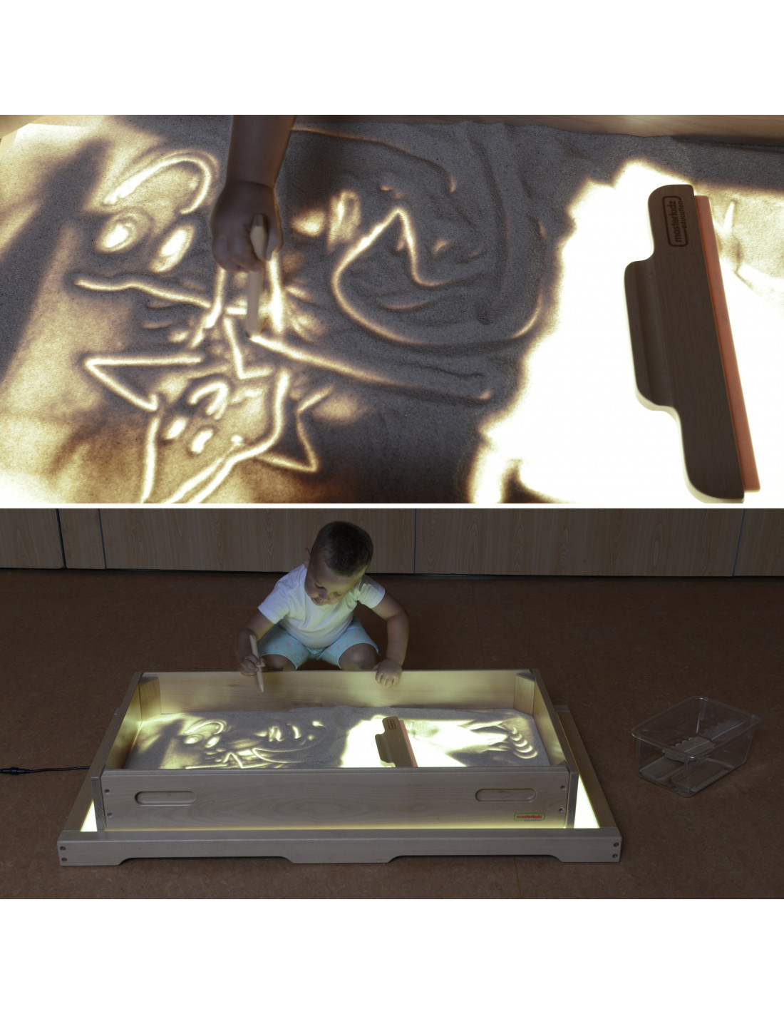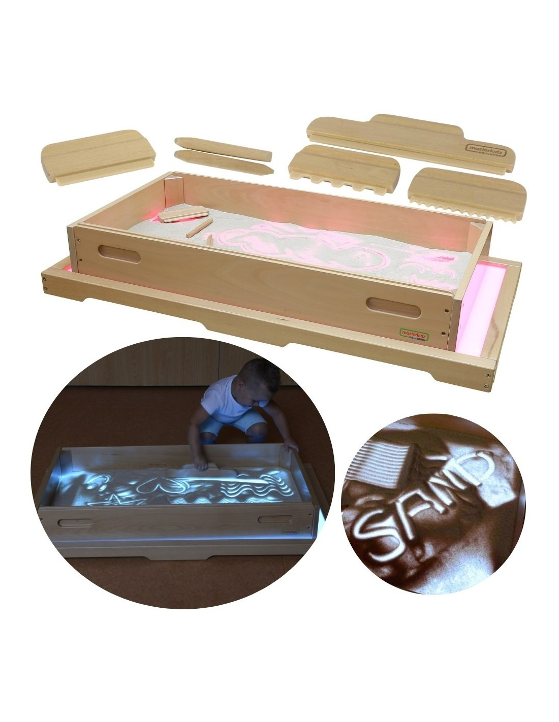 Take sensory play to a whole new level with the enormous Rectangular Sand Tray fromMasterkidz ! This impressive structure, with its safe, shatterproof base, is the perfect space for creating magical patterns that come to life when exposed to light (when placed on an LED panel or illuminated from below). Children will delight in drawing their first letters, numbers, or imaginative landscapes with their fingers, naturally drawing them into the world of learning to write through fascinating play. Thanks to its impressive dimensions, the tray is perfect for group work, becoming a center of creativity and integration in any preschool or playroom. This tool transforms ordinary sand into an illuminated canvas for a young artist's endless imagination, allowing them to quickly erase their creation and start the adventure anew.