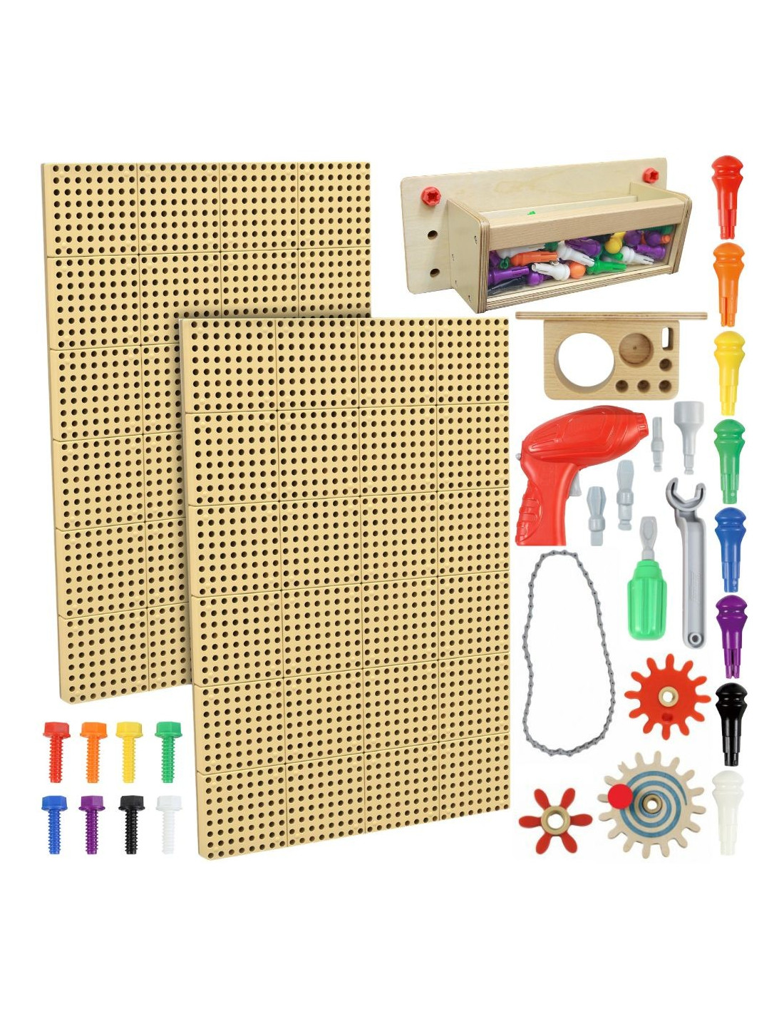 Discover endless possibilities for creative play with our modular educational STEM wallboard system from Masterkidz! These unique wall panels are the perfect base for creating amazing mosaics, building complex mechanisms, and free-form experimentation. Transform a blank wall into a vibrant center of imagination, where every child can become a little artist, engineer, or explorer. The boards encourage free self-expression by allowing for the attachment of colorful pegs, sparkling crystals, and other fascinating elements. This is a wonderful solution that saves space while providing hours of engaging and developing play.