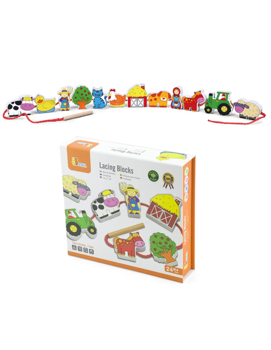Viga Wooden Threading Blocks with a farm theme are a great educational toy that combines fun with learning in a fun way. This set of colorful wooden figures encourages toddlers to create their own farm stories while also providing great exercise for little hands .