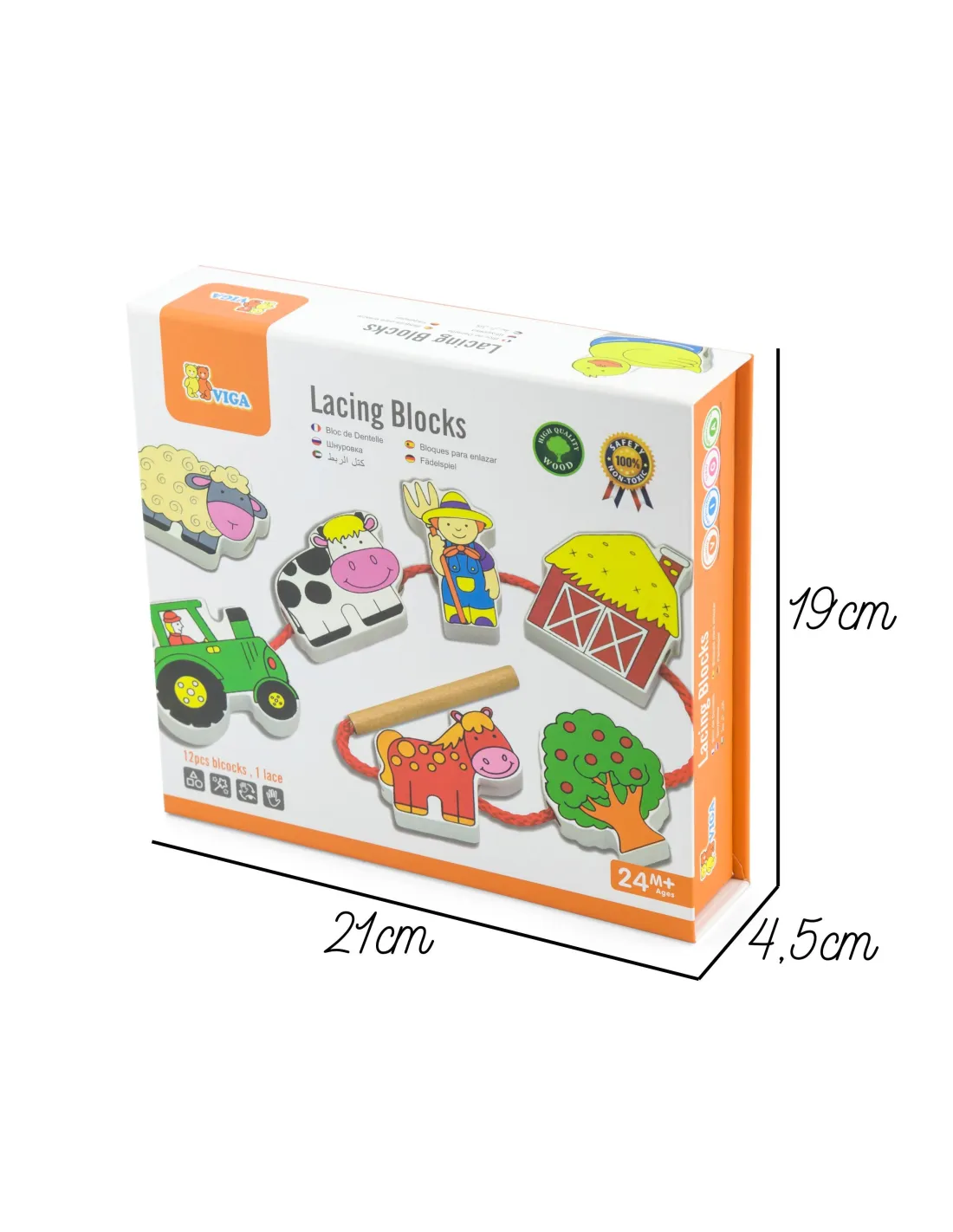 VIGA Wooden Intertwining Blocks Montessori Threading Farm