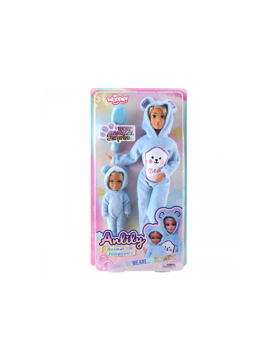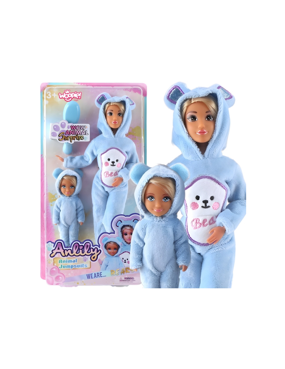WOOPIE ROYAL Anlily lėlės su mėlynai meškiukų kombinezonais