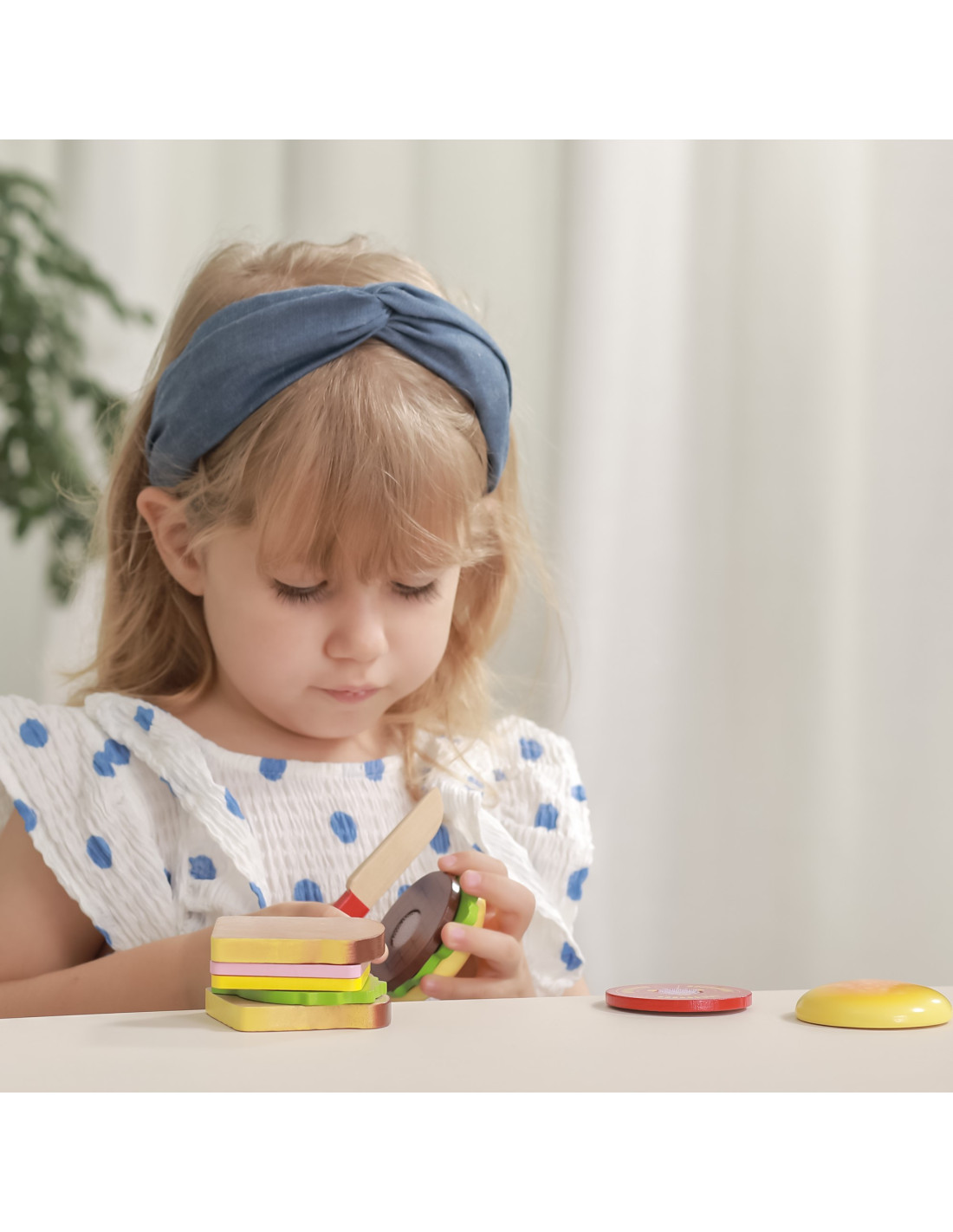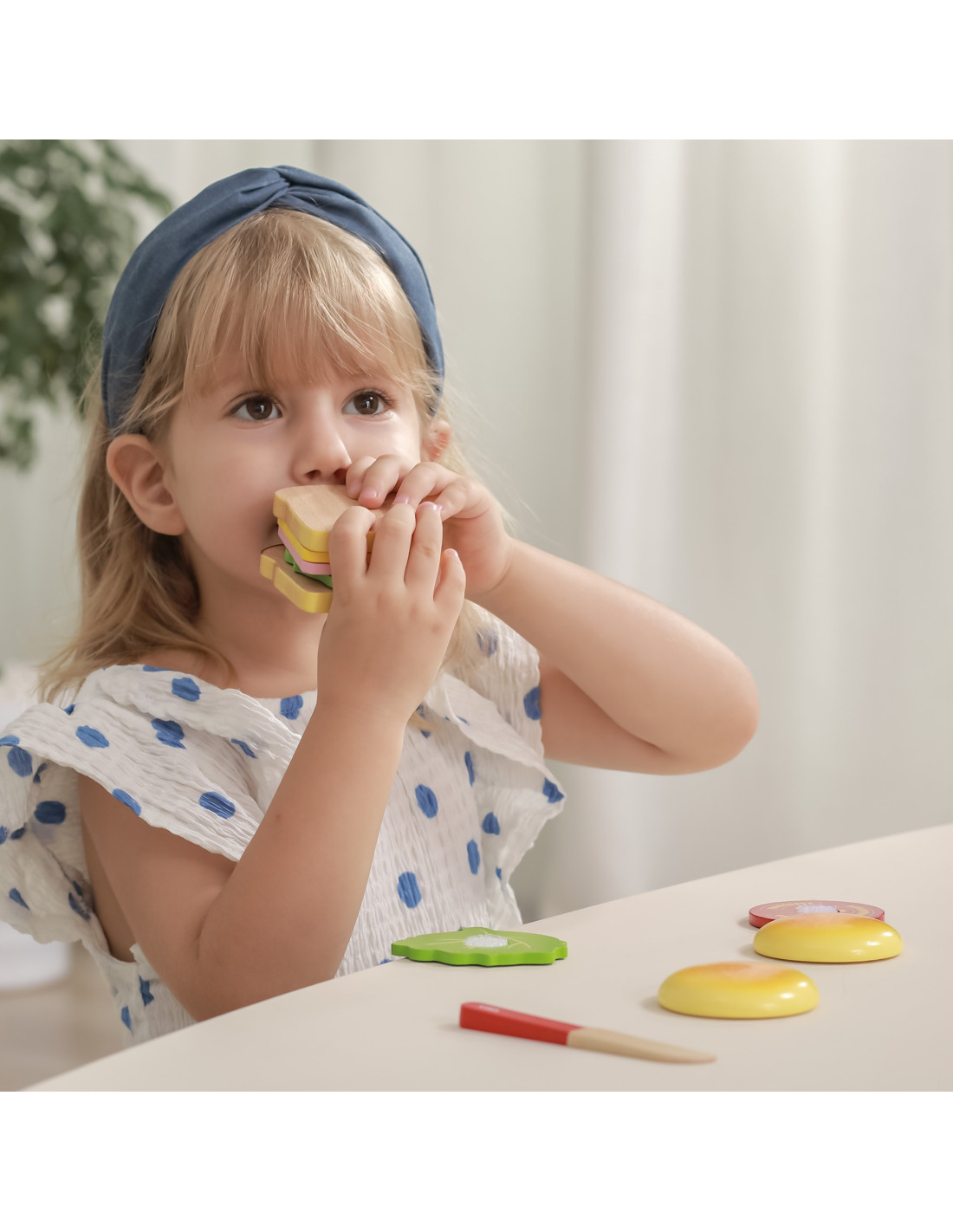 Make sandwiches and hamburgers with delicious ingredients! With this set, kids can make breakfast just like their parents would.