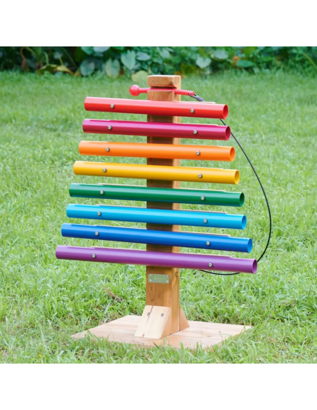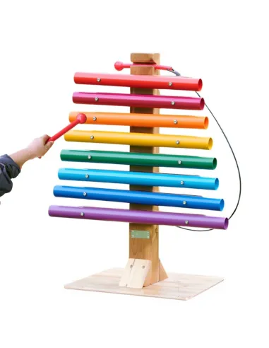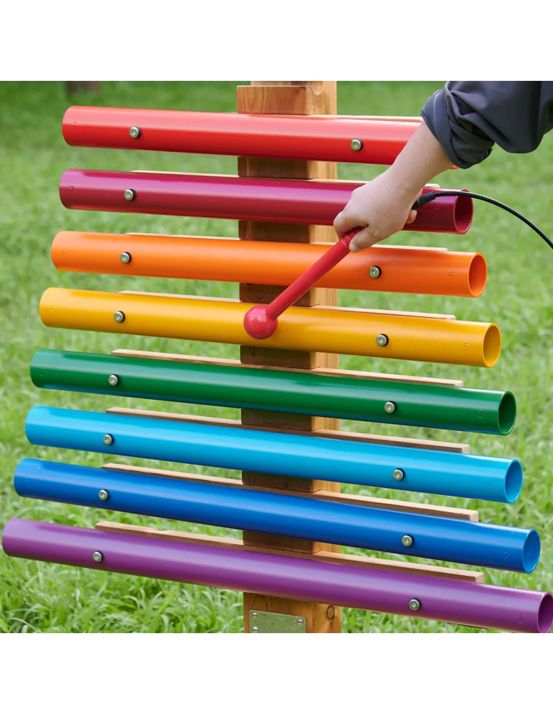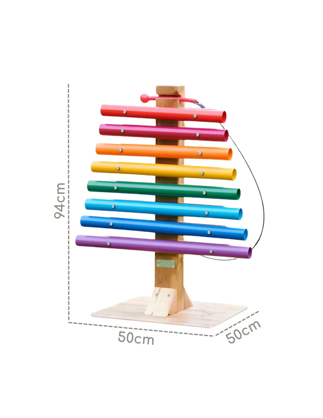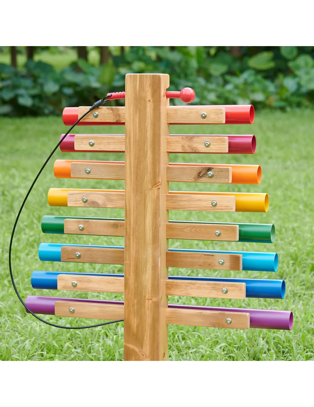 Discover the magic of sound in a grand format! The Rainbow Music Tower by Masterkidz is an impressive instrument that will become the heart of any garden, playground, or home music corner. Its sturdy natural pinewood structure proudly displays eight giant aluminum tubes in vibrant rainbow colors. This isn't just a toy—it's an introduction to the world of music, where every strike of the stick produces a pure, harmonious, and melodic sound. Thanks to its weather-resistant construction, young virtuosos can perform outdoors year-round, enjoying the joy of creating their own melodies and freely expressing themselves.