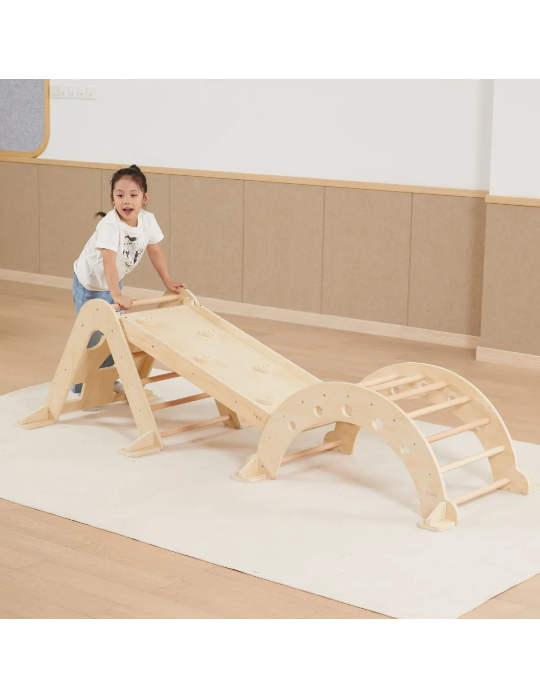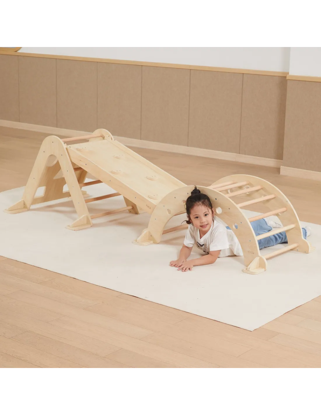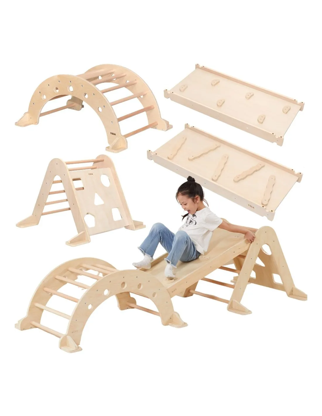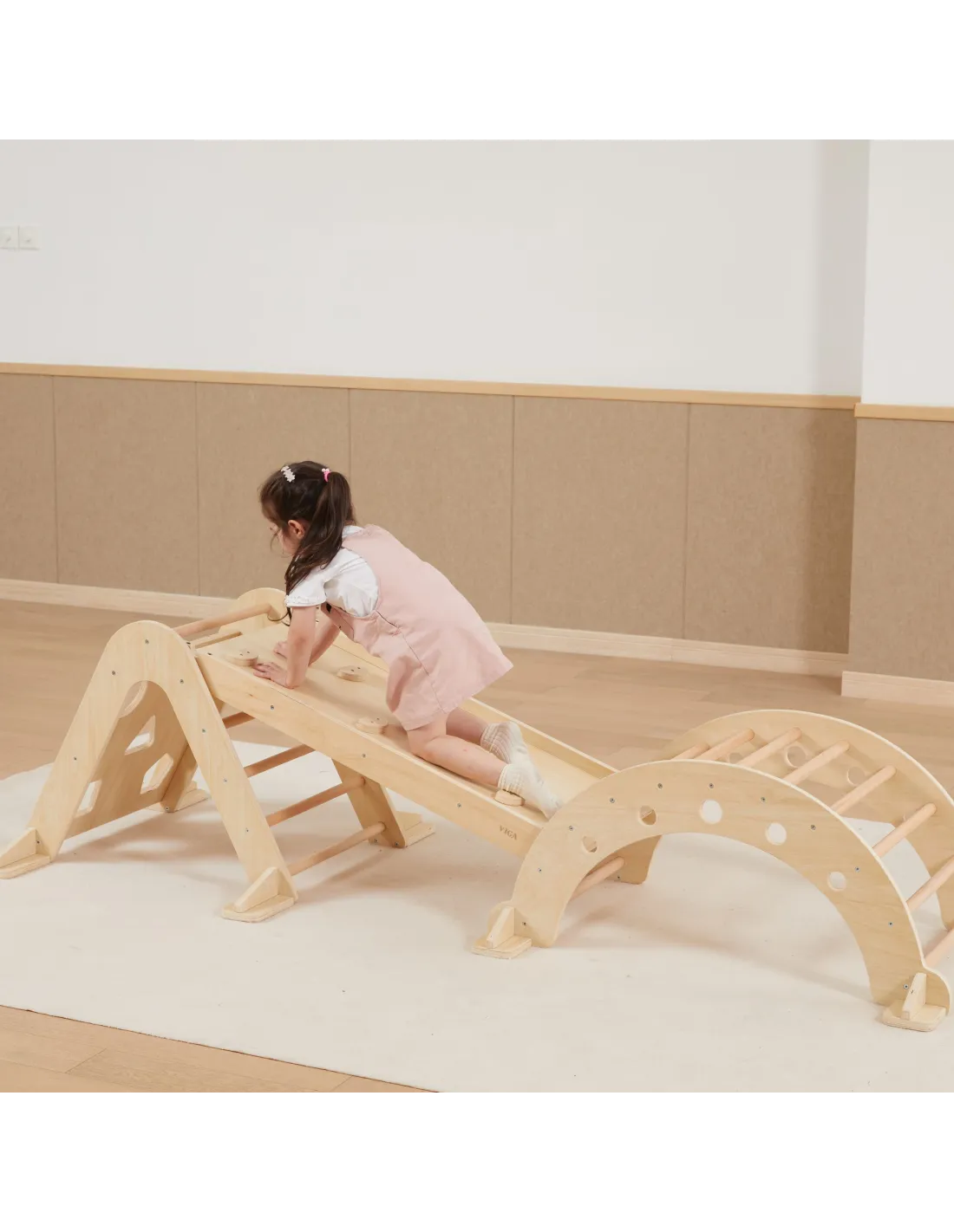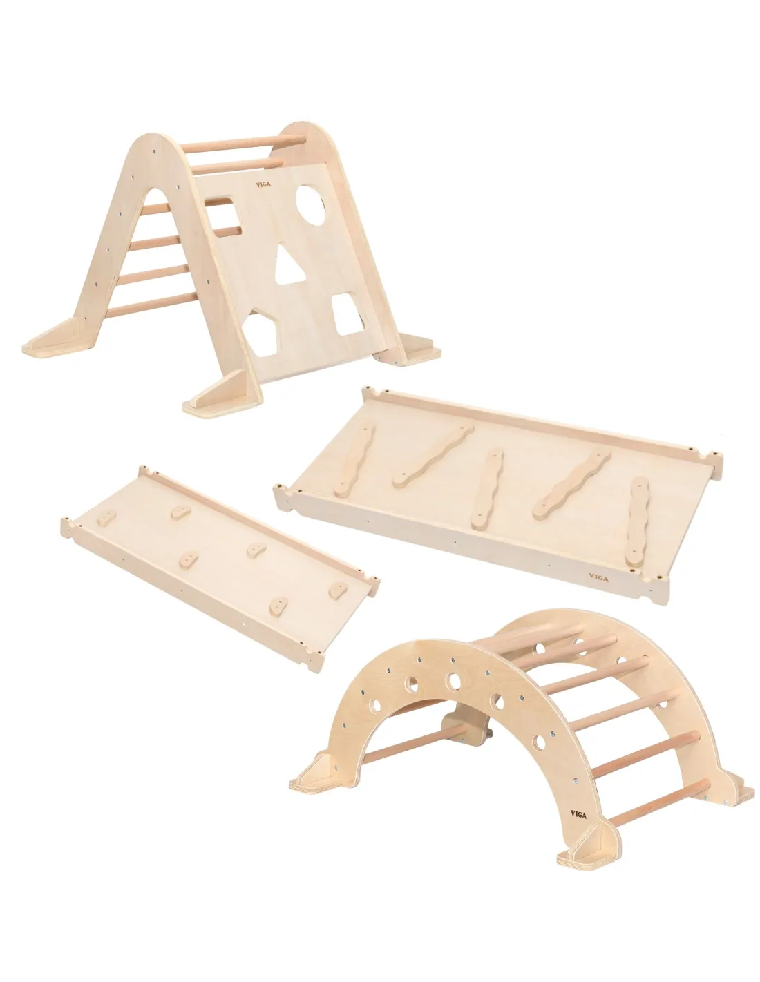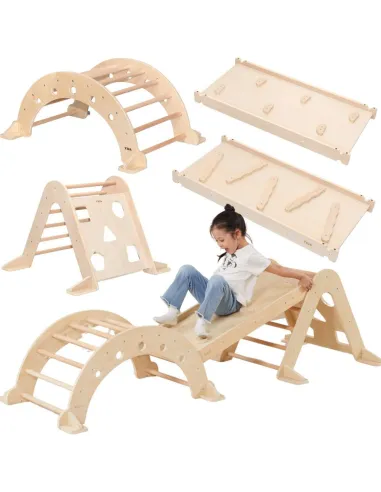 Create a space for your child to explore and play creatively with the complete VIGA Gymnastics Set. This unique set, consisting of a Climbing Triangle, Multifunctional Slide, and Rocker , is the perfect solution for parents who value the Montessori philosophy and healthy physical development.
