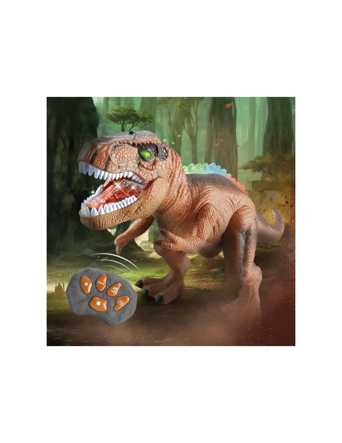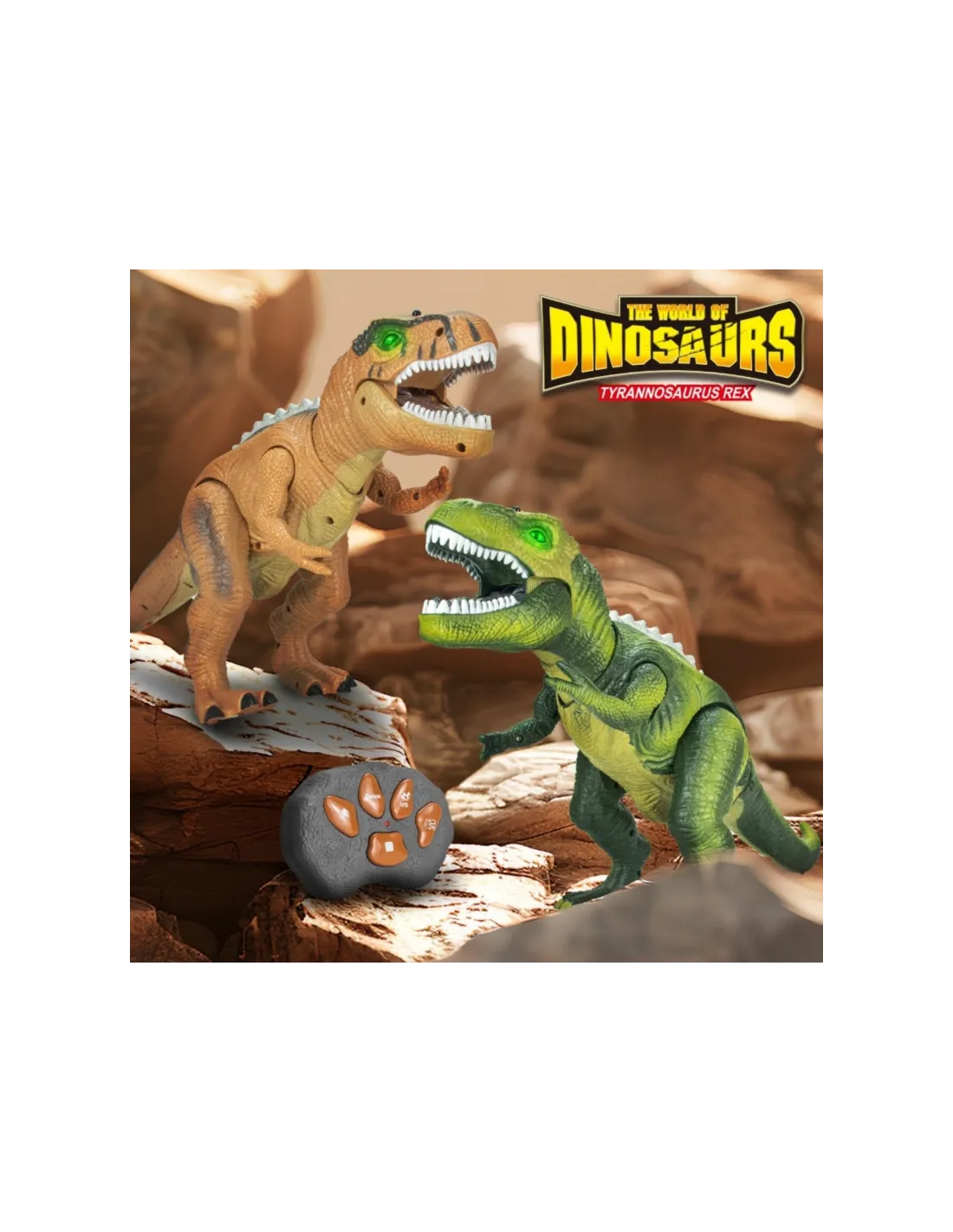 Discover the prehistoric world with the amazing, remote-controlled Tyrannosaurus Rex from Woopie ! This realistically reproduced dinosaur will transport any child to the Jurassic era. The T-Rex moves, makes roaring sounds , and features impressive lighting . The set comes with an easy-to-use remote control that allows for forward movement, movement, and a "dancing" function. Importantly, the remote control operates on different frequencies , allowing three people to play simultaneously without interference! It's the perfect gift for any little dinosaur fan.