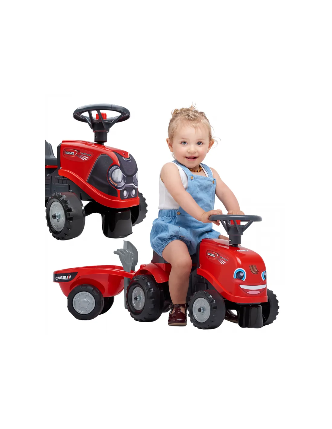 FALK Baby Case IH Ride-On Red su priekaba + priedais, skirtas nuo 12 mėnesių amžiaus