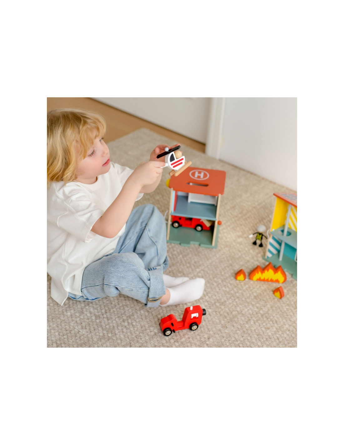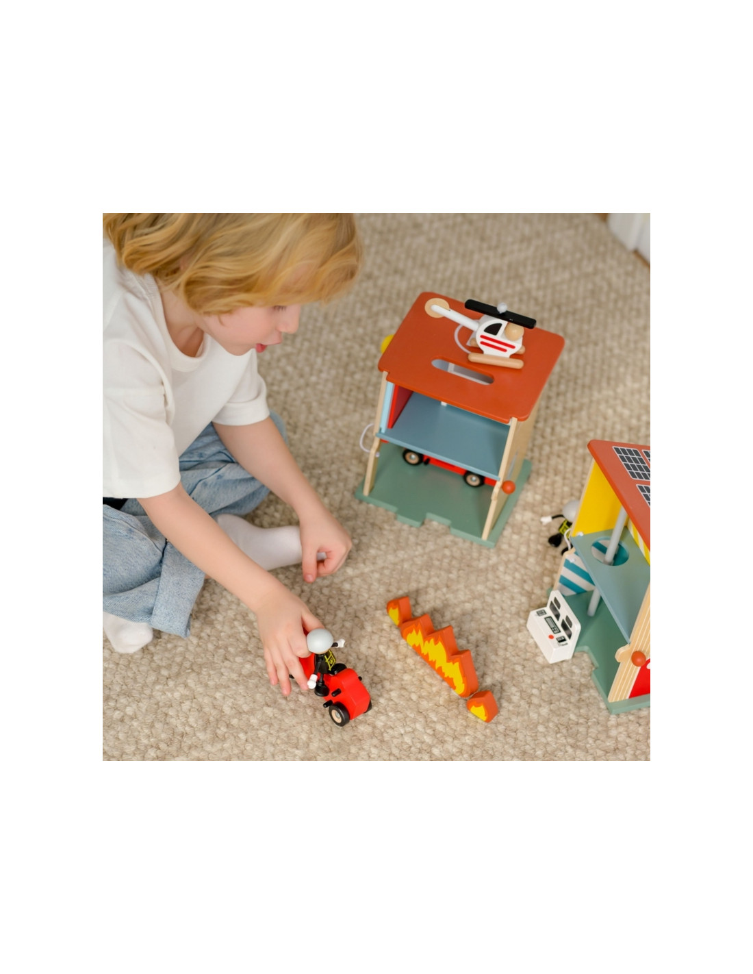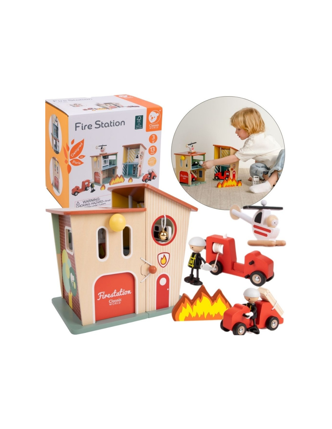 The Classic World Fire Station 13-piece set is a wonderful toy that will transport your child to the world of heroic firefighters and exciting rescue operations! Made of natural wood , this set impresses with its quality and attention to detail. The fire station was designed in Paris , guaranteeing its unique style and functionality. Thanks to its various configurations and open doors, children can freely manipulate the elements, creating their own scenarios. This toy is ideal for developing imagination, language skills, and fine motor skills, providing hours of creative play.