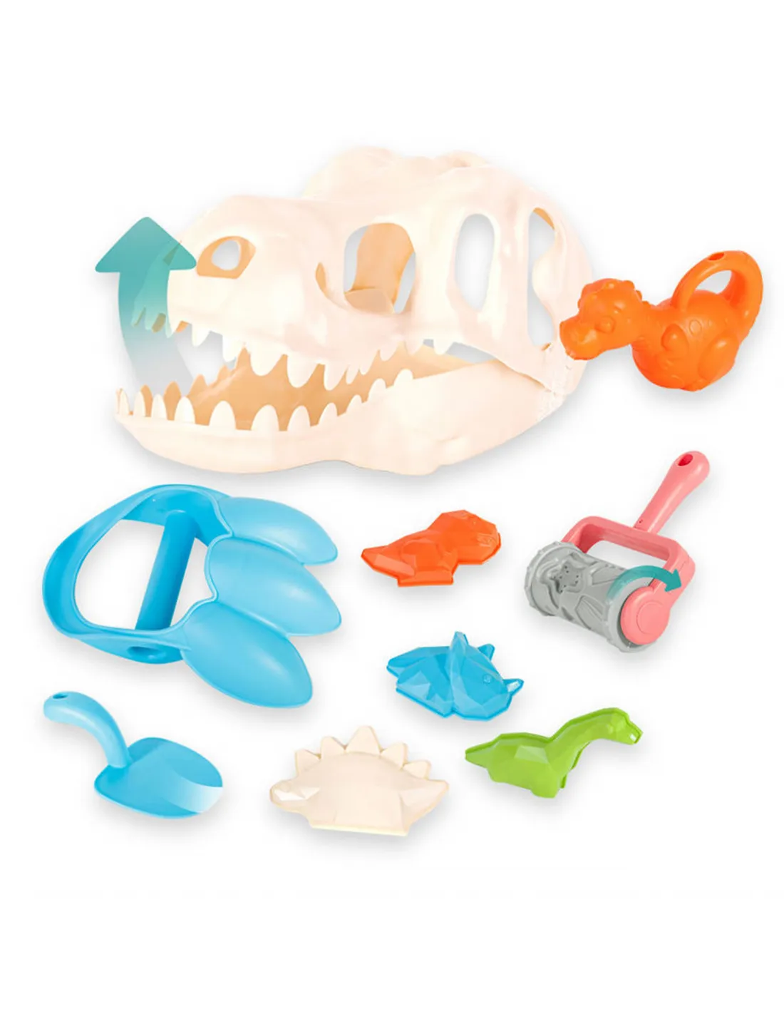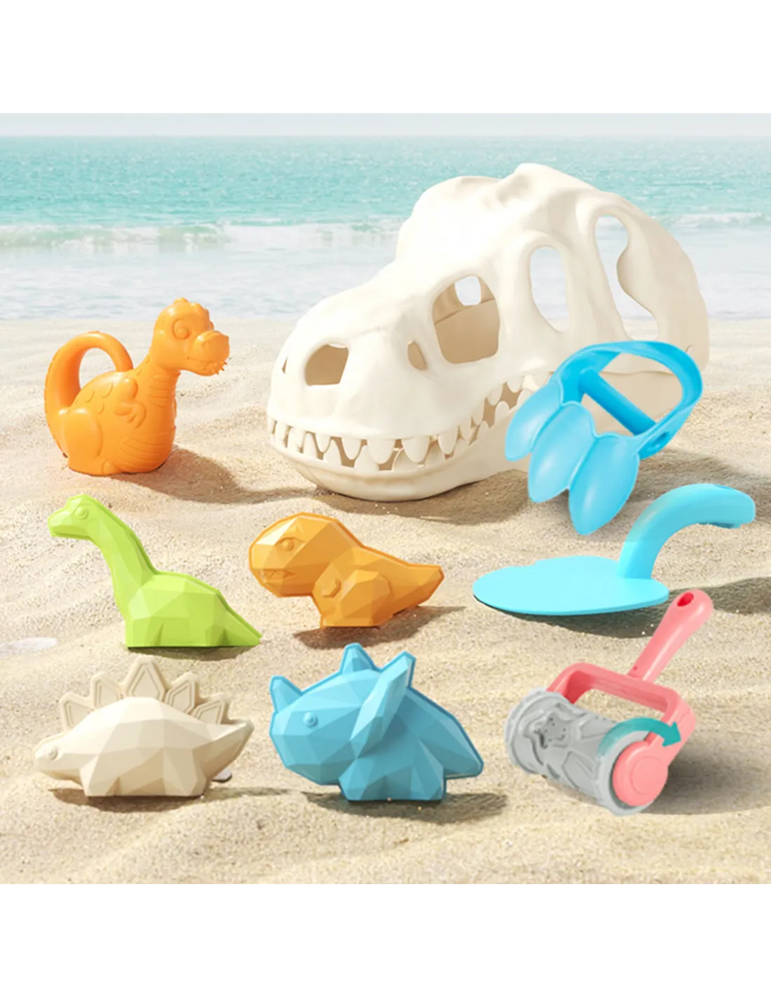 The Dinosaur Sand Excavation Set from WOOPIE is a great addition to any sandbox or even garden. The set includes 9 pieces : a dinosaur skull, 4 molds, a shovel, sand claws, a watering can, and a roller. The toys are designed with a dinosaur theme and can be used to play little archaeologists . Guaranteed fun in the sandbox , on the beach , or even in the garden ! This eco-friendly product!