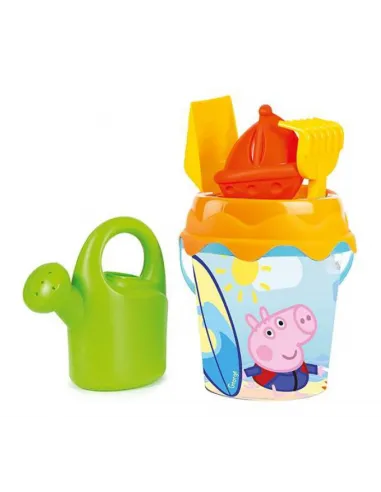 This Peppa Pig sand set from Smoby is a great addition to any sandbox. The set includes a bucket decorated with George's image, a strainer that also serves as a lid, a shovel , a watering can , a rake , and a red boat . The bucket lid has special holes for inserting the rake and shovel .