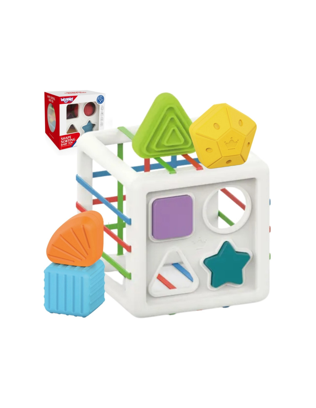 WOOPIE BABY Flexible Sensory Cube Baby Sorter Colorful Shapes 11 el.