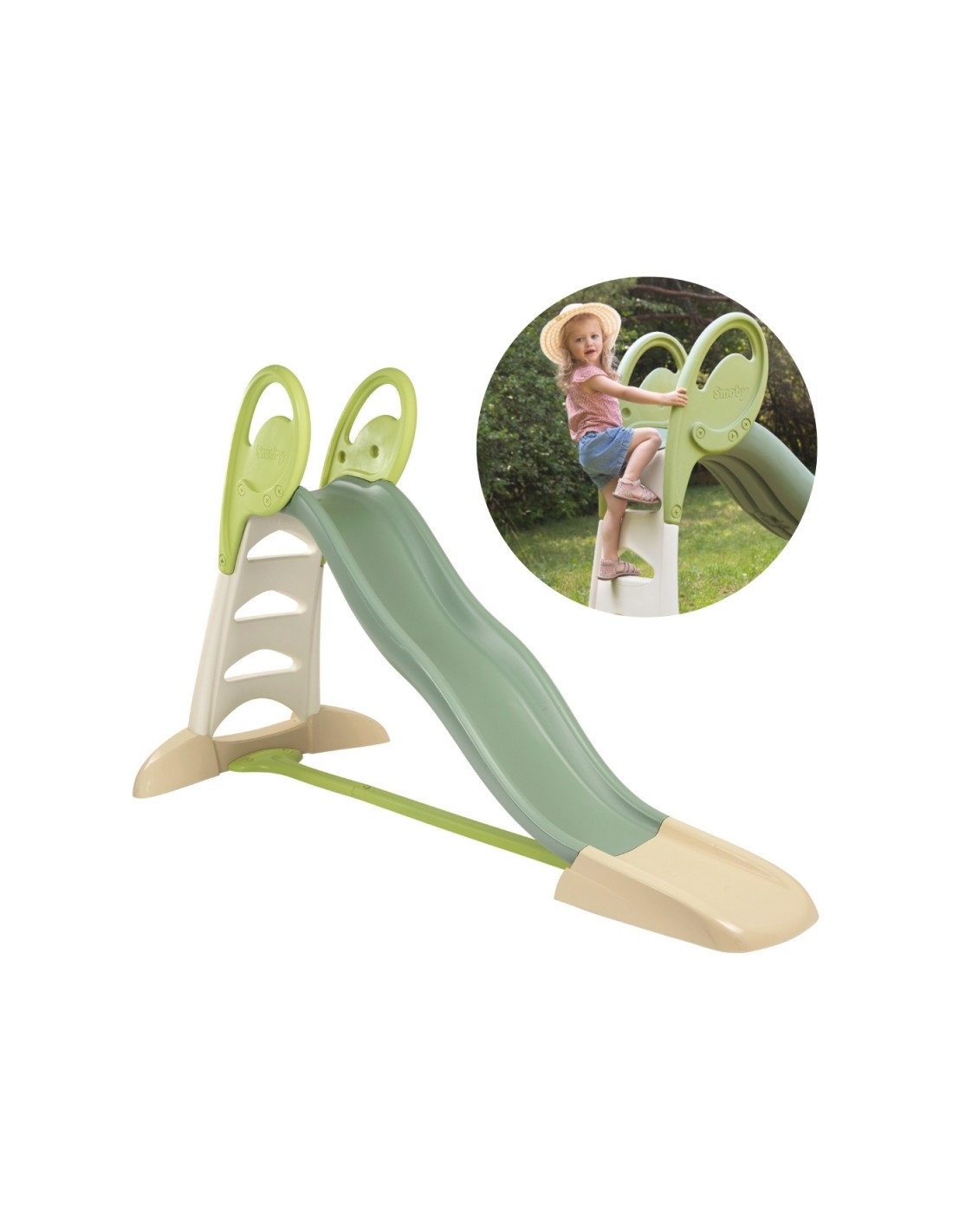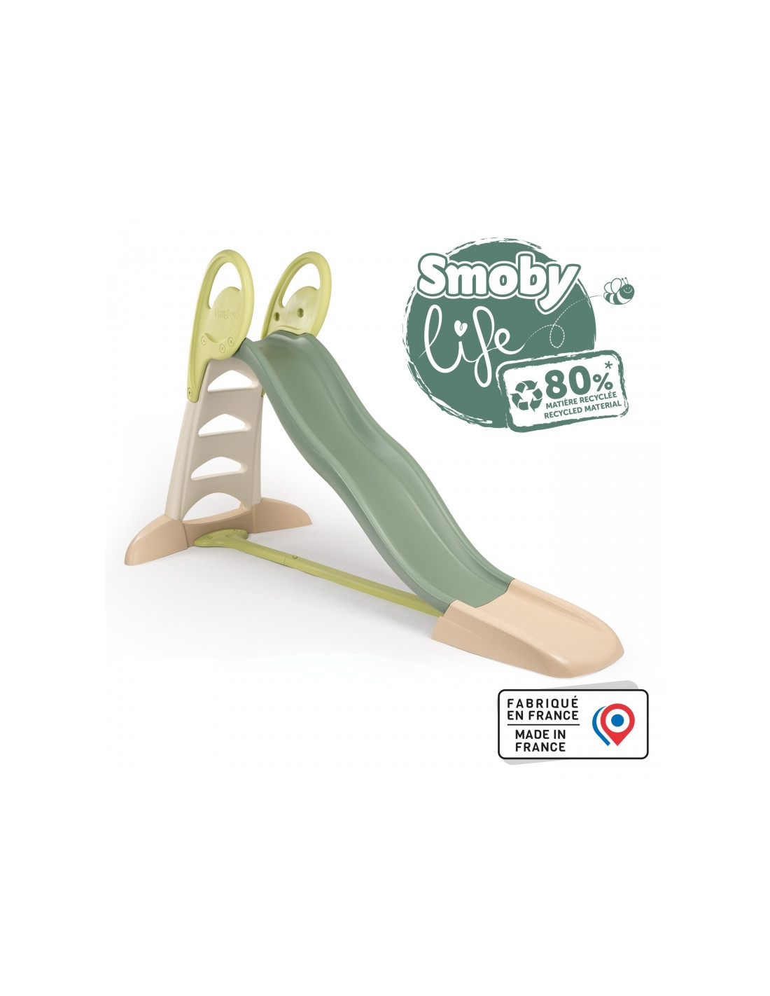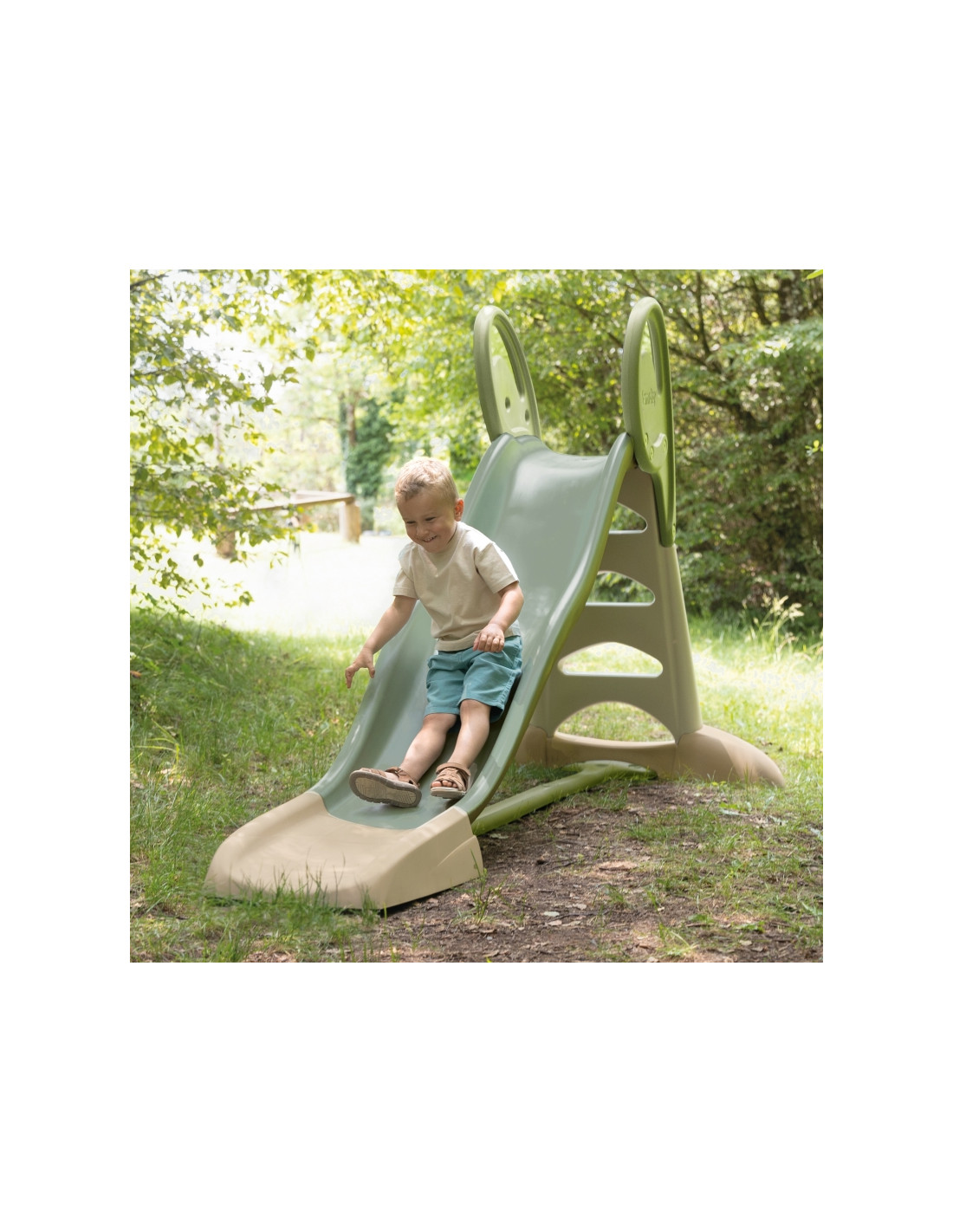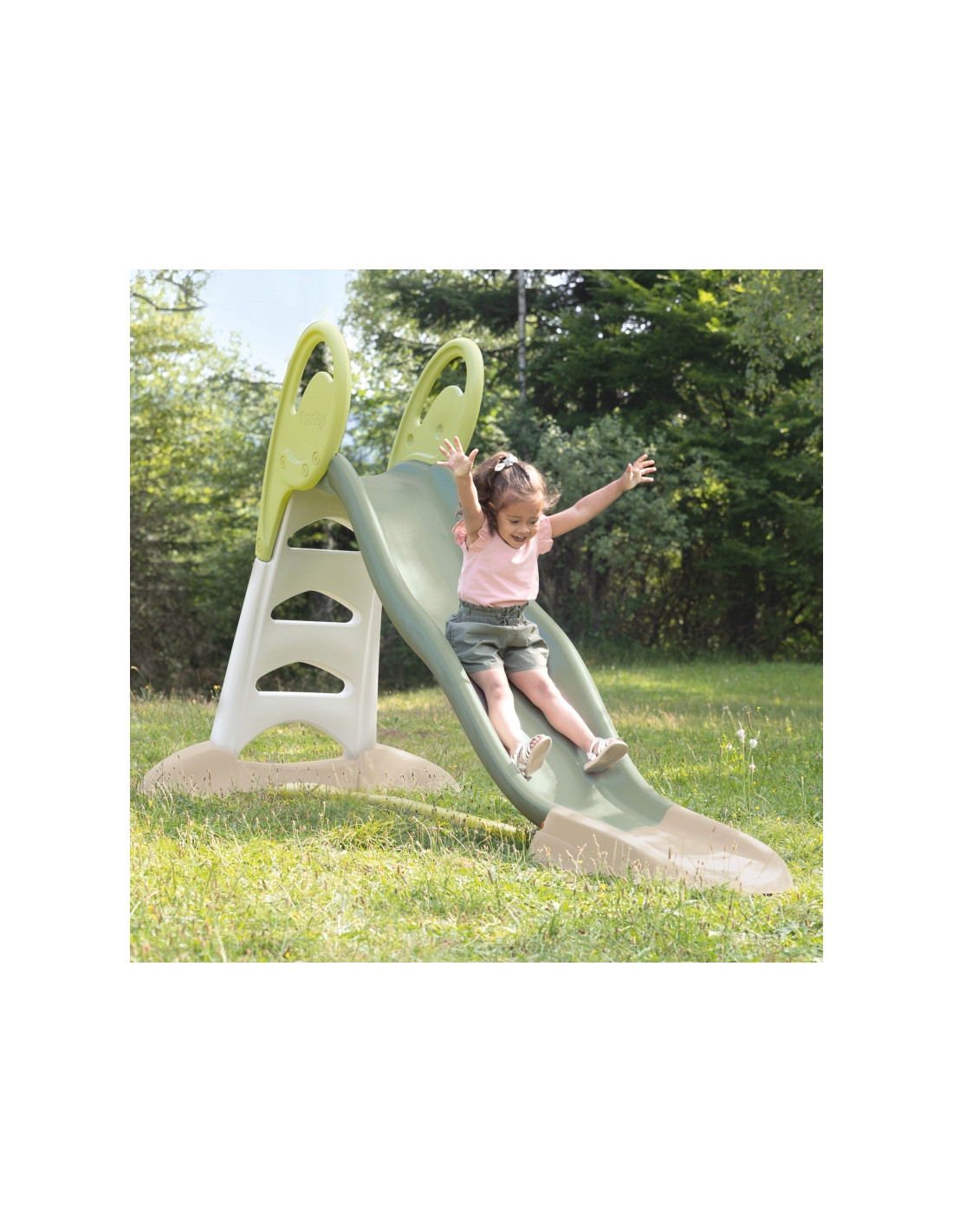 Bring childlike joy to your garden with the Smoby Life XL Slide (230 cm slide)! This exceptionally long and sturdy slide offers incredible descents of up to 230 cm, guaranteeing a truly exhilarating outdoor experience. Connecting a garden hose adds water fun to the slide on warmer days. Safety is ensured: a non-slip ladder, handrails, and a wide, stable base create a secure playing environment. All this in subdued, elegant colors and with an eco-responsible spirit—a great choice for active children aged 3 and up.