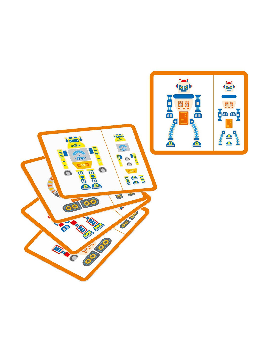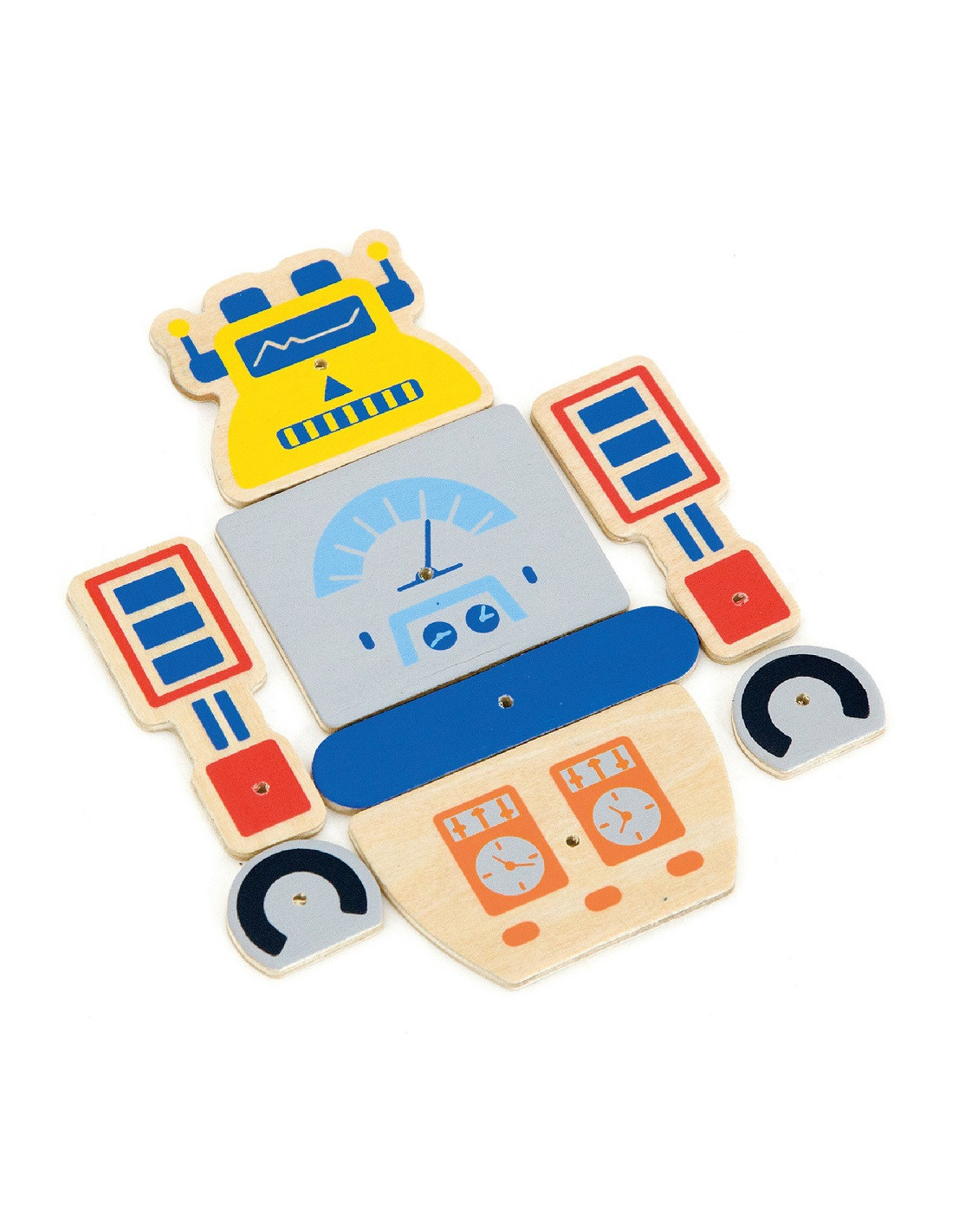 - - 45 colorful wooden elements of different shapes (robot parts).