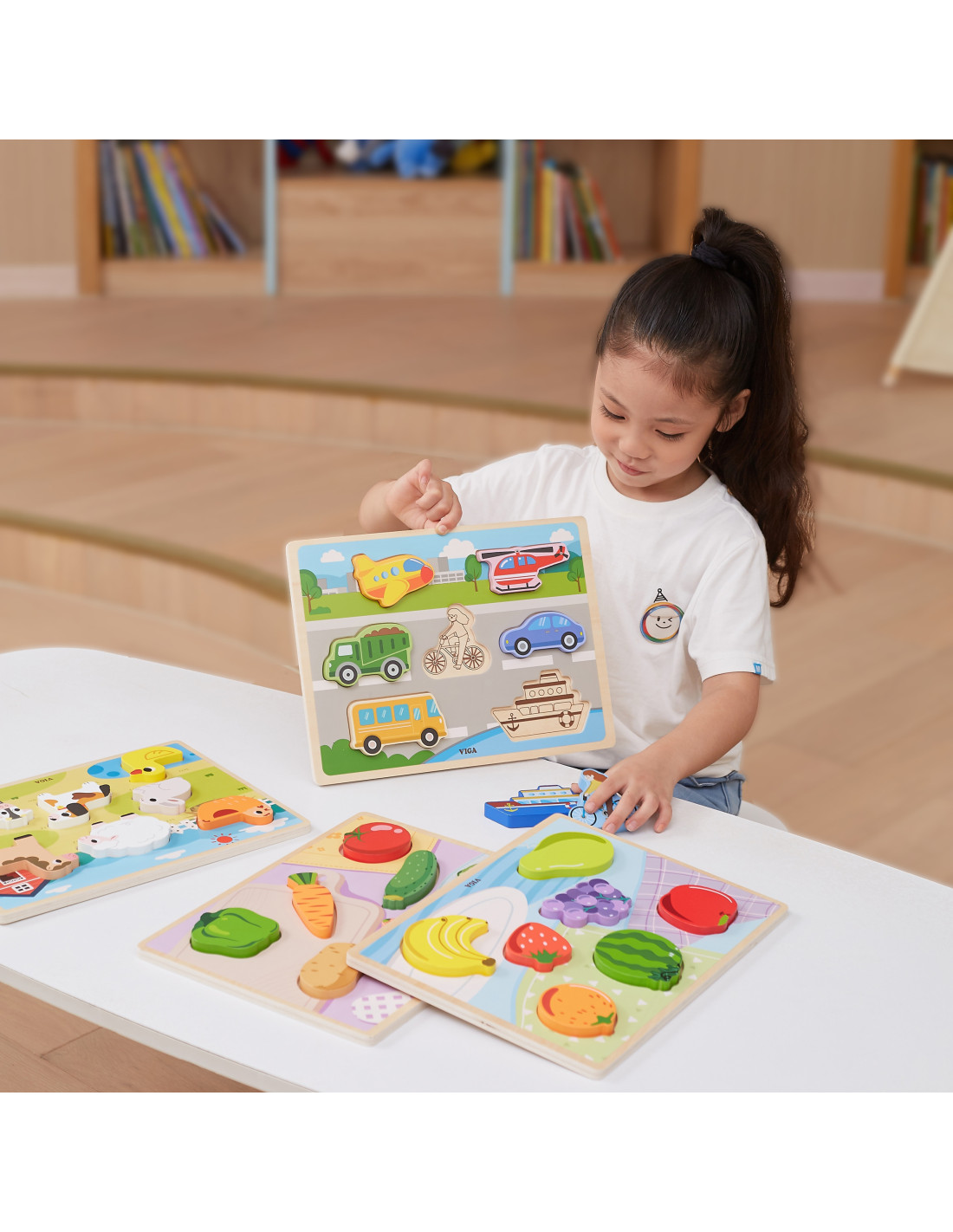 VIGA Wooden Puzzle Montessori 2-in-1 Figures Farm