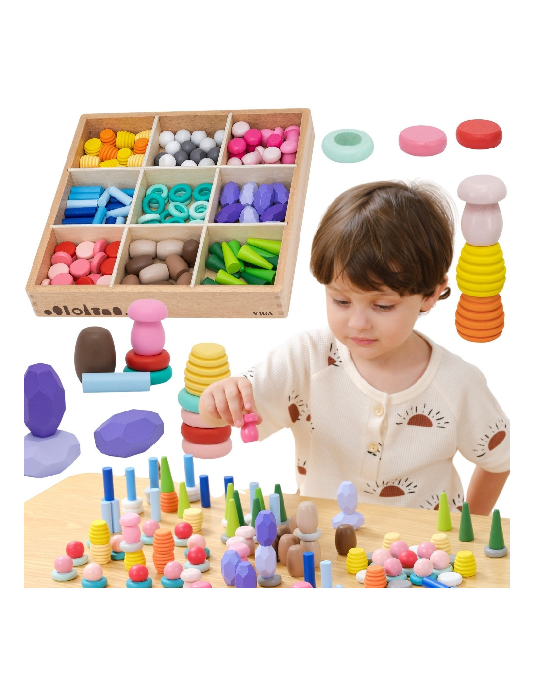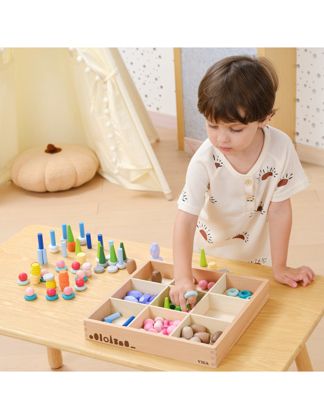 VIGA Wooden Educational Blocks Montesori Puzzle 141 pcs.