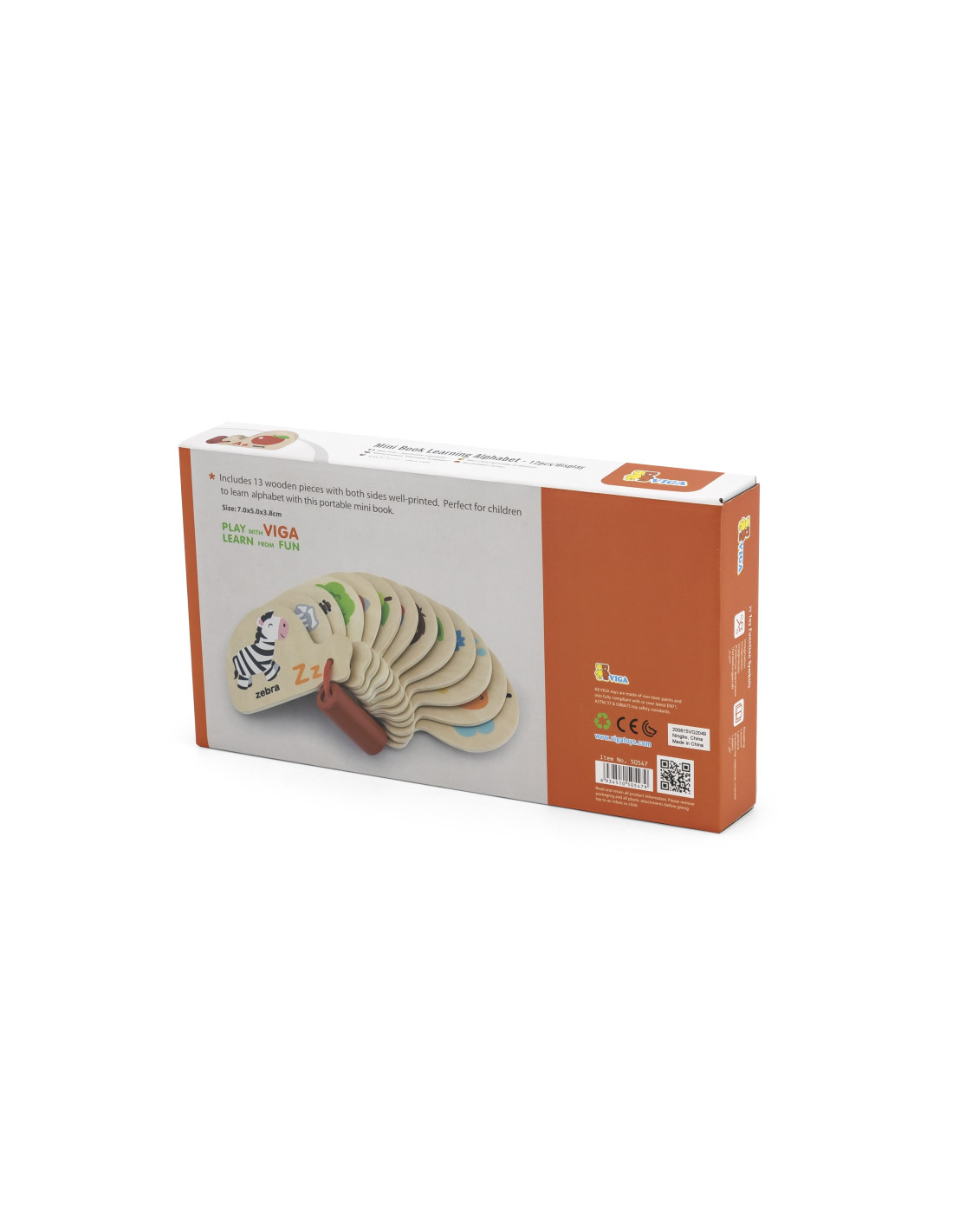 This alphabet learning set, designed by the renowned wooden toy manufacturer Viga Toys for children aged 12 months and up , is a great idea for preschool and home use. The wooden cards are connected with a red string. Each card features a different picture, a letter, and the full name of the element depicted in English. This toy teaches children letters, helps develop small hand movements , and also helps them learn their first words in English.