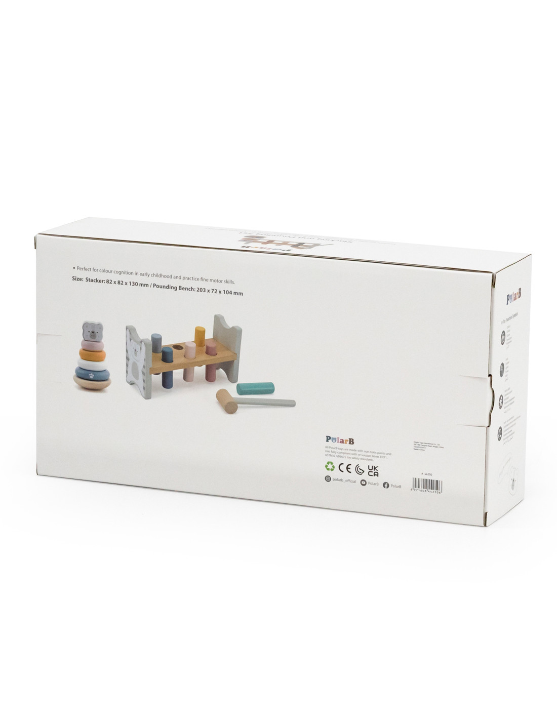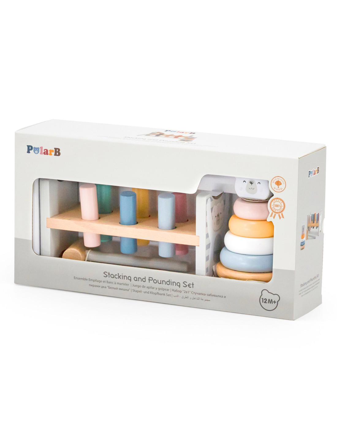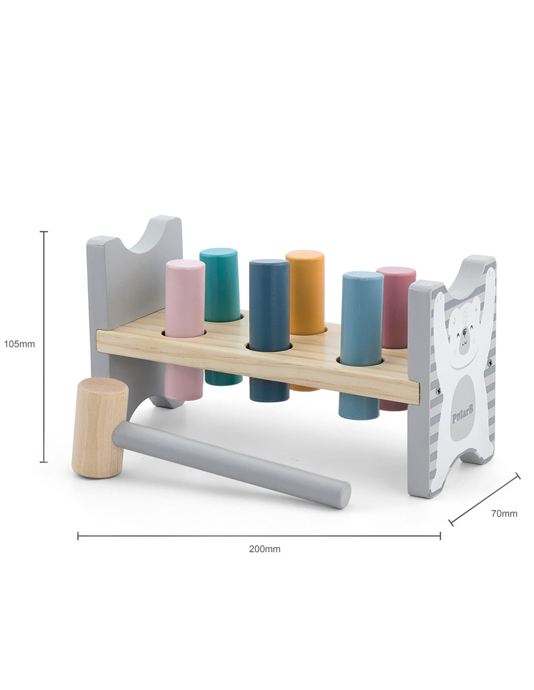 This set from the PolarB series by Viga includes two pastel wooden toys: an educational pyramid and a hammer and punch. Both toys will not only keep your child entertained but will also contribute to the development of fine motor skills , logical thinking , and learning colors . Spending time with these toys will help your child develop precise hand movements, which will facilitate learning to write later.