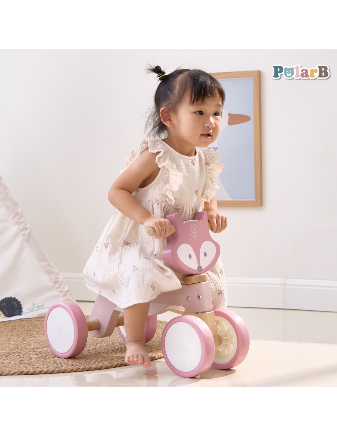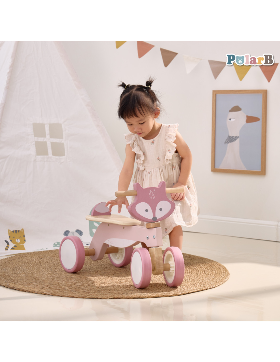 The PolarB Fox Wooden Ride-On is an adorable toy from VIGA . It's the perfect vehicle for children to develop muscle strength and motor coordination while playing. This pastel-colored fox-shaped ride-on will encourage your little one to be physically active and explore the world. This colorful vehicle is a fantastic toy that will provide your little one with hours of joyful play.