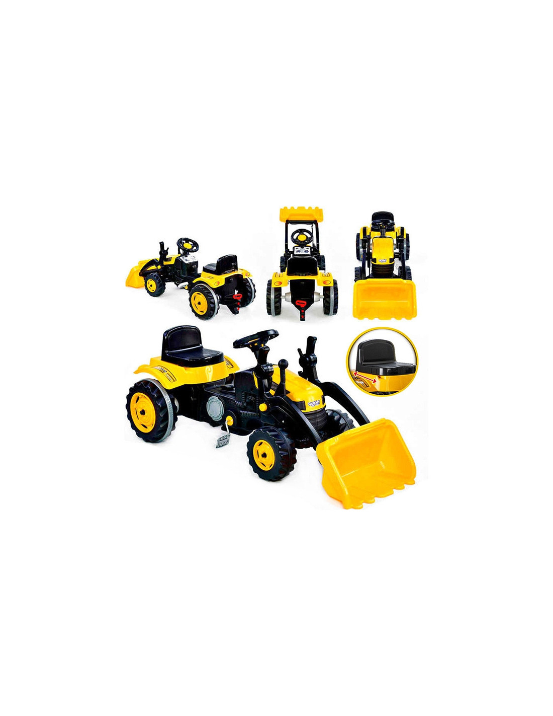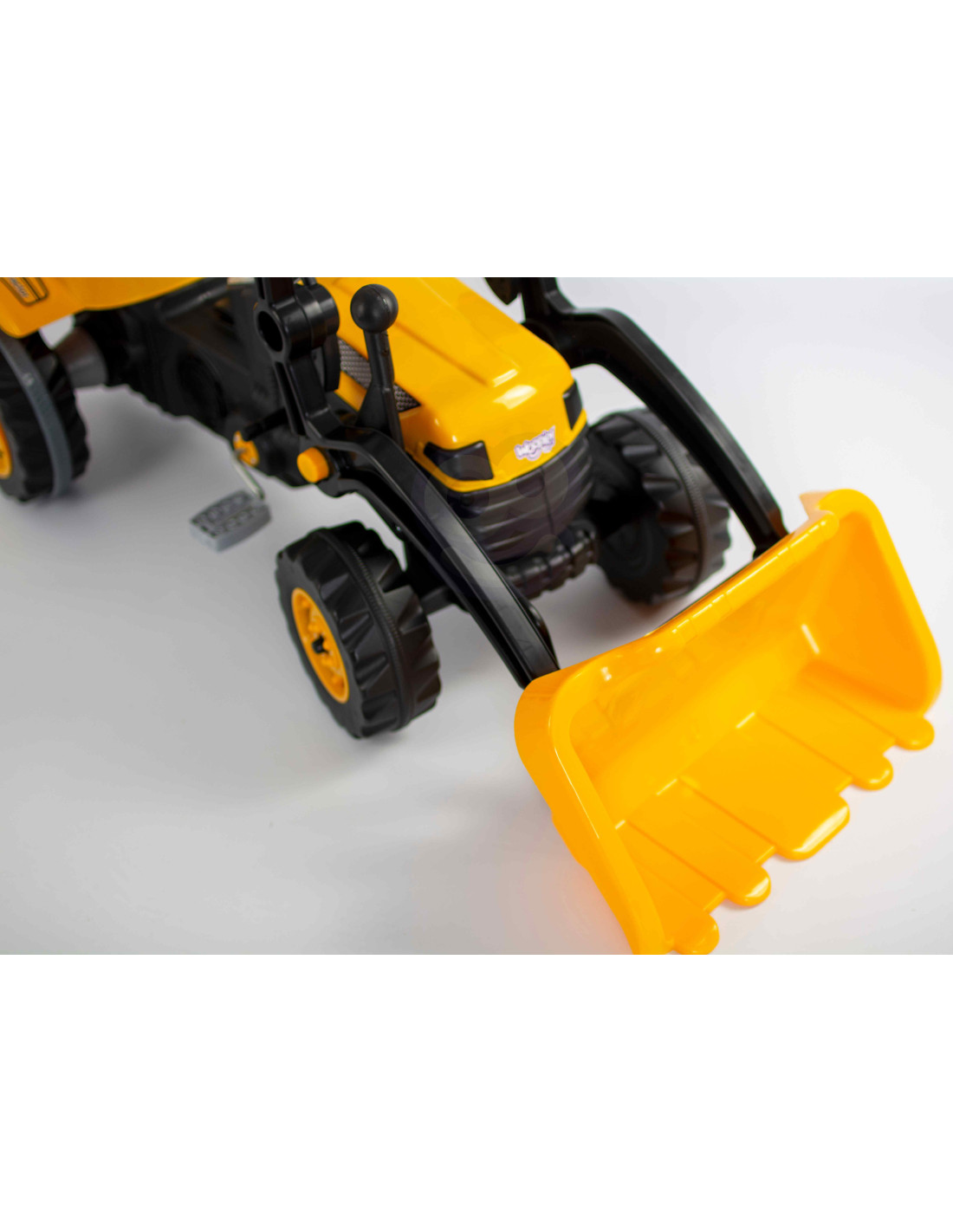 This yellow pedal tractor with a toy truck is the perfect introduction to pedal vehicles. It will teach little ones how to propel the machine and how to steer it to reach their destination! An additional attraction is the bulldozer function . Children can load their favorite toys onto the bucket and take them with them on the go. The product is made of the highest quality , environmentally friendly materials, completely safe for children's health .