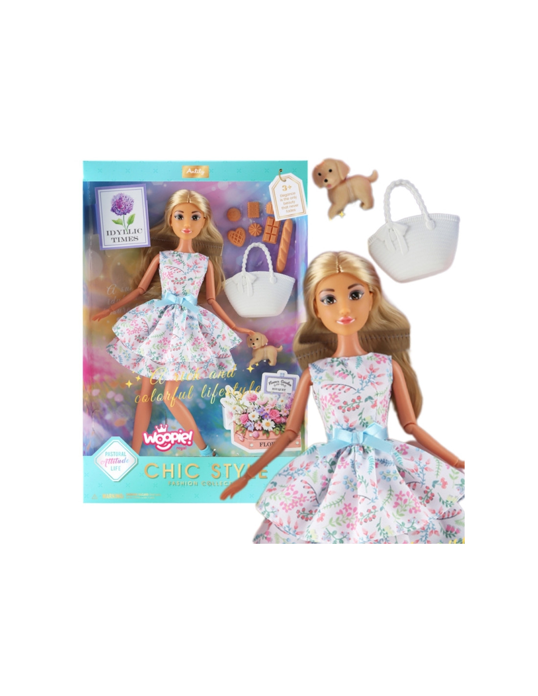 WOOPIE ROYAL Lily lėlė, pavasarinė suknelė, aksesuarai, šuniukas