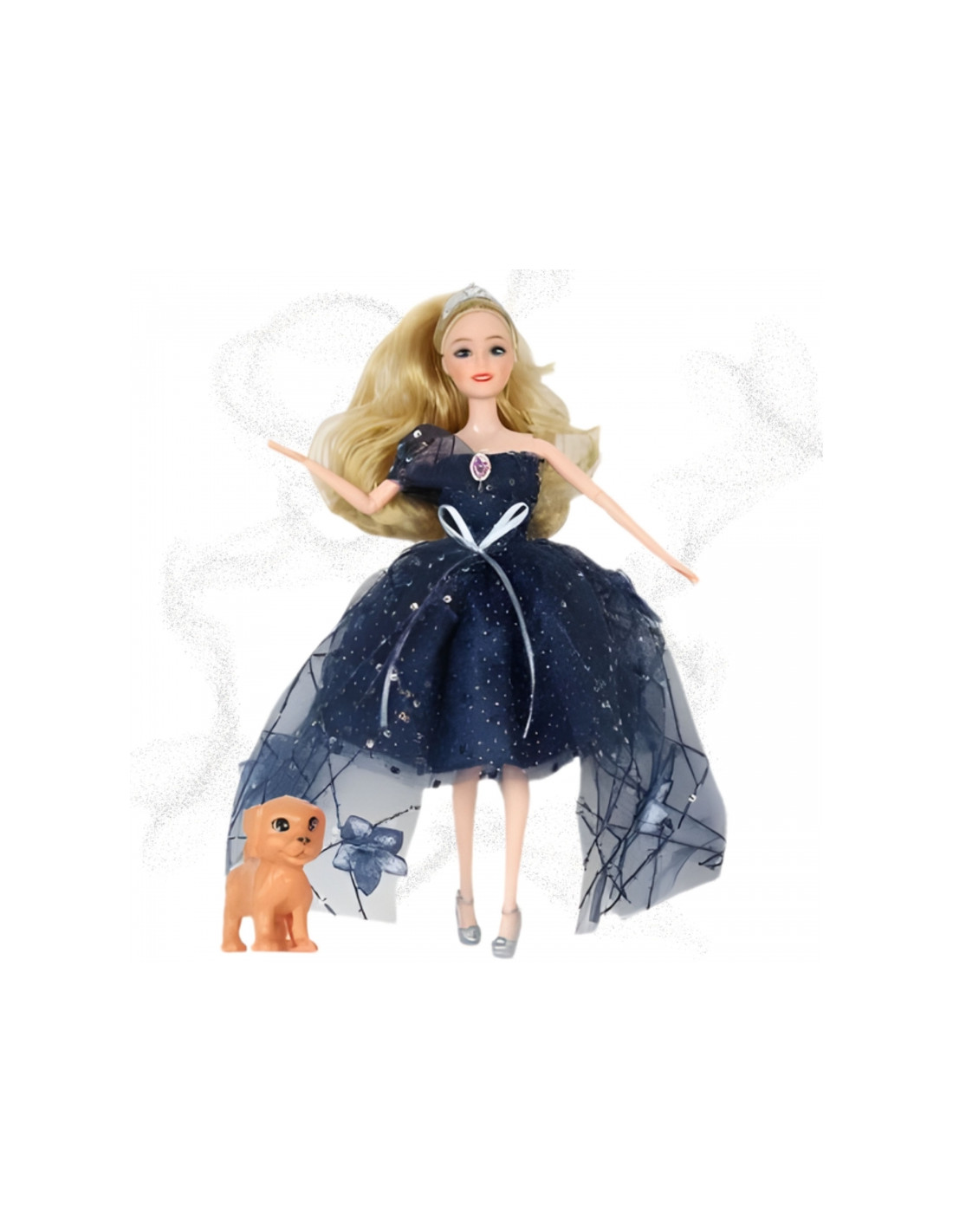 - - Stylish and elegant doll in a beautiful navy blue dress with a sheen