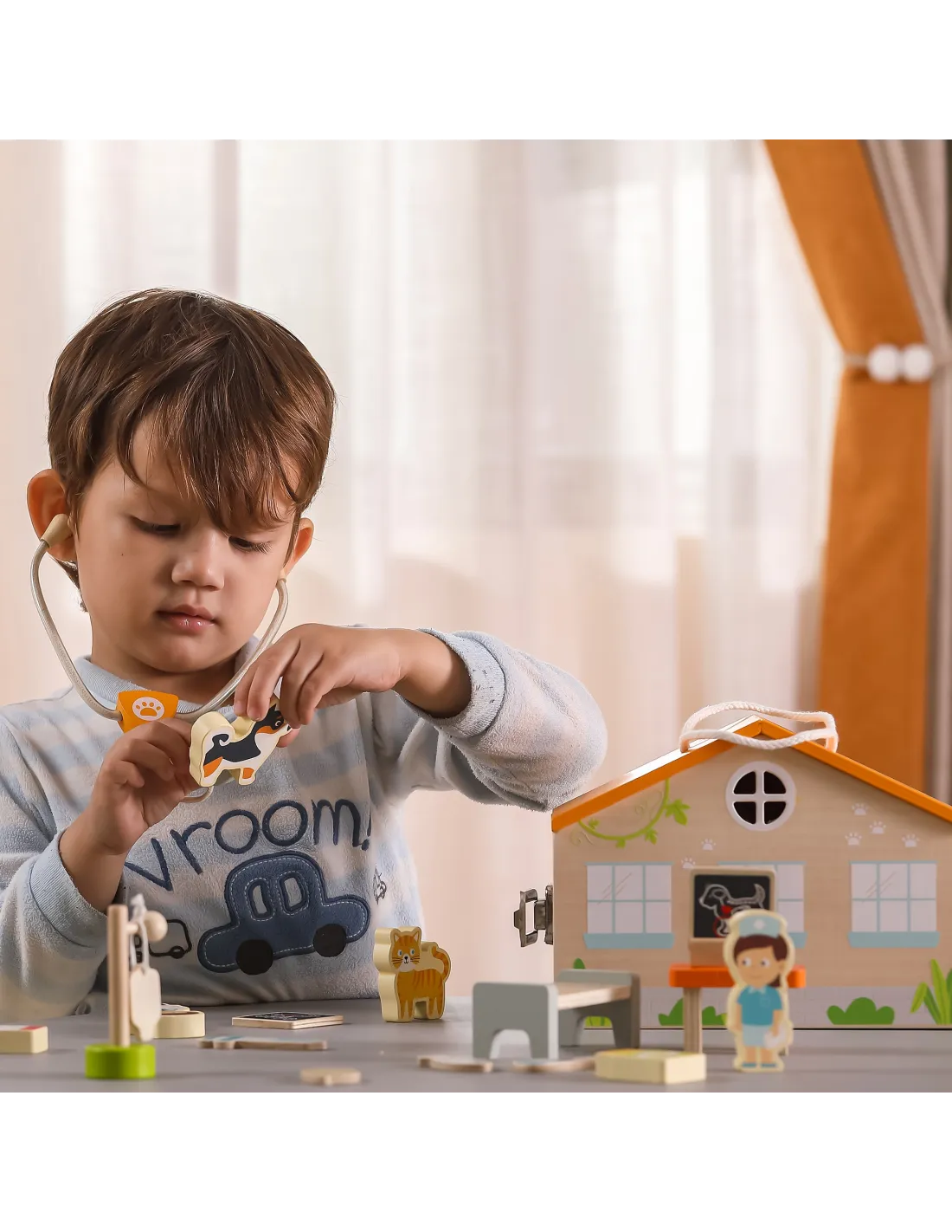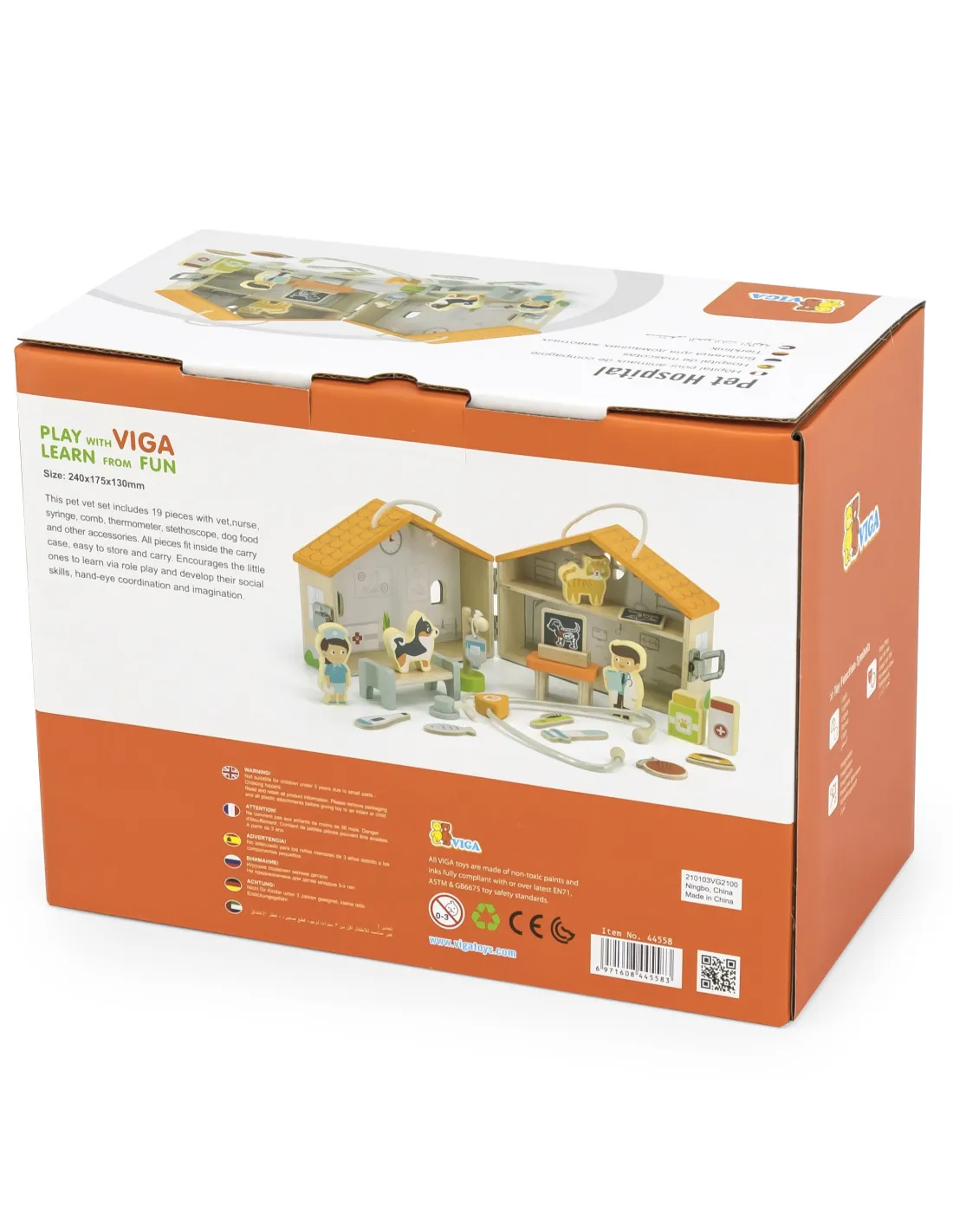 The colorful wooden Animal Clinic in a Suitcase from Viga is one of the leading toys that will allow your child to enter a world of interesting and creative play. This amazing set will spark your child's imagination, allowing your little one to take on the role of a veterinarian.