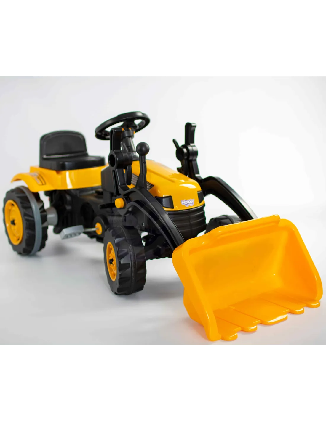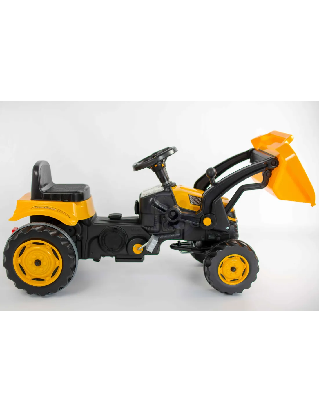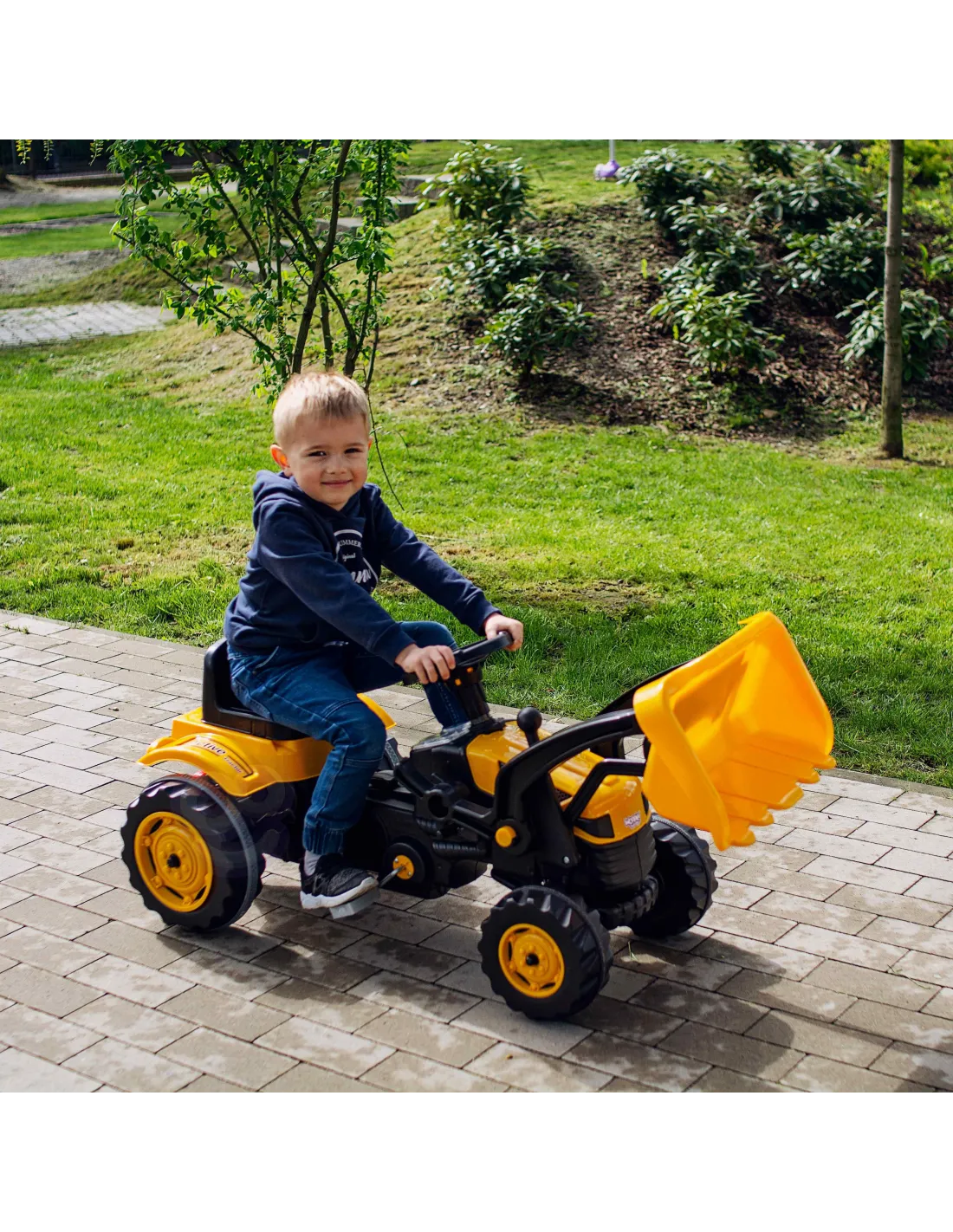 This yellow pedal tractor with a toy truck is the perfect introduction to pedal vehicles. It will teach little ones how to propel the machine and how to steer it to reach their destination! An additional attraction is the bulldozer function . Children can load their favorite toys onto the bucket and take them with them on the go. The product is made of the highest quality , environmentally friendly materials, completely safe for children's health .