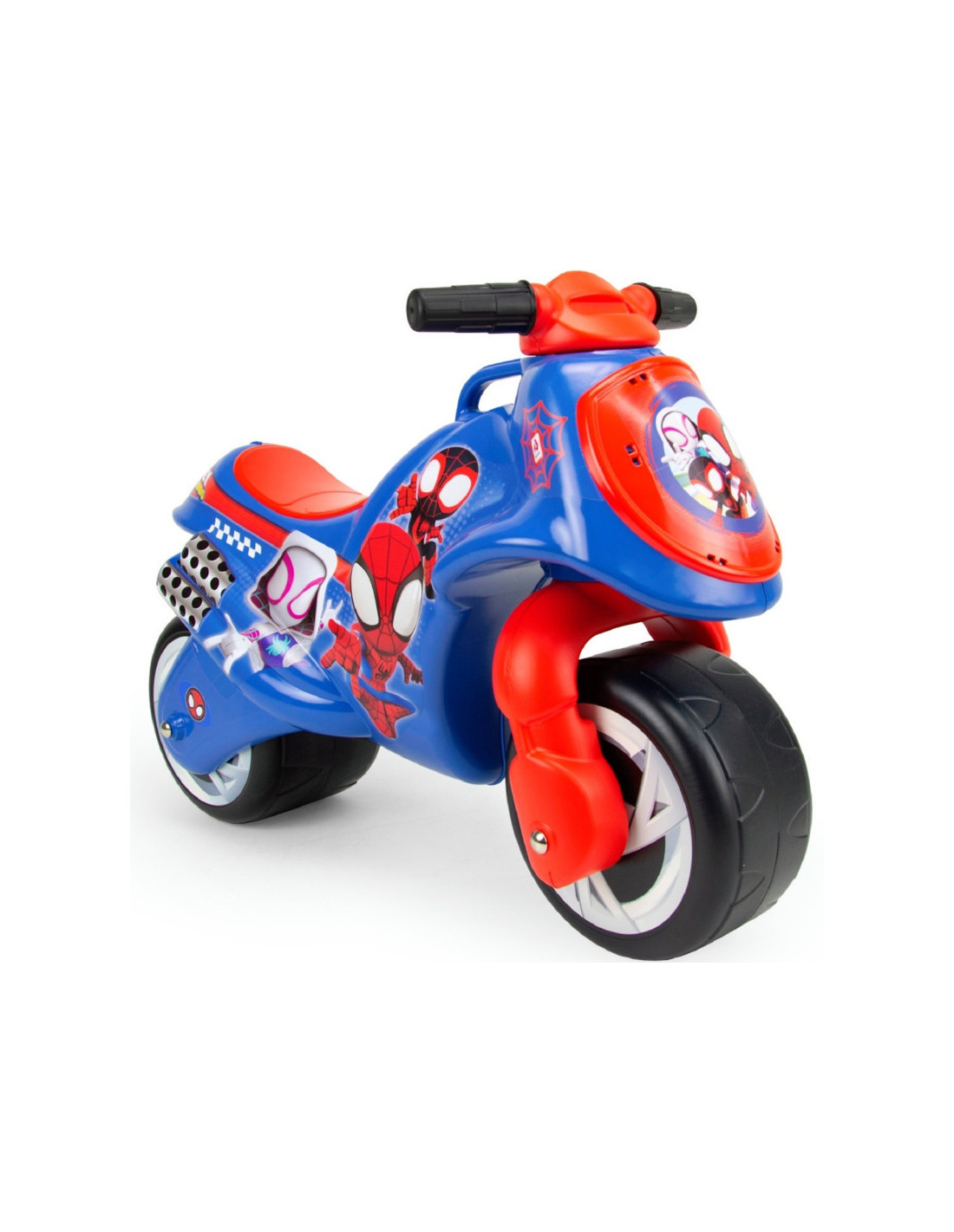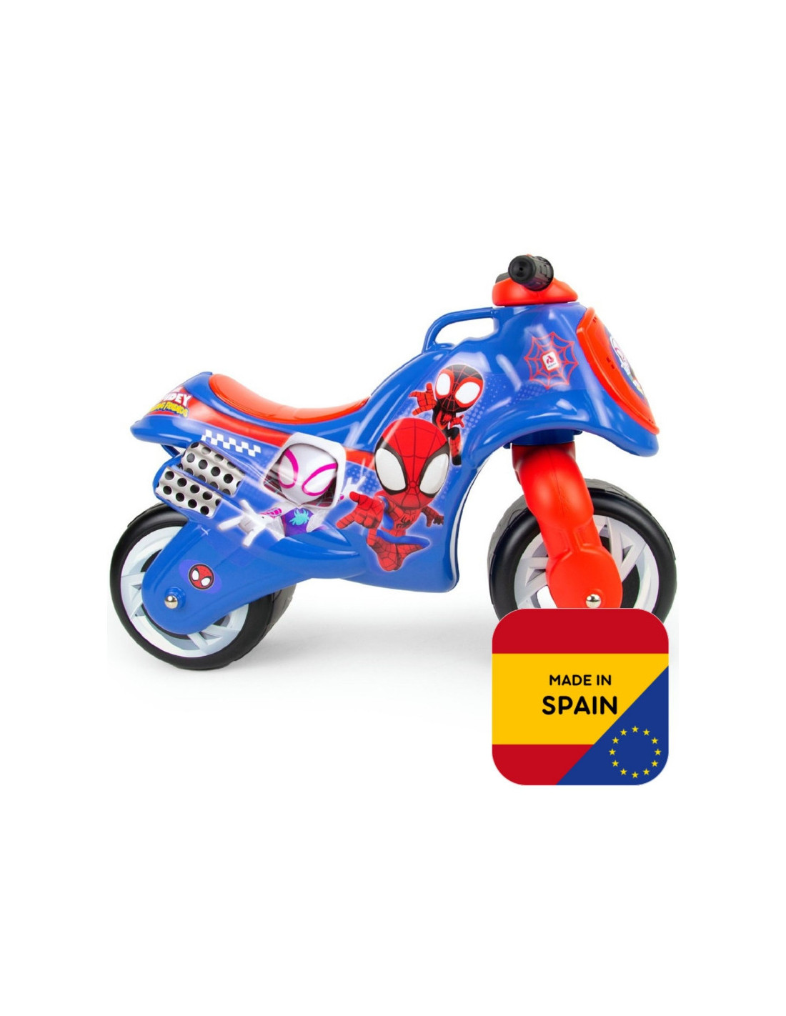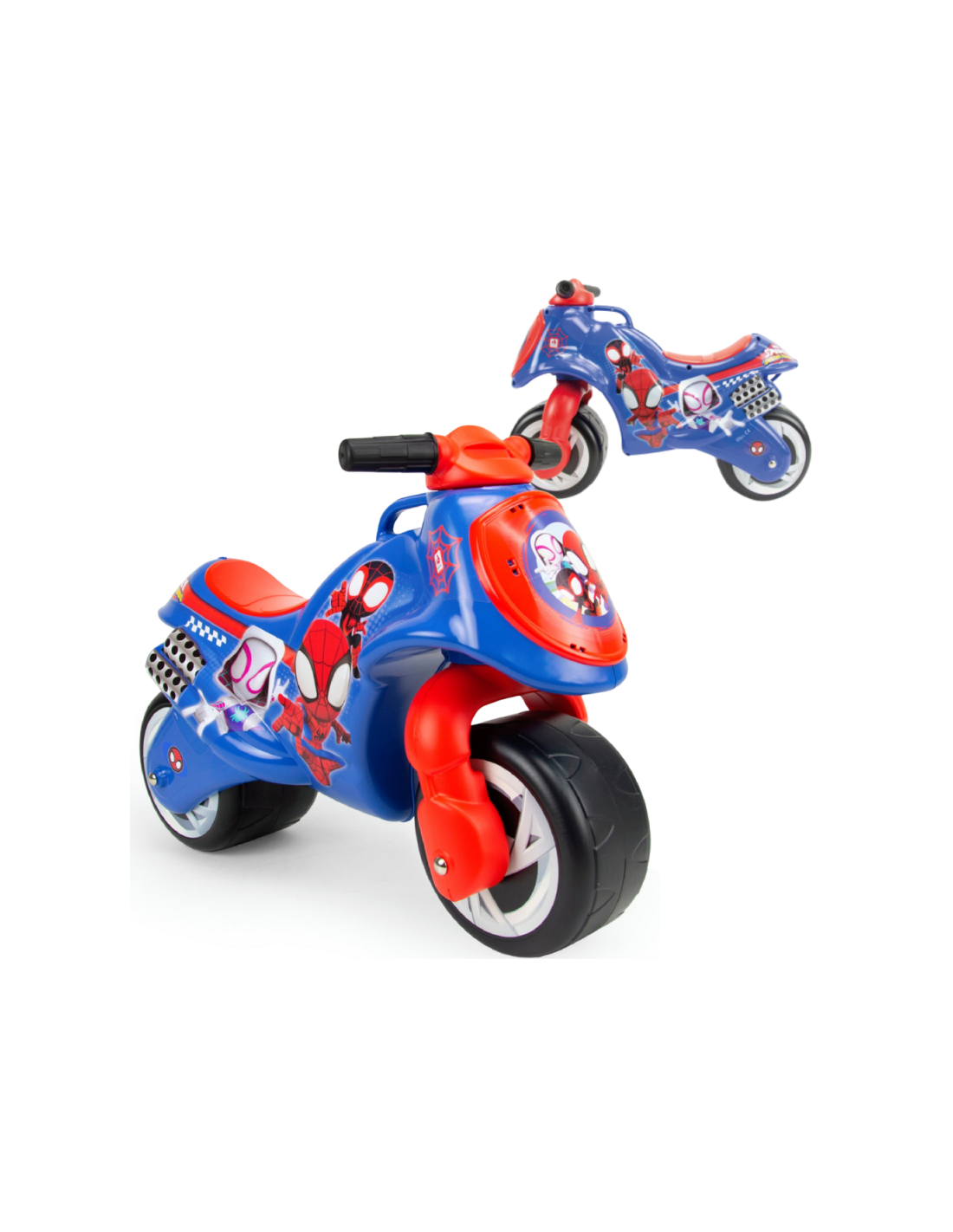 The Neox Spidey ride-on is an officially licensed Marvel Studios toy, with the original designs of the iconic superhero. Its decoration is waterproof and permanent, using the IML (Injection Mould Labelling) technique. Includes a carry handle for easy parental control.