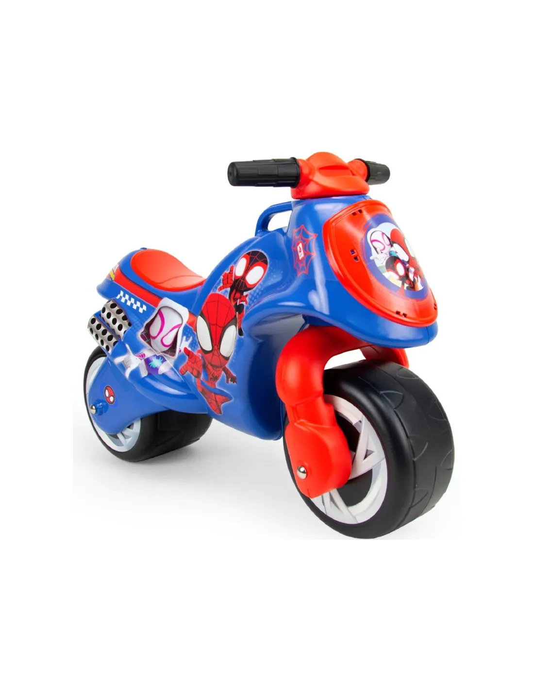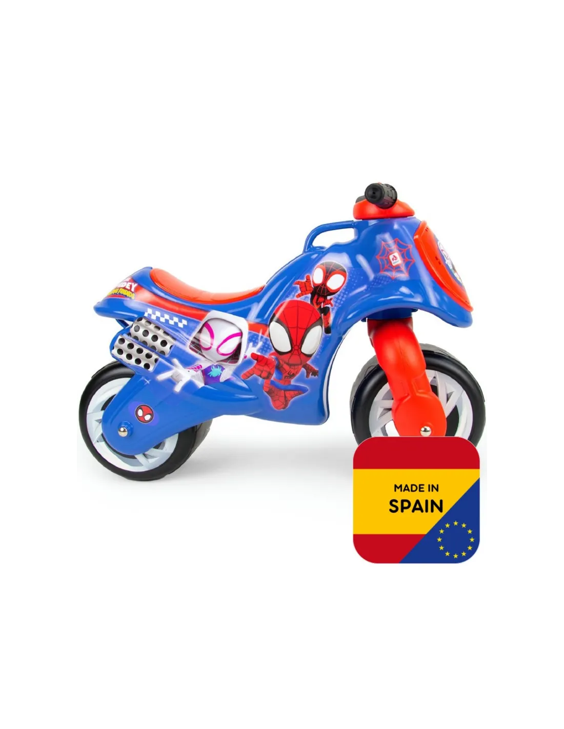 • - a blue and red Spider Man licensed motorcycle for children from 18 months of age,