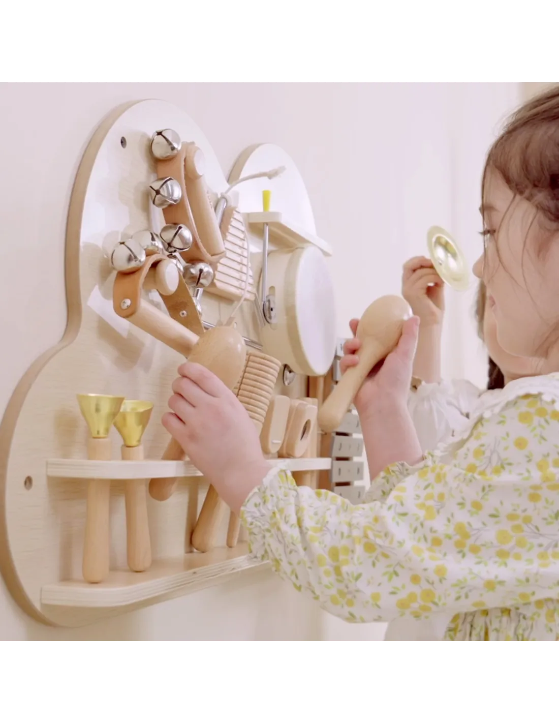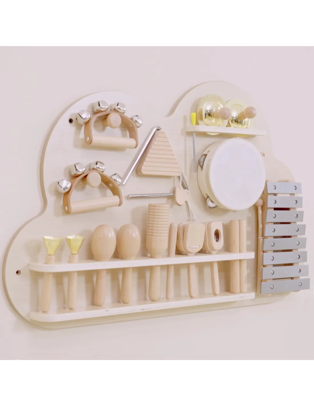 The Viga Music Board is a unique piece of equipment for any classroom. It allows children to freely experiment with 12 different instruments , fostering the development of auditory and musical abilities. The instruments hung on the board are easily accessible to children , encouraging active participation in musical education and stimulating comprehensive development.
