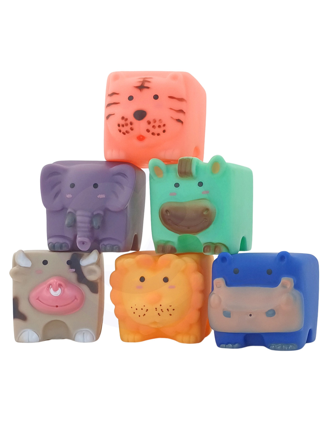 WOOPIE Sensory Blocks, a squeezable puzzle, will captivate every toddler. With their interesting shapes, colors, and the ability to make sounds when squeezed, they perfectly stimulate the development of visual-auditory coordination, fine motor skills , and tactile sensitivity. The blocks feature convex shapes depicting animals . They are soft and pleasant to the touch and produce sounds when squeezed. Thanks to their structure, they also work well as a teether . The animal images help children become familiar with the natural world. This product, with its beautiful, subdued colors, is suitable for children aged 12 months and over.