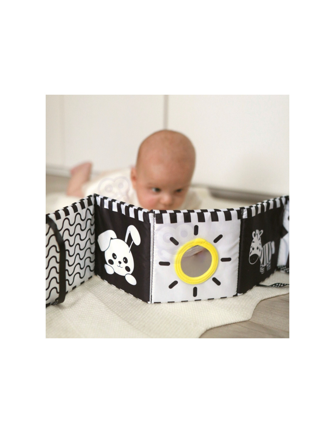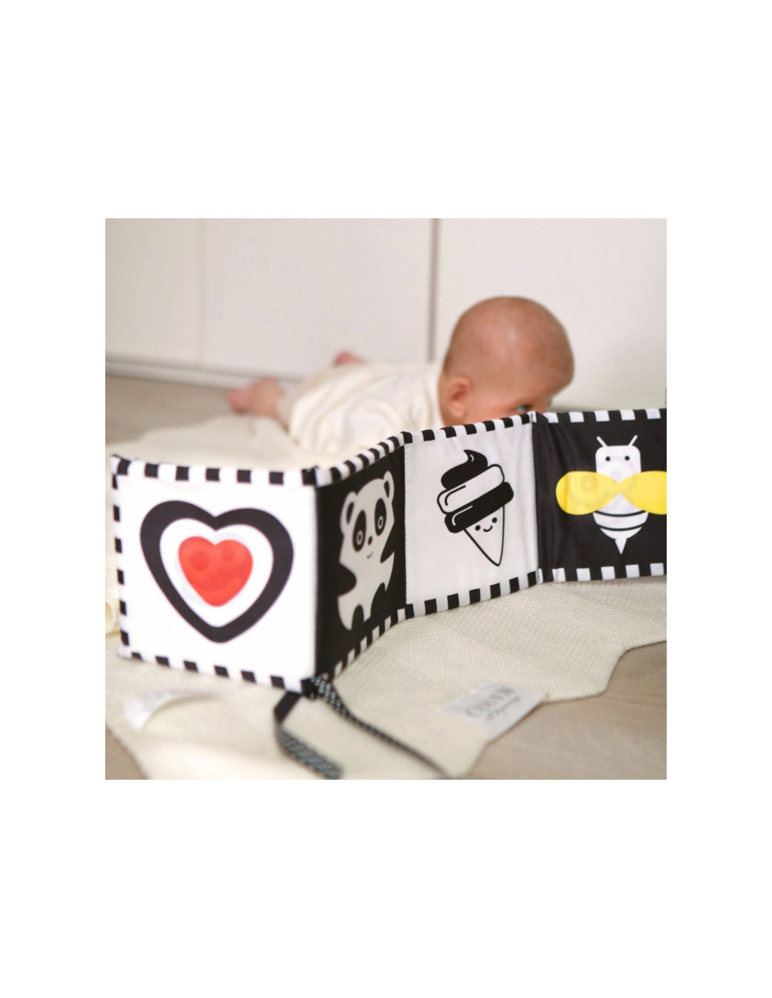 - - A soft, contrasting book with sound effects – develops sight, hearing and motor skills, encouraging play.