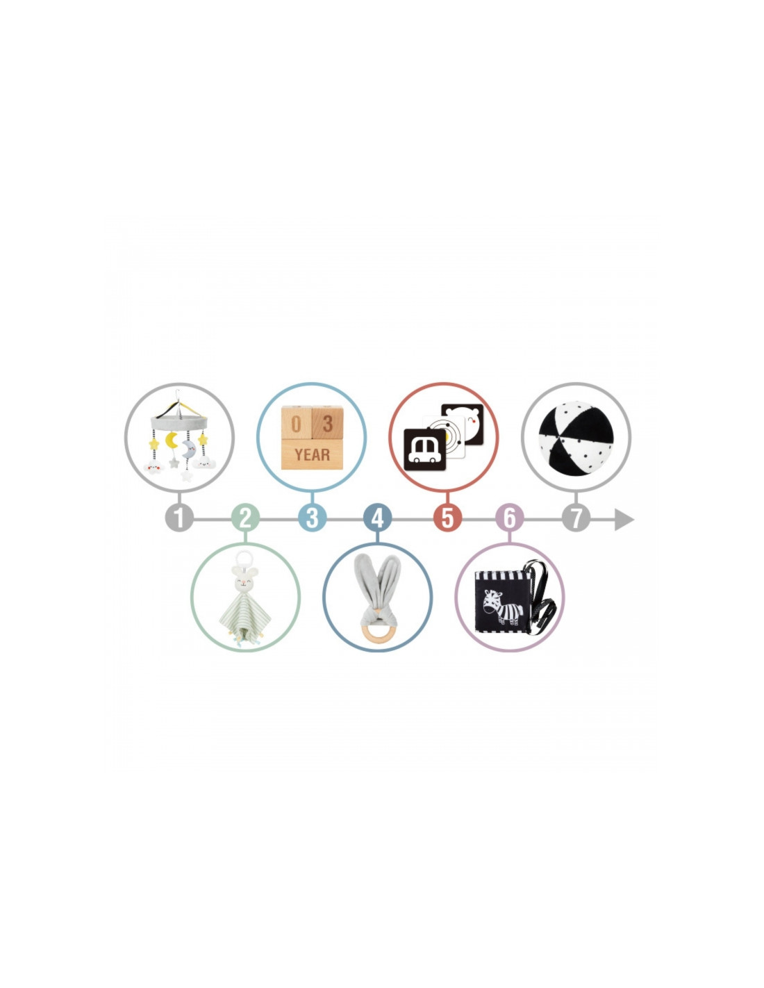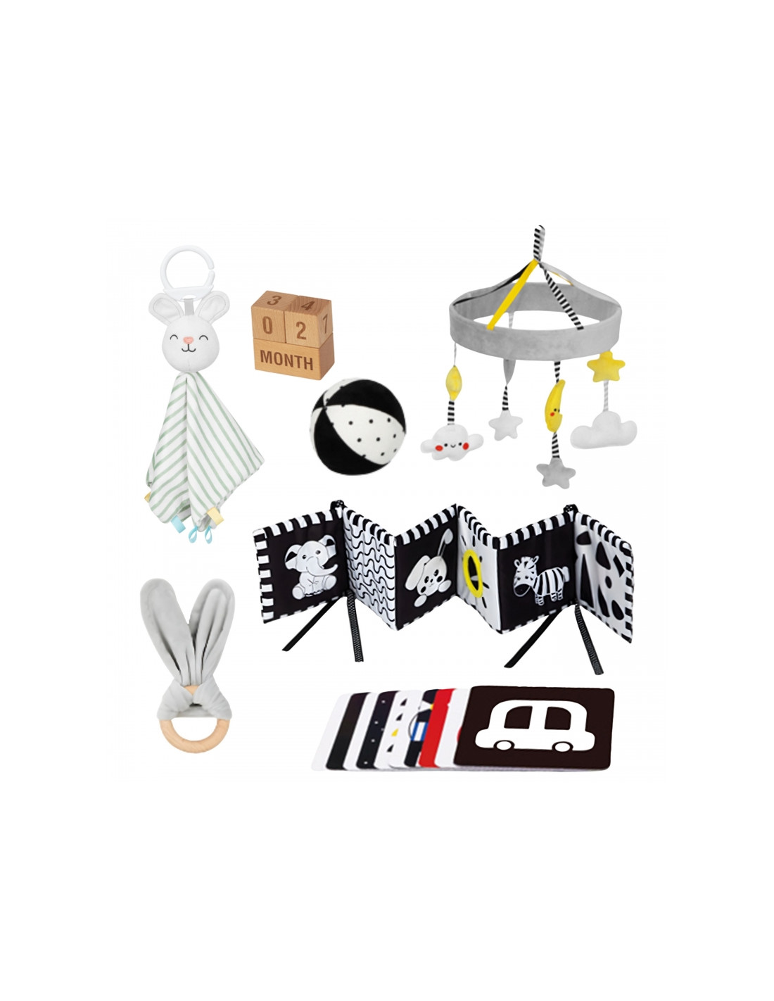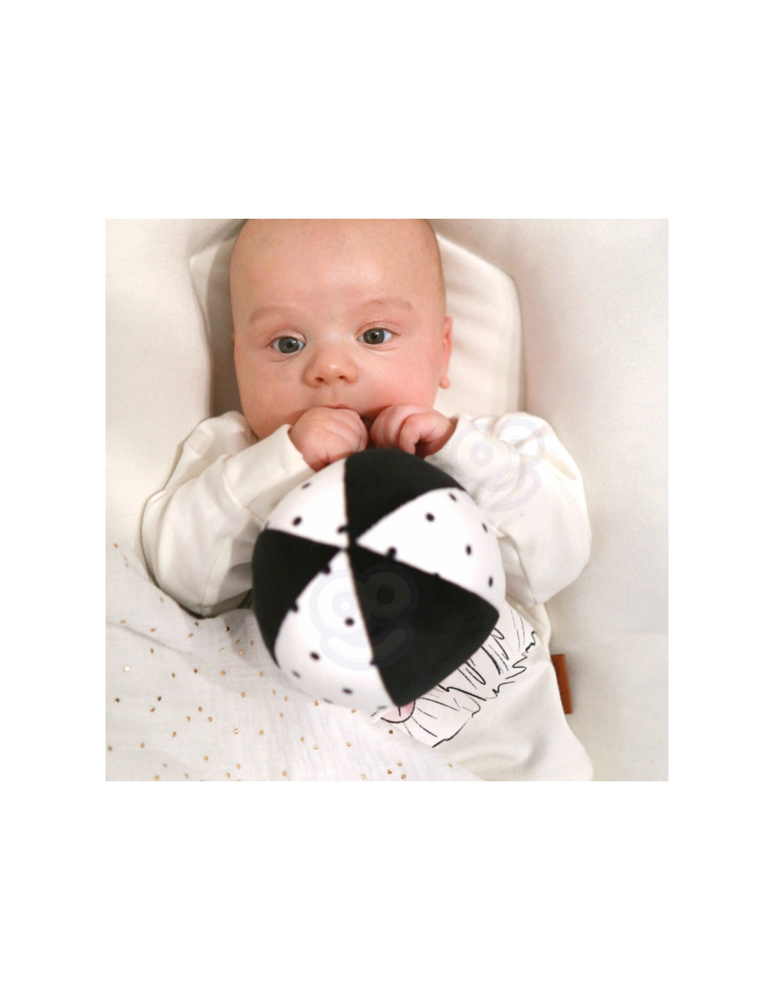 - - Contrast plush ball – exercises gripping, vision and motor skills while lying on the tummy.