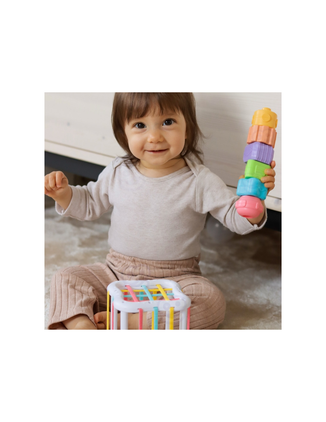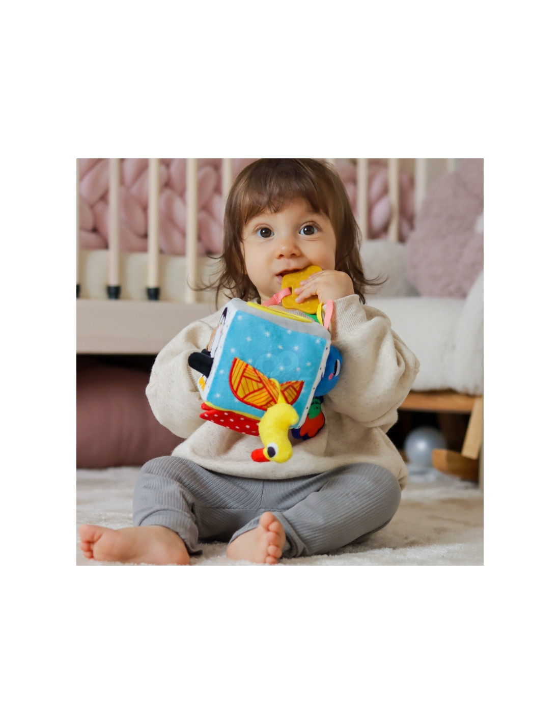 - - Flexible sensory cube with 6 colored blocks