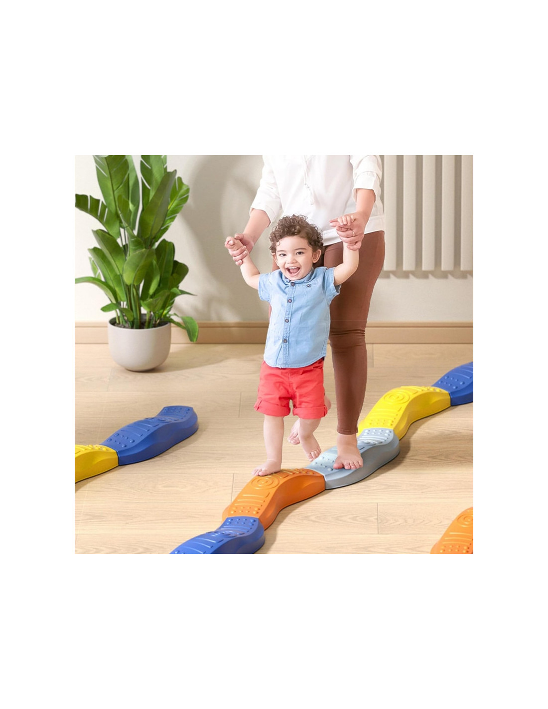 Įneškite aktyvumo ir vystymosi į savo vaiko pasaulį su „Woopie“ sensoriniu balansiniu ratuku Woopie Šis modulinis, apskritas takelis yra puikus būdas pagerinti pusiausvyrą, motorinę koordinaciją ir sensorinę integraciją. Įvairios sensorinės struktūros ir „bangų“ formos puikiai stimuliuoja pėdas, kartu palaikydamos raumenų vystymąsi ir taisyklingą laikyseną . Ryškios spalvos skatina žaisti, o galimybė kurti įvairias konfigūracijas (ratas, gyvatė, formos) užtikrina, kad žaidimas niekada netaps nuobodus. Puikiai tinka mankštai namuose, lauke ar ant bet kokio lygaus paviršiaus!