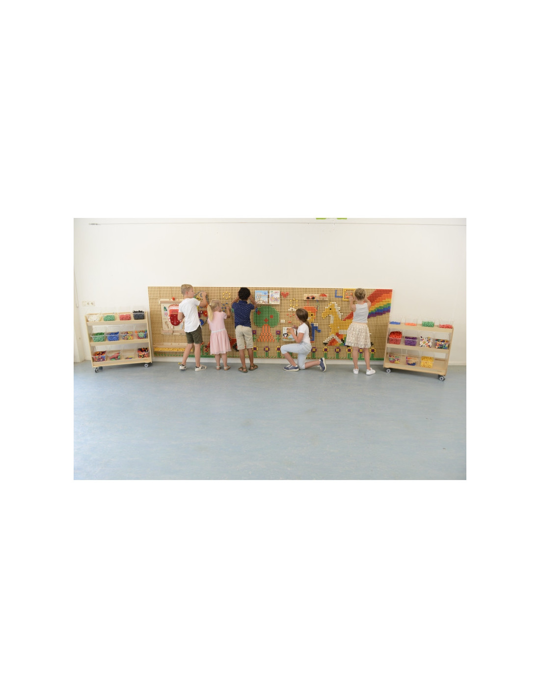 Masterkidz edukacinė STEM sieninė lenta leidžia kūrybiškai žaisti ir tyrinėti mokslo pasaulį. Plačios plokštės, kurių matmenys 120x80 cm (vienos plytelės dydis – 20x20 cm), turi skylutes, į kurias galima įsmeigti spalvingus kaiščius ir sukurti gražius raštus. Prie lentos taip pat galima pritvirtinti įvairias edukacines priemones, krumpliaračius, vamzdžių sistemas su pompa ir kitus įdomius elementus.