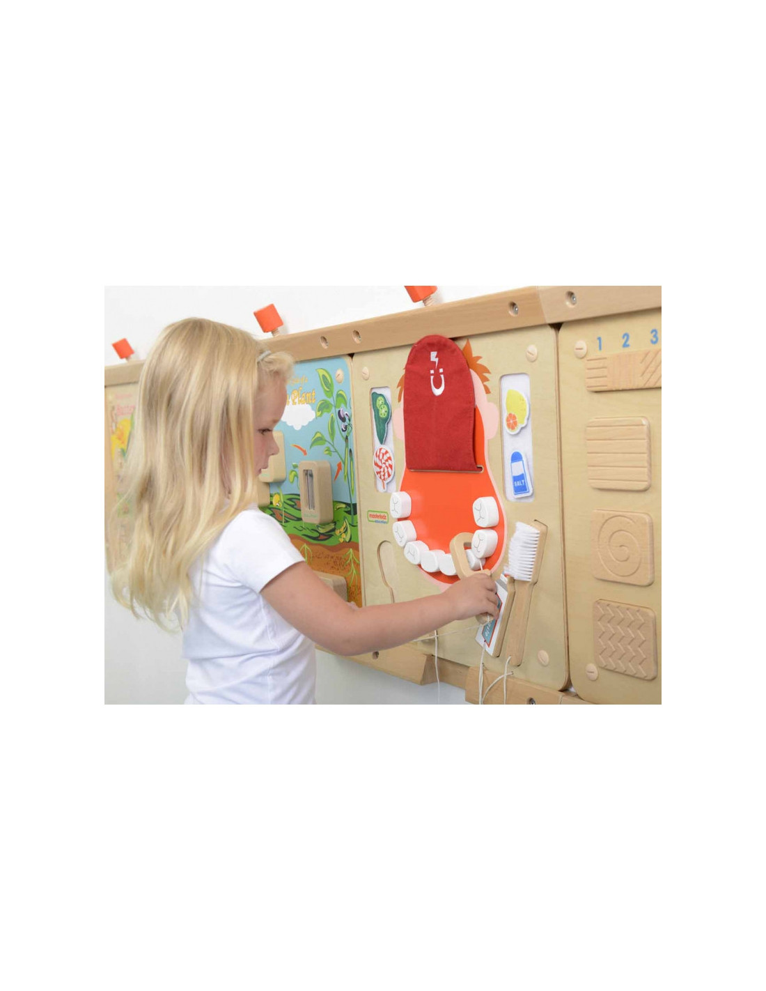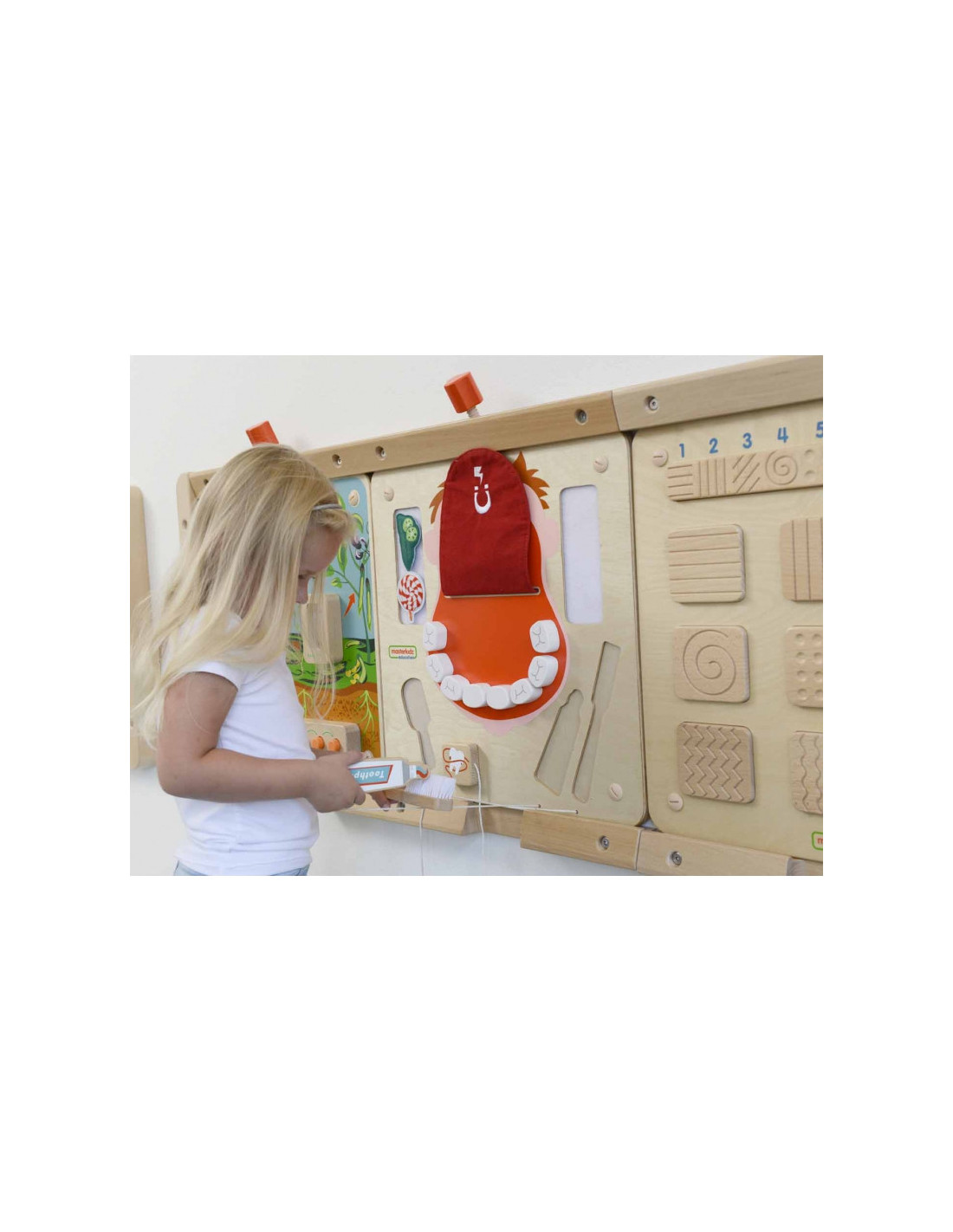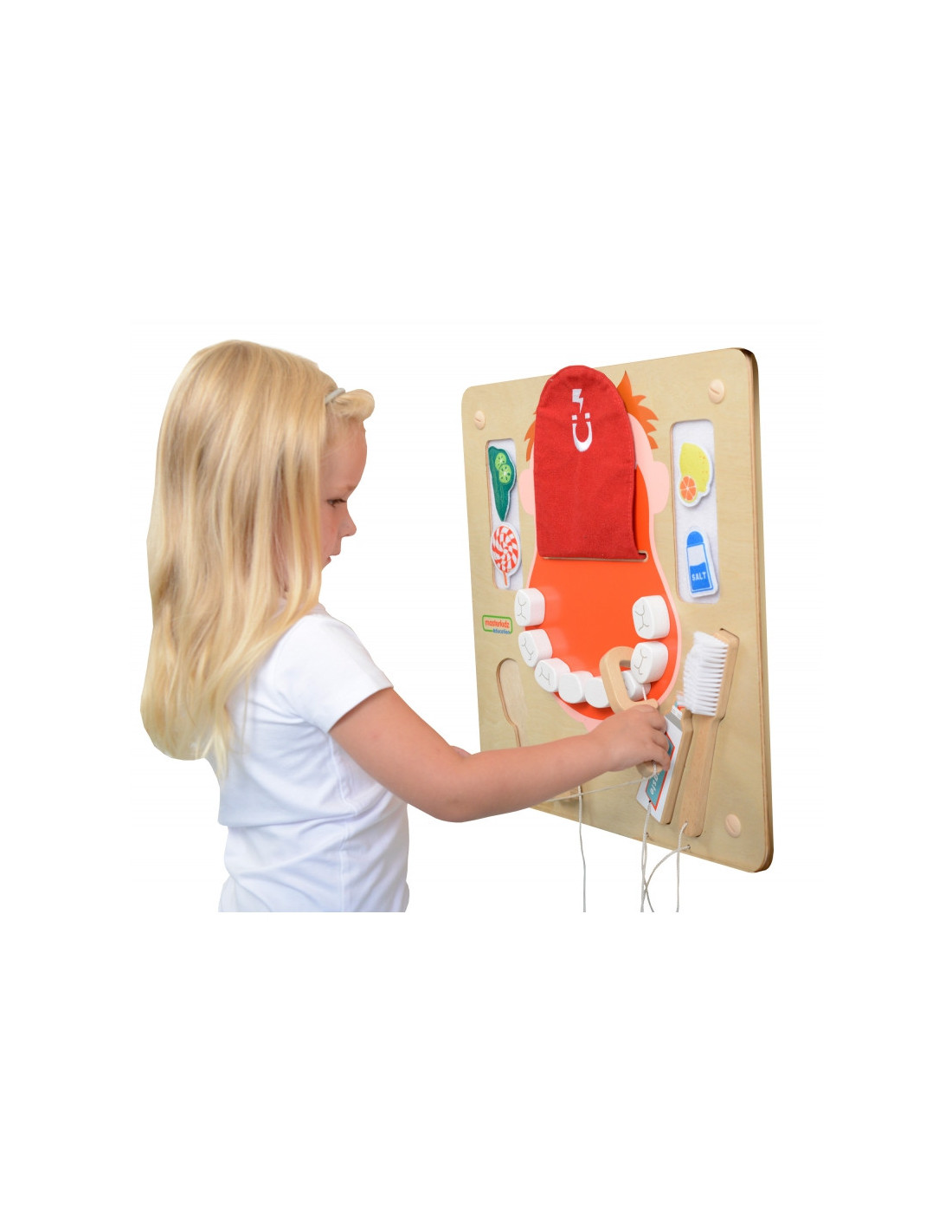 Burnos higienos sieninė lentelė skatina pagrindinius gyvenimo įgūdžius. Ji moko vaikus, kaip tinkamai valytis dantis ir juos prižiūrėti . Tai labai svarbus kiekvieno vaiko raidos etapas. Lentelė leidžia jiems išmokti ne tik taisyklingai valytis dantis, bet ir atpažinti tokius skonius kaip rūgštus, kartus, saldus ir sūrus.