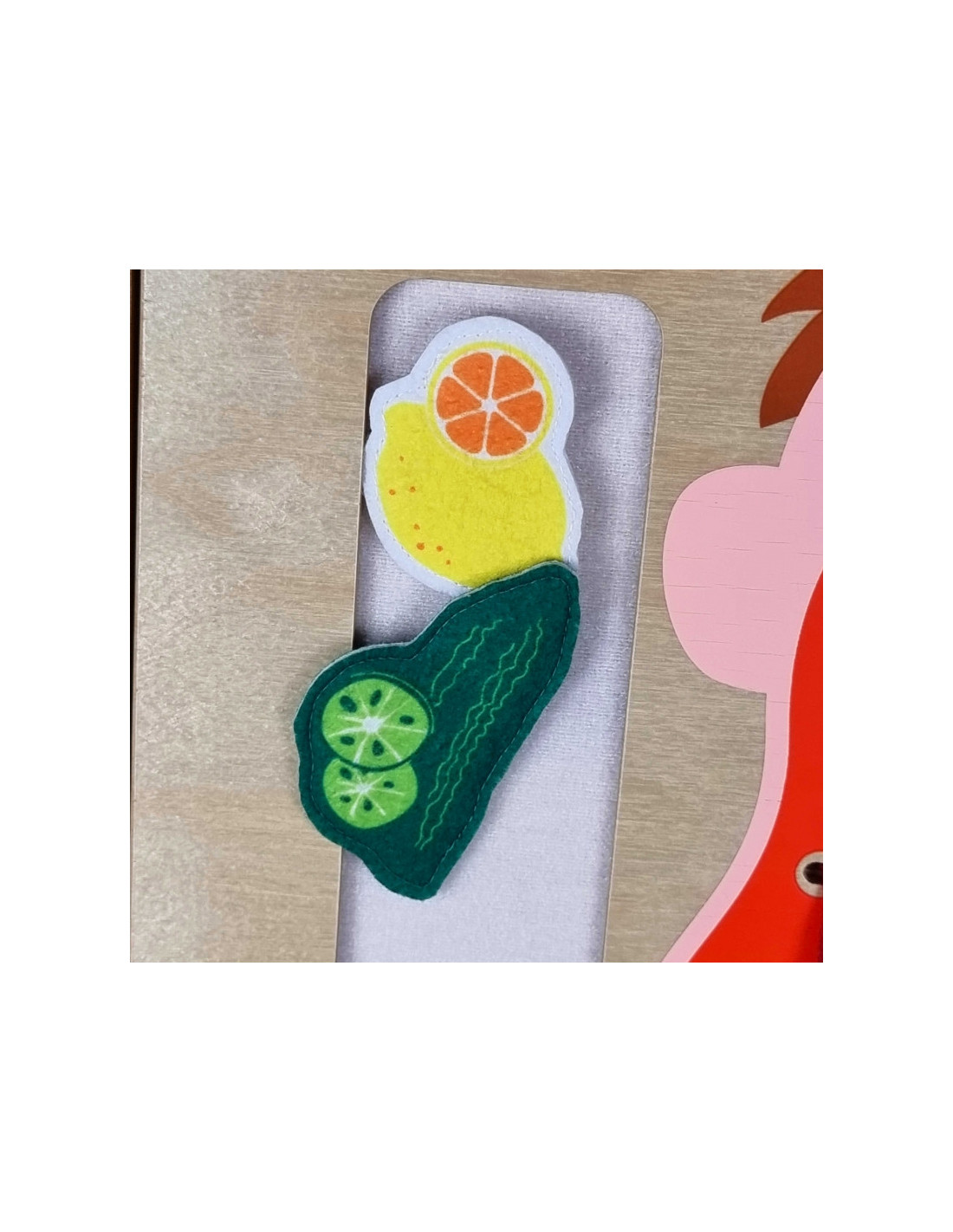 - - Sudėtyje yra maisto produktų, kuriuos reikia pritaikyti prie atitinkamo skonio ant liežuvio naudojant „Velcro“.