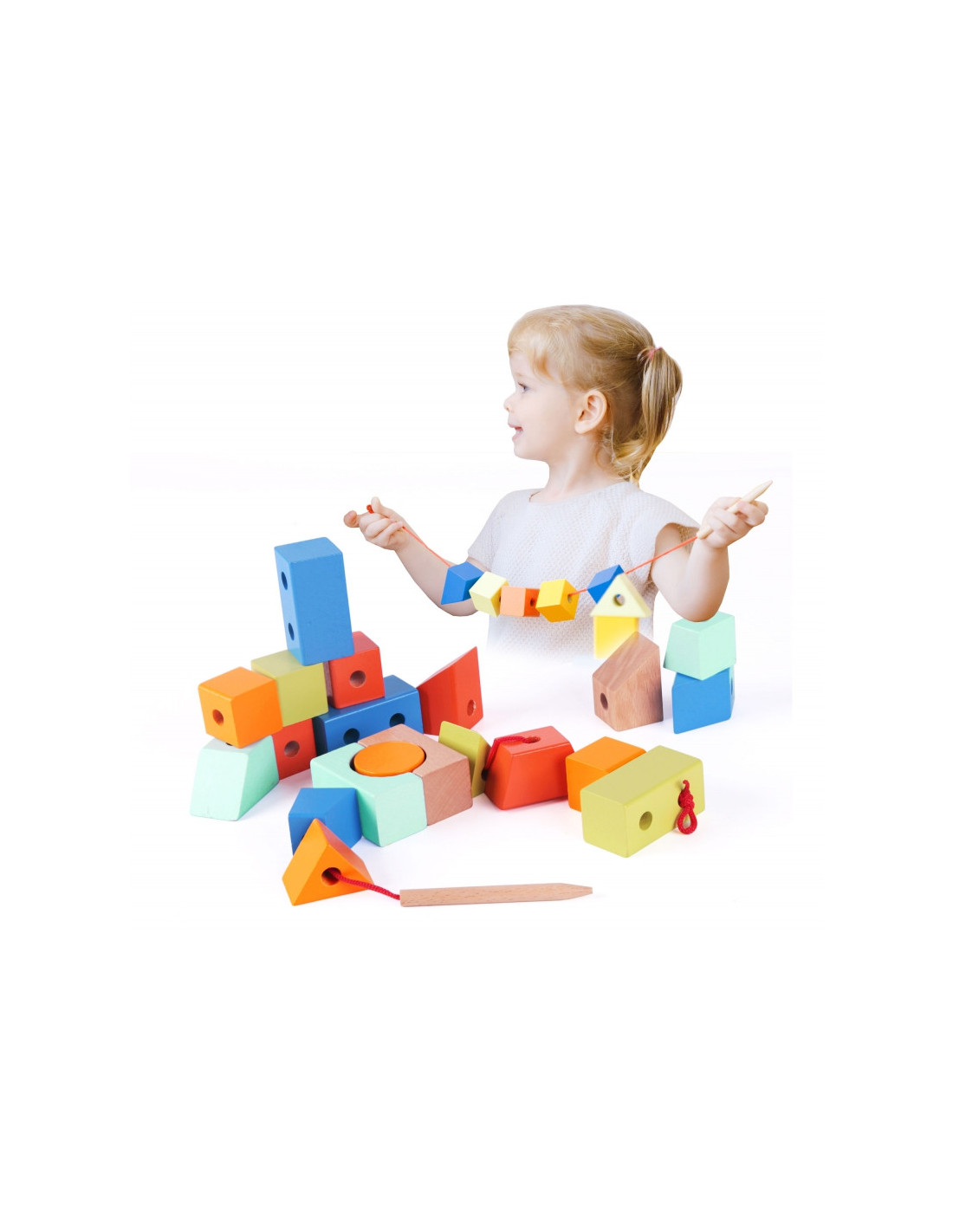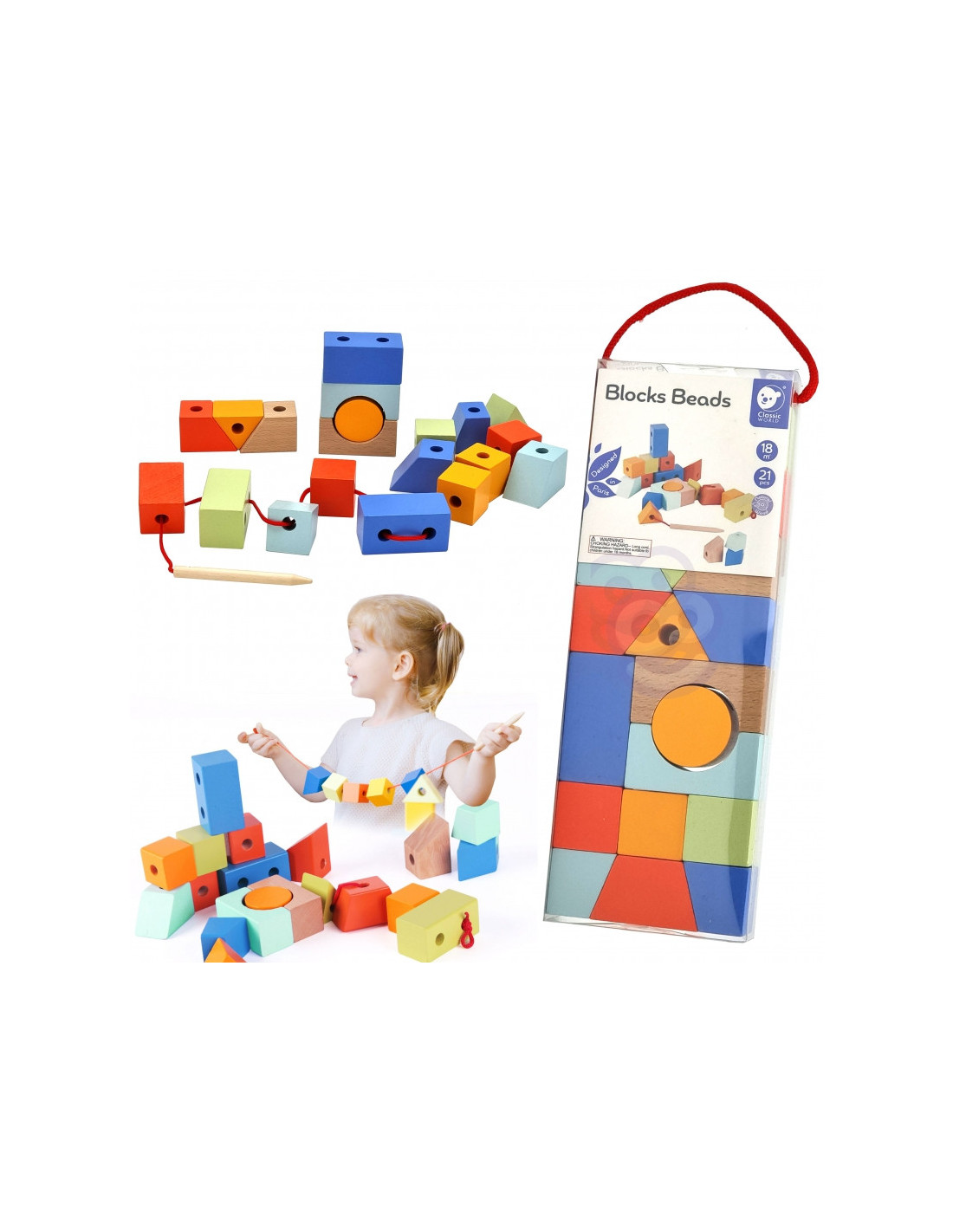 - - Rinkinį sudaro 21 elementas : 20 kaladėlių ir virvelė.